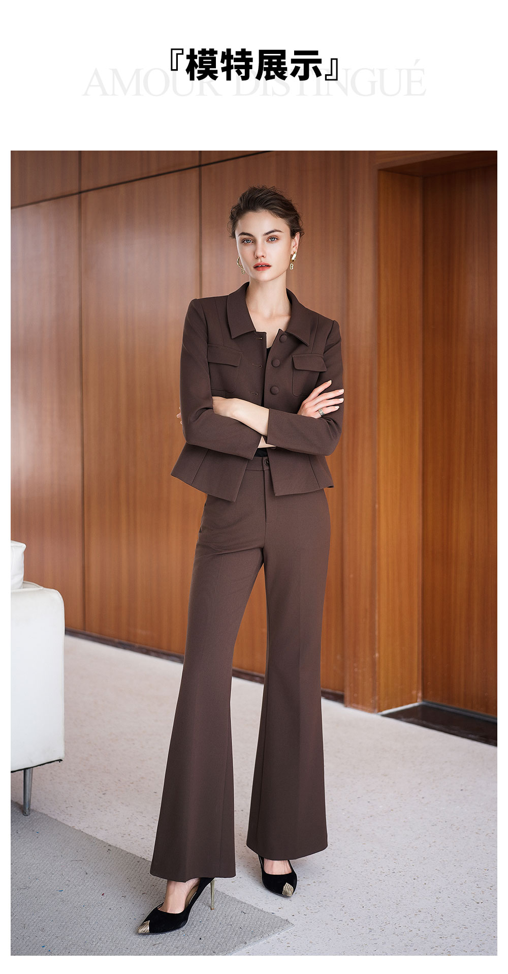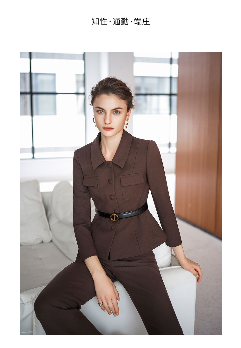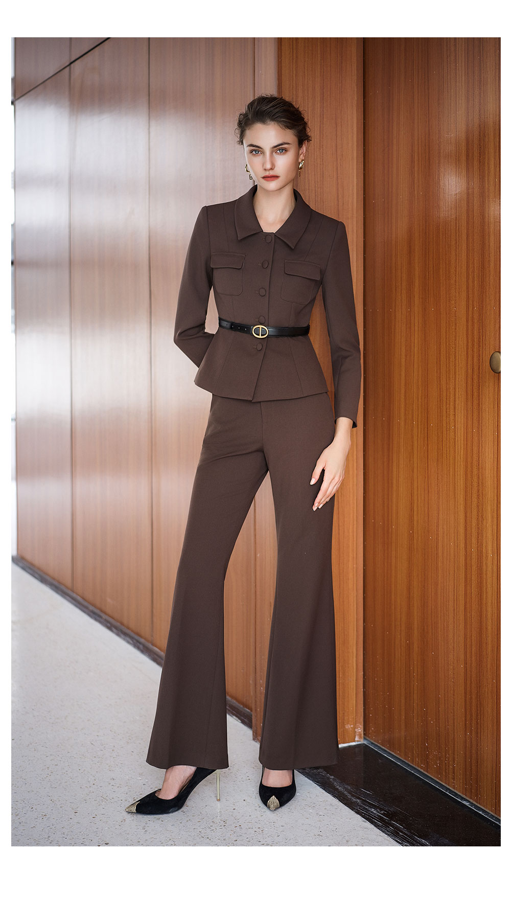 AD秋冬季磨毛套装女士职场通勤两件套2025新款棕色收腰正装阔腿裤