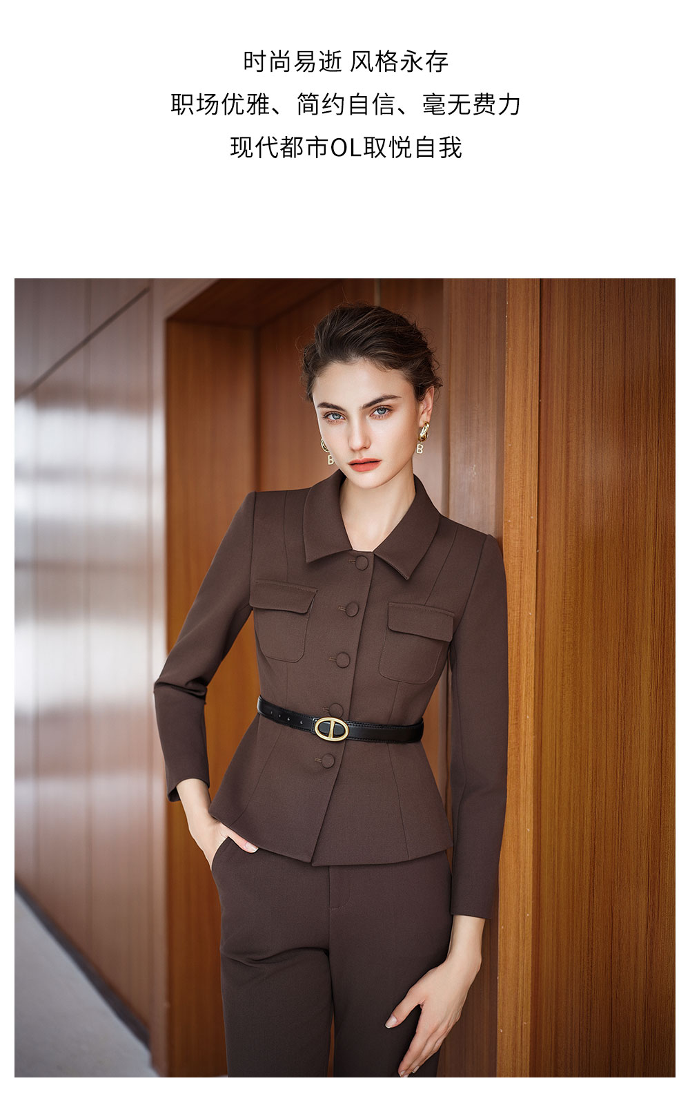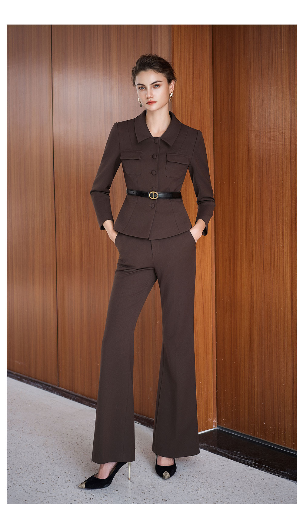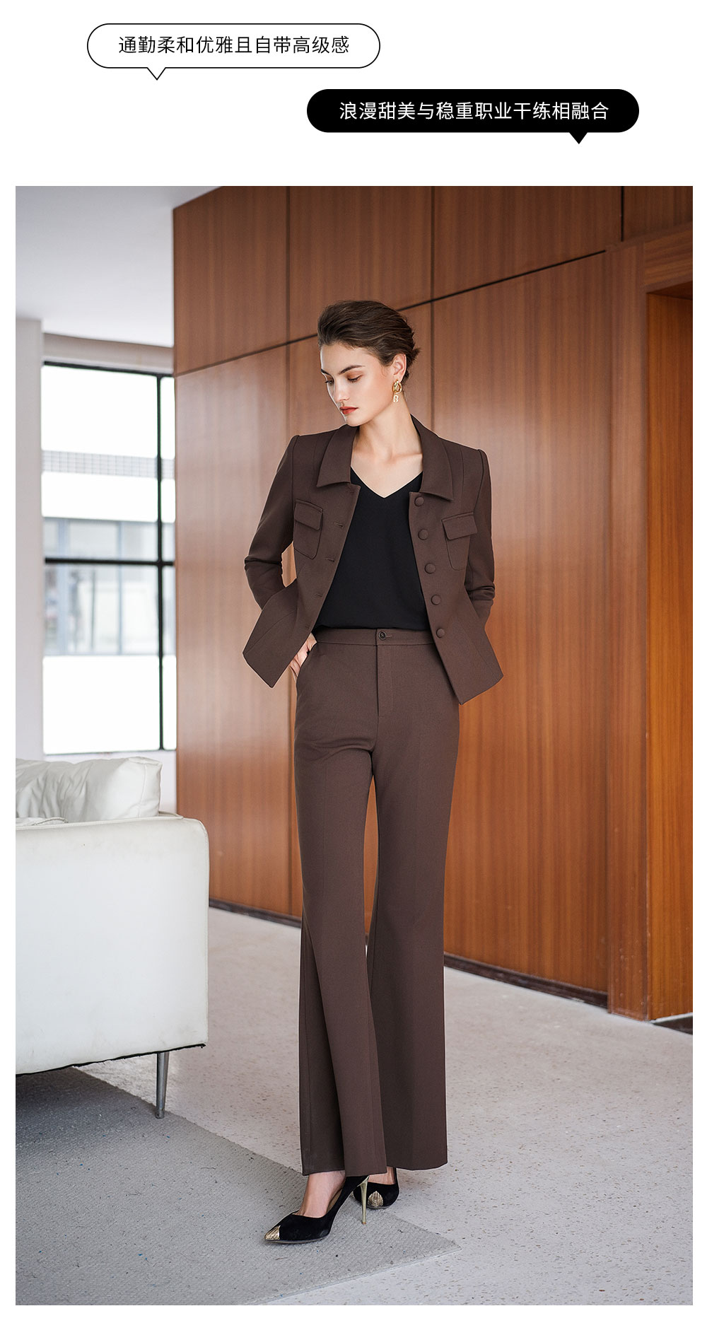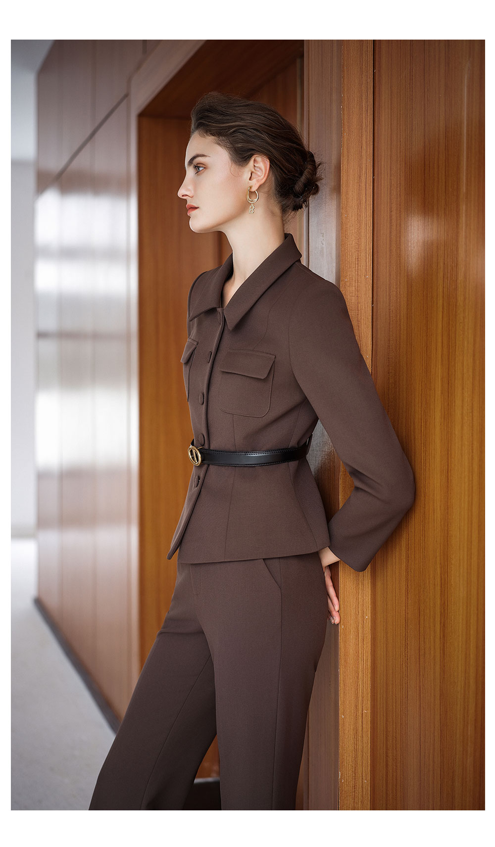 AD秋冬季磨毛套装女士职场通勤两件套2025新款棕色收腰正装阔腿裤