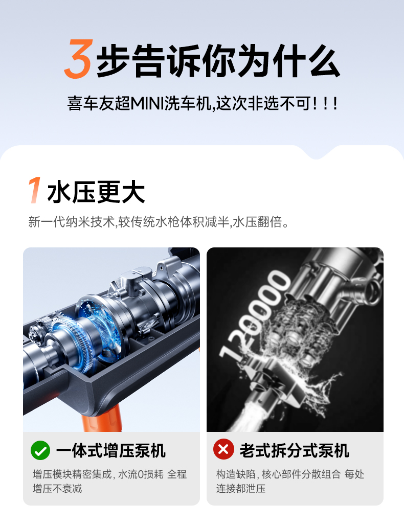 喜车友超mini航天级一体无线速洗机 创新一体式增压泵机 高压去污 两年质保(下单72小时发货)