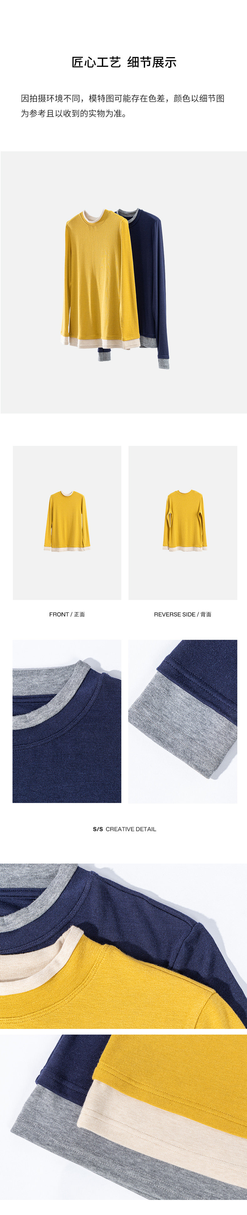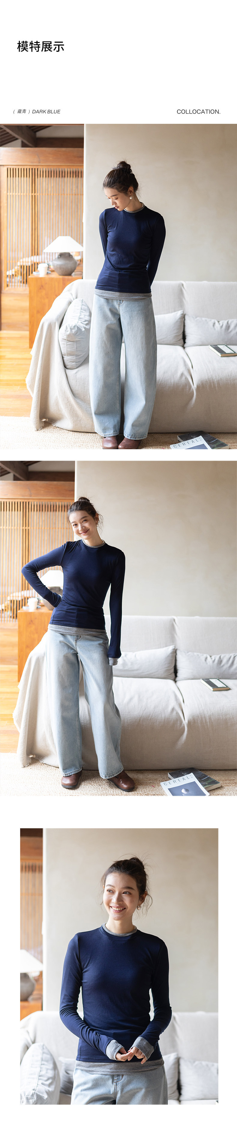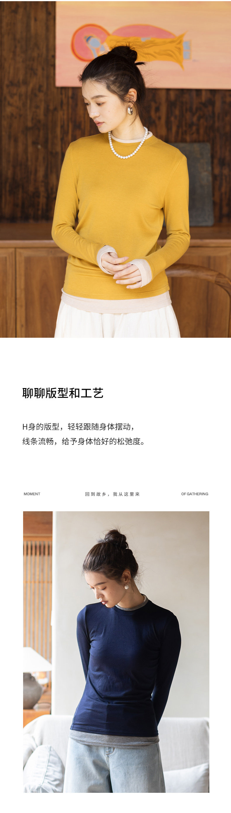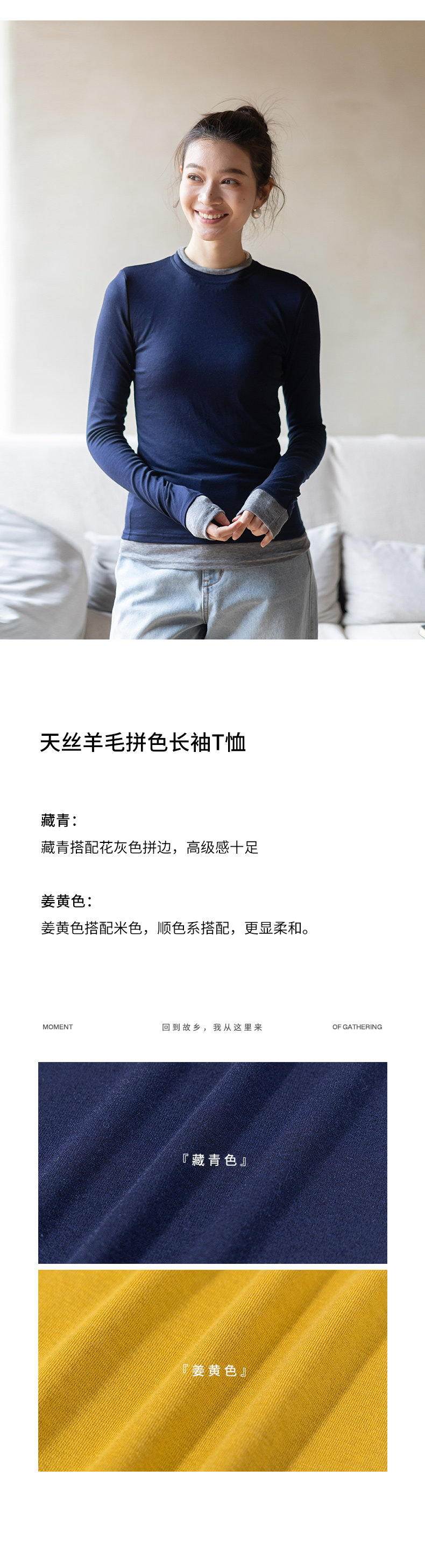 特绽放010朵/心机打底衫·可机洗天丝羊毛拼色修身显瘦长袖T恤女
