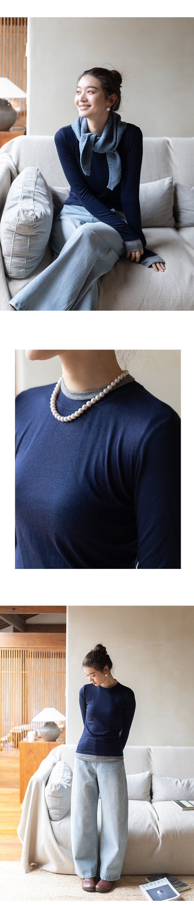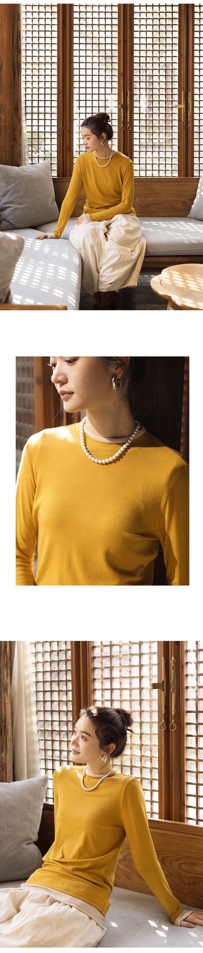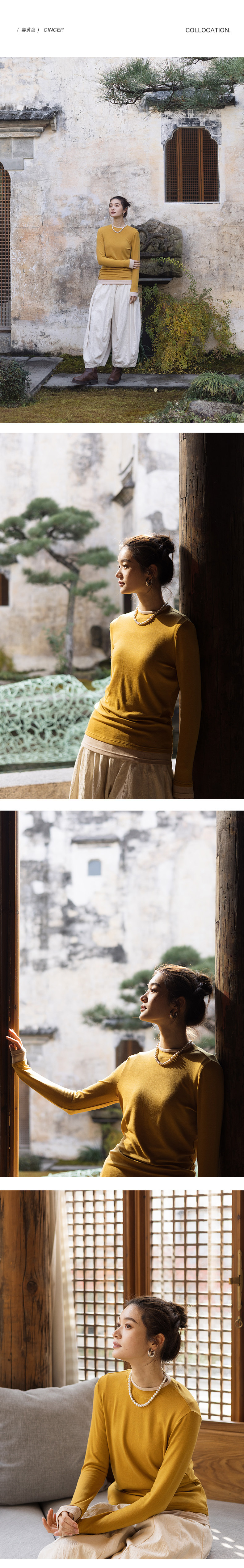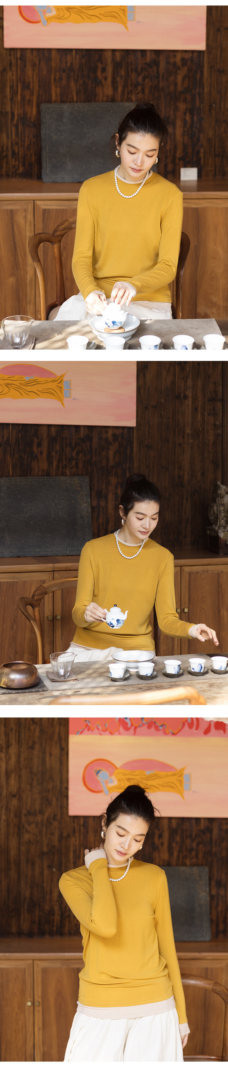 特绽放010朵/心机打底衫·可机洗天丝羊毛拼色修身显瘦长袖T恤女