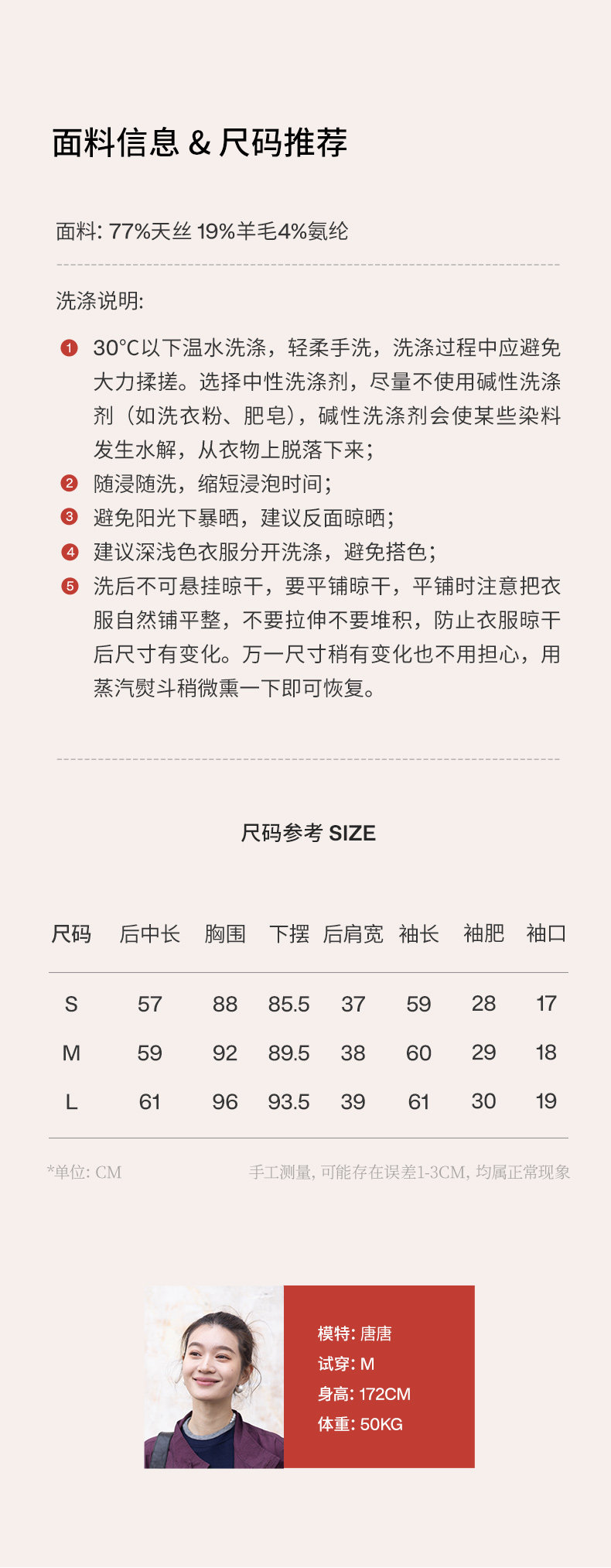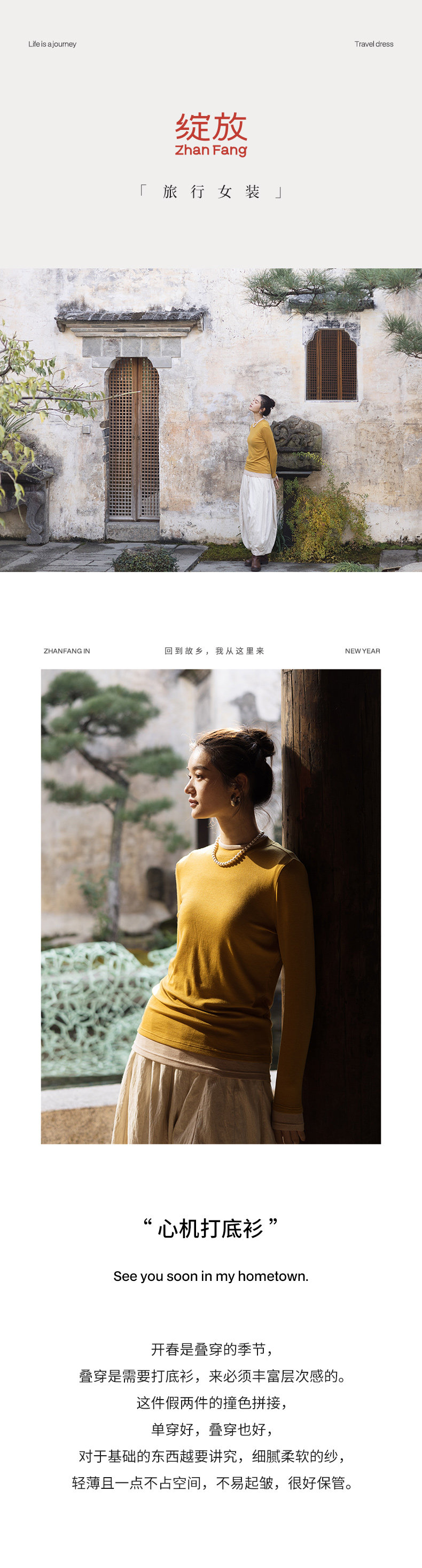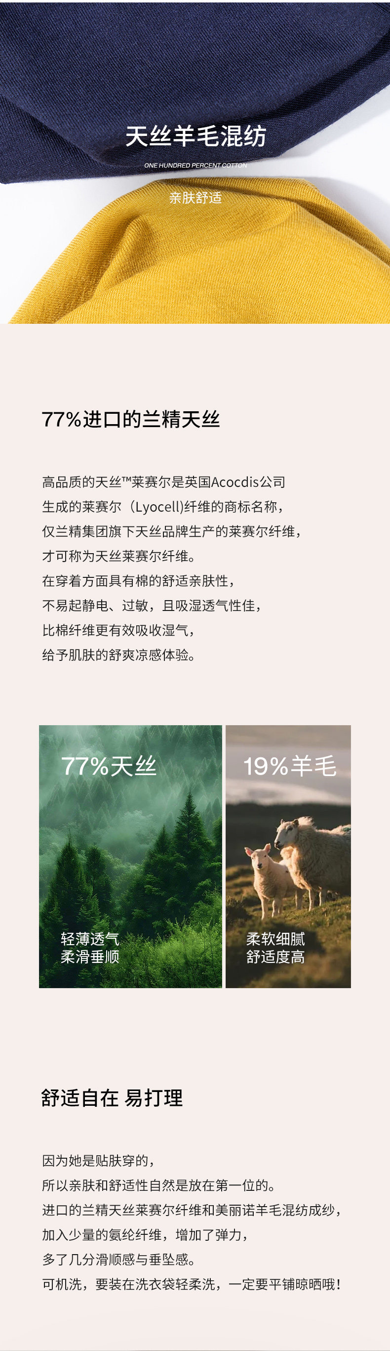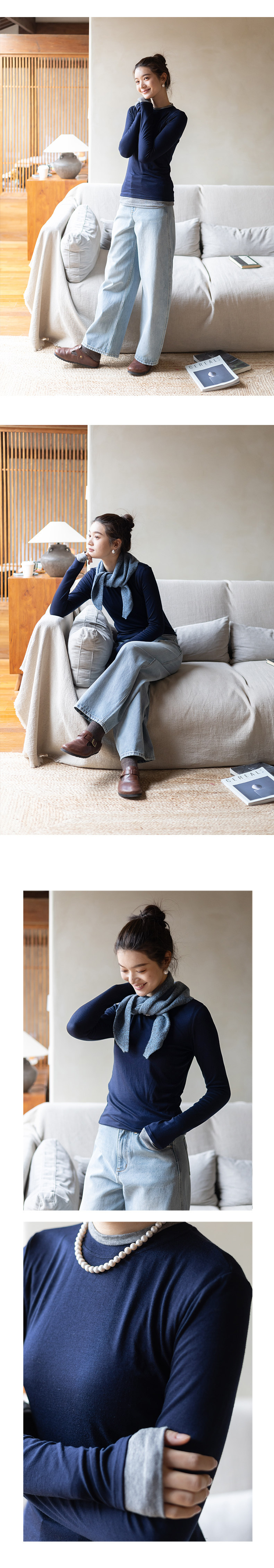 特绽放010朵/心机打底衫·可机洗天丝羊毛拼色修身显瘦长袖T恤女