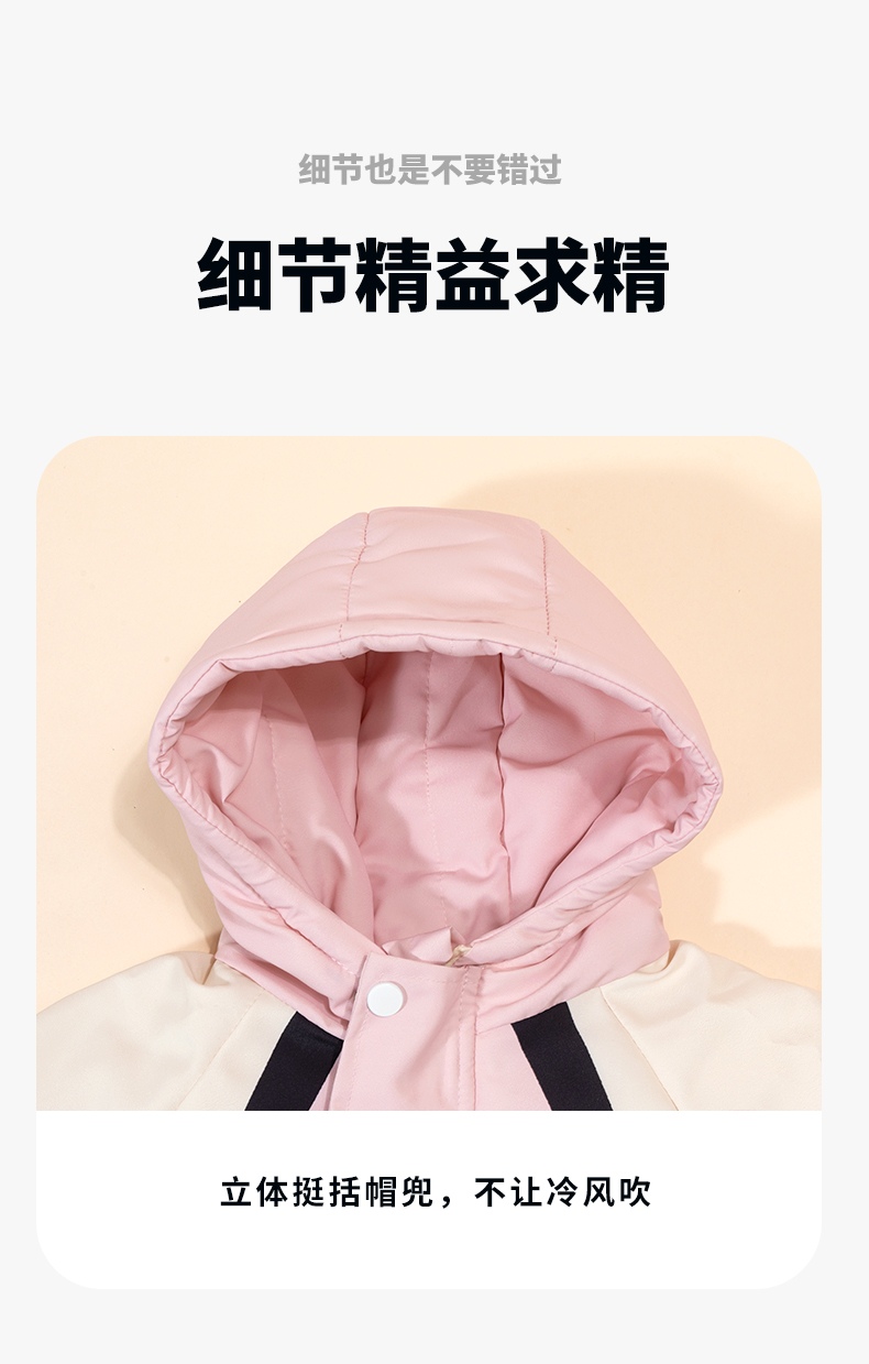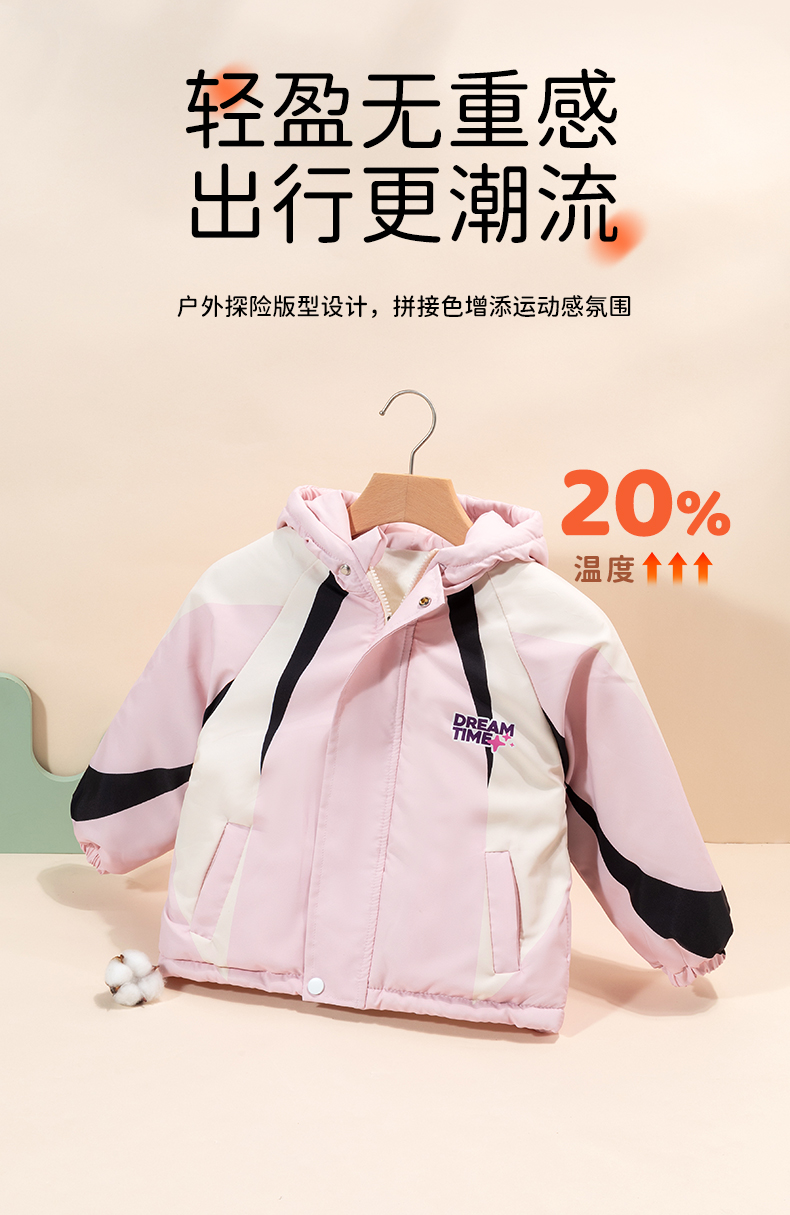 贝贝怡【夹棉保暖】24秋冬新款户外运动防风连帽加厚棉服外套女童ZB4DS012