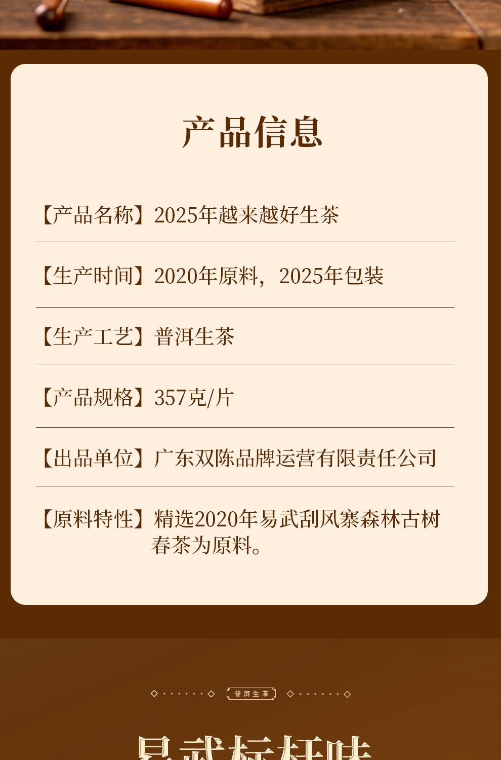 双陈普洱2025年越来越好生茶357克品牌30周年纪念茶蜜兰香澄澈山野韵悠长