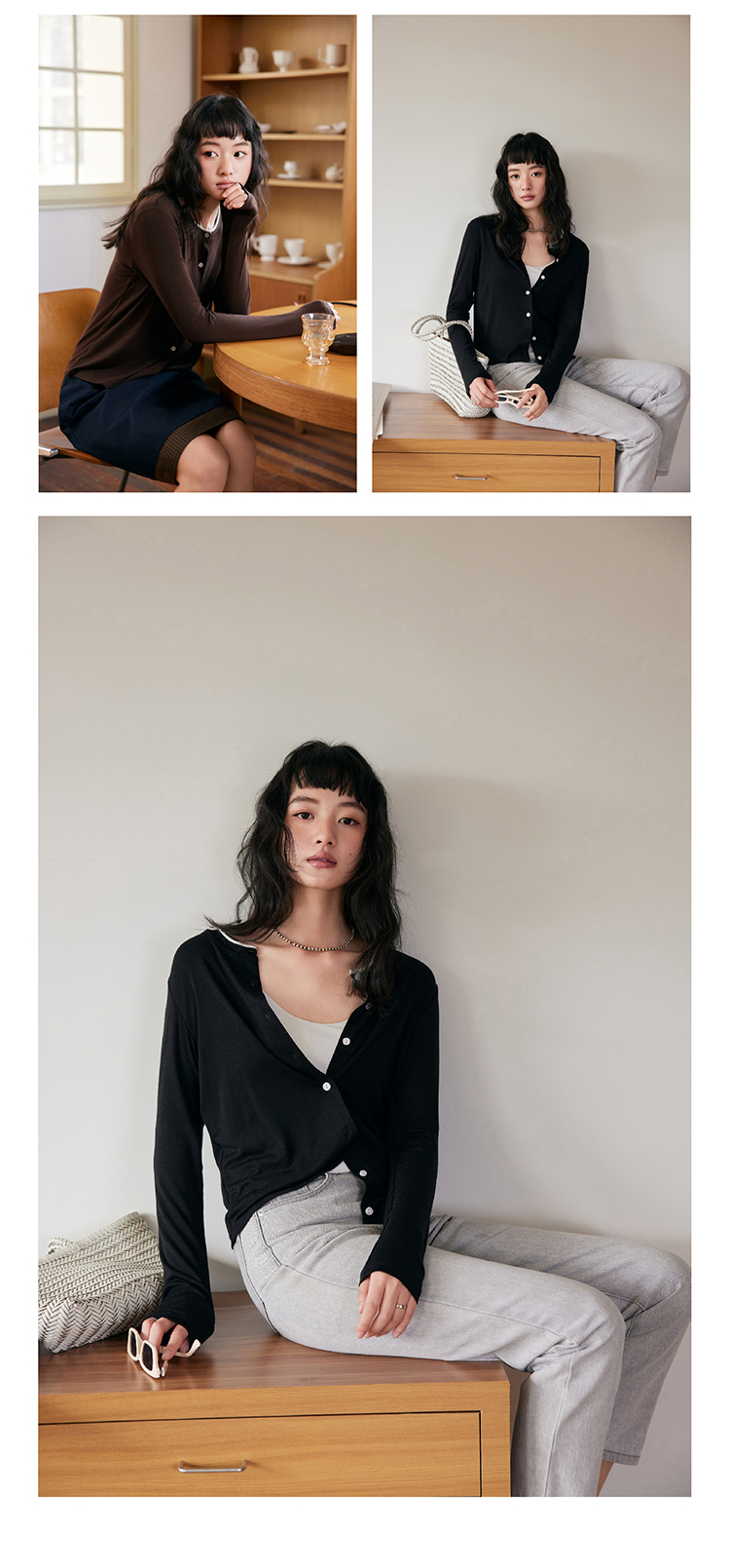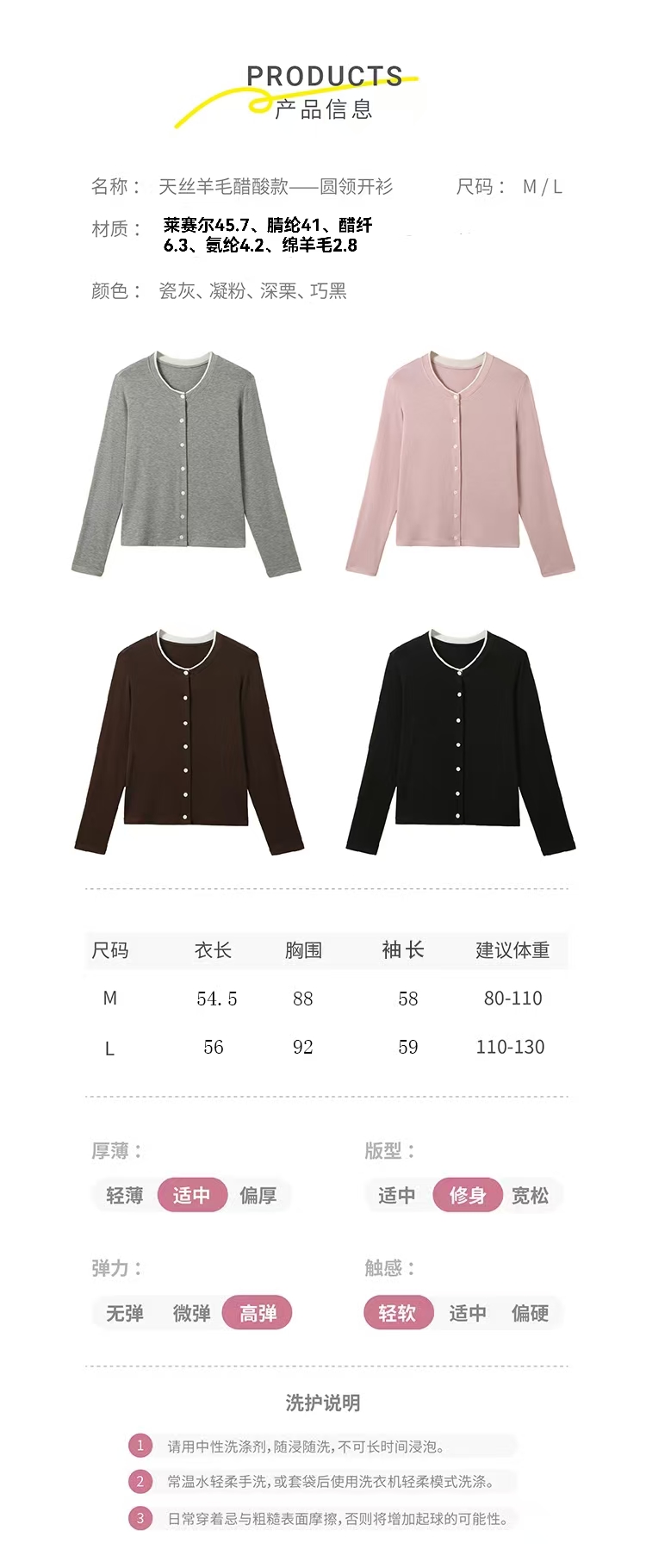 KEMU壳木天丝羊毛醋酸款开衫 天丝醋酸羊毛混纺细软爽滑 穿法随意切换 春夏防晒/秋冬打底叠穿 遮肉显瘦百搭不挑人