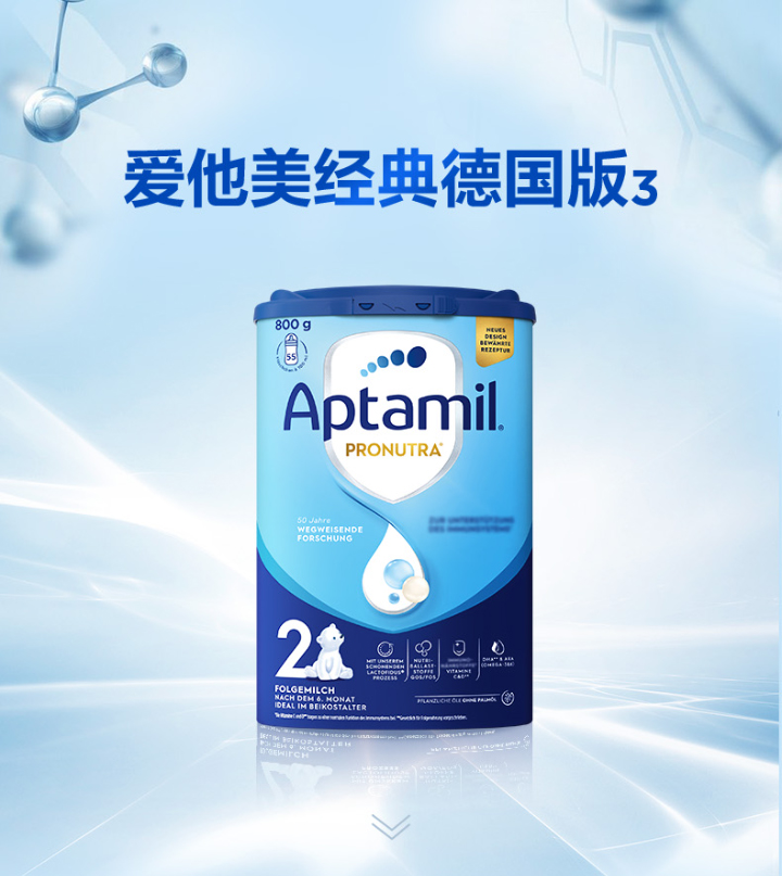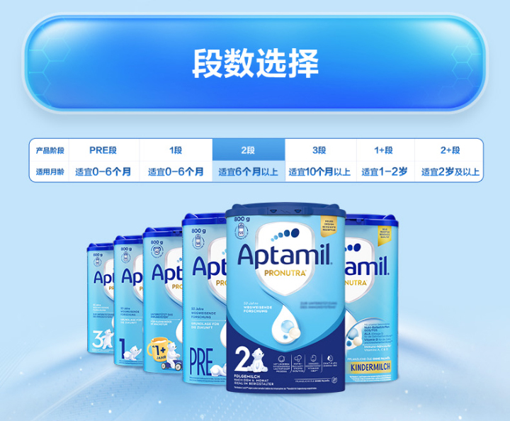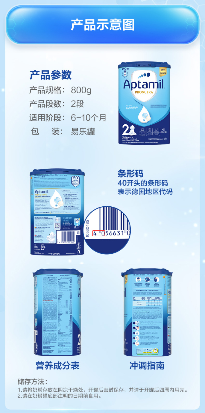 [极速送达]德国 爱他美(Aptamil)婴儿配方奶粉易乐罐蓝罐 800g 2段