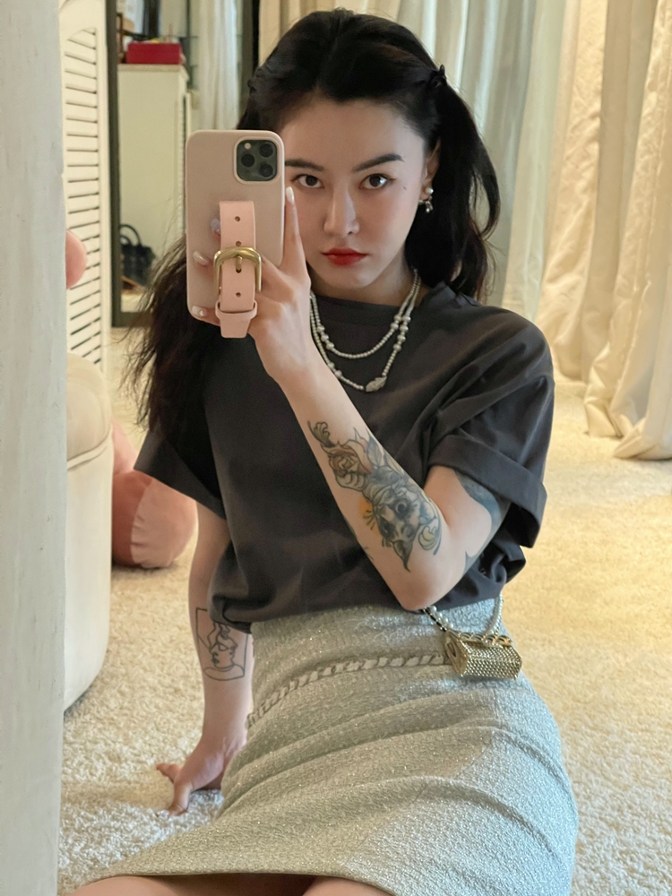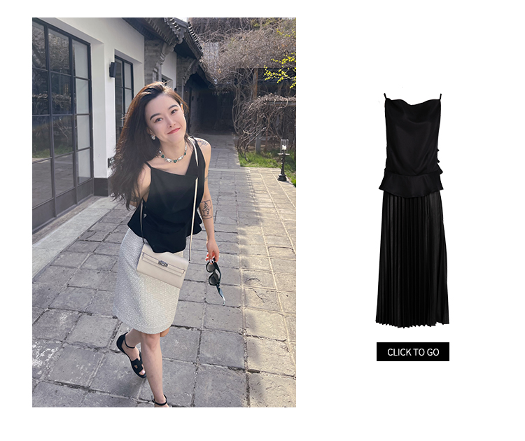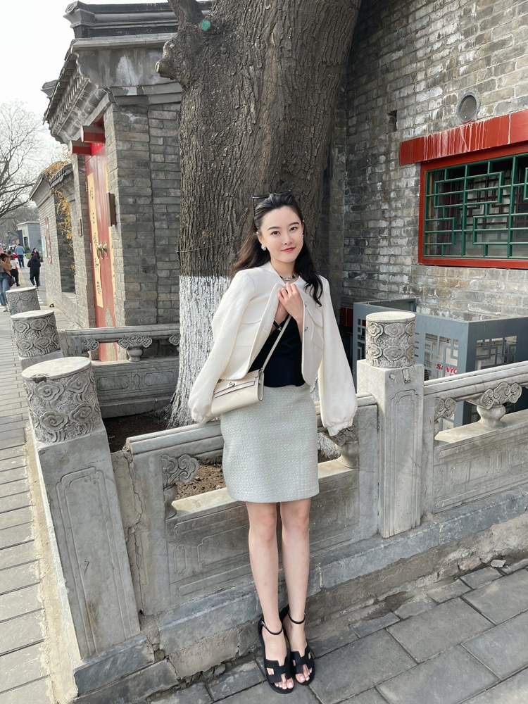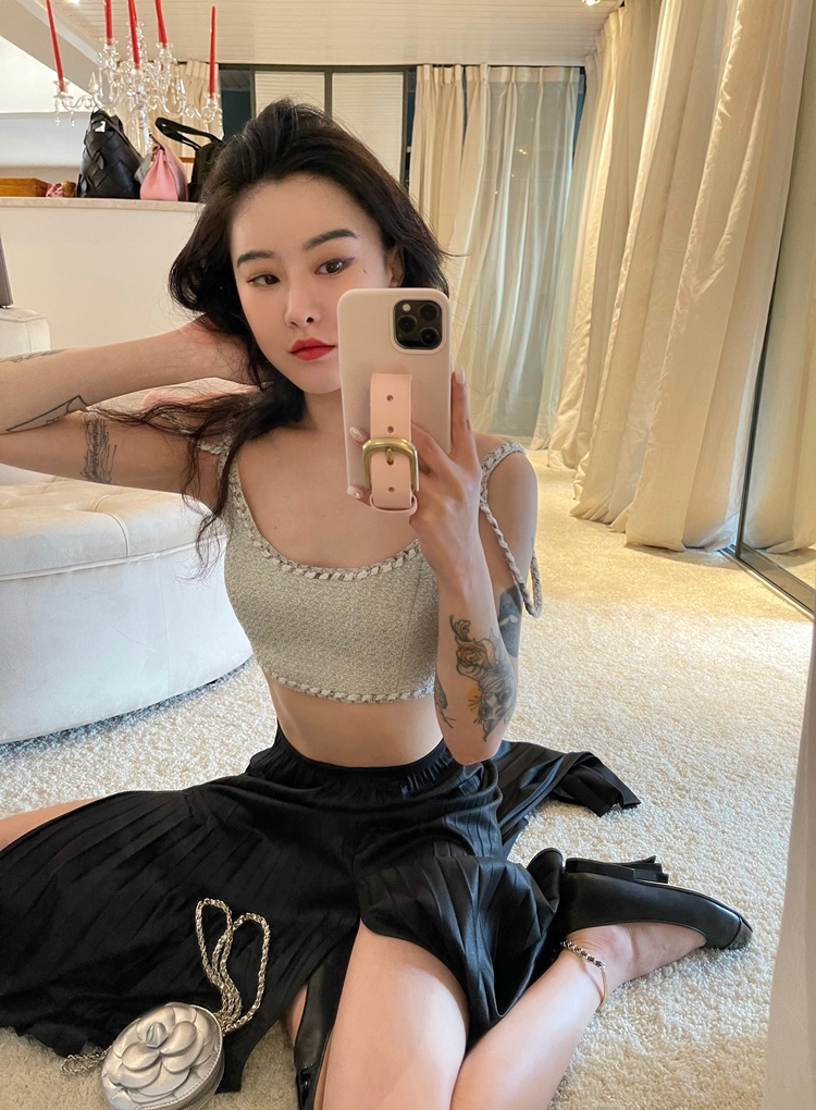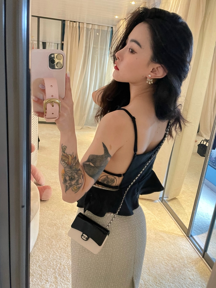 倩妮迪月亮nv王银白色小香风吊带包臀裙套装