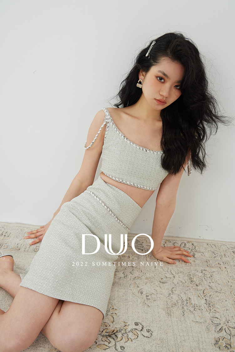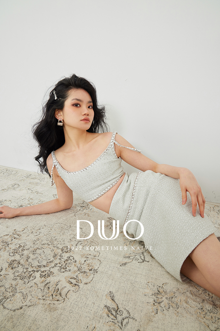 DUO智仙生 清甜黄木香定制剪花欧根纱礼服背心和绽放的花苞裙