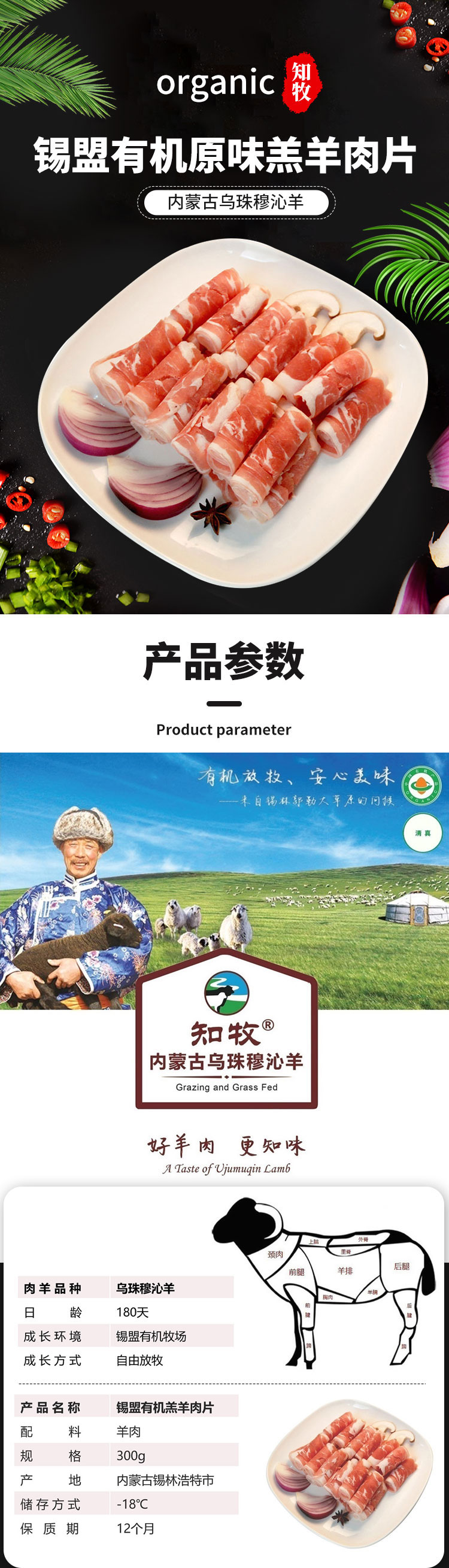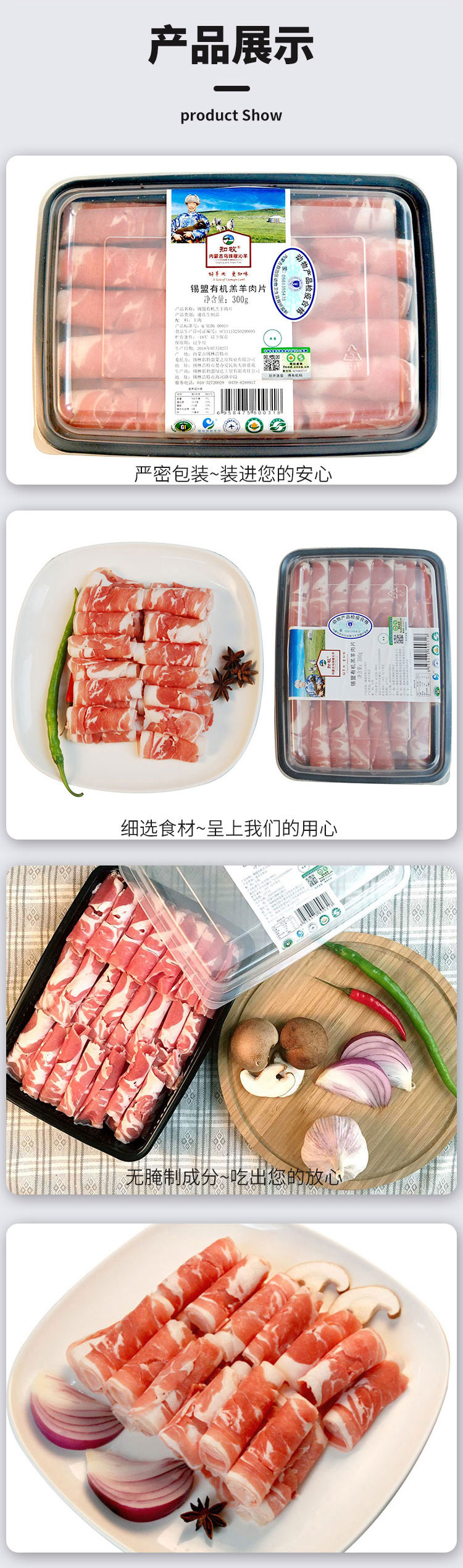 只发北京 彩虹雨 有机羊肉片300g 来自内蒙古大草原