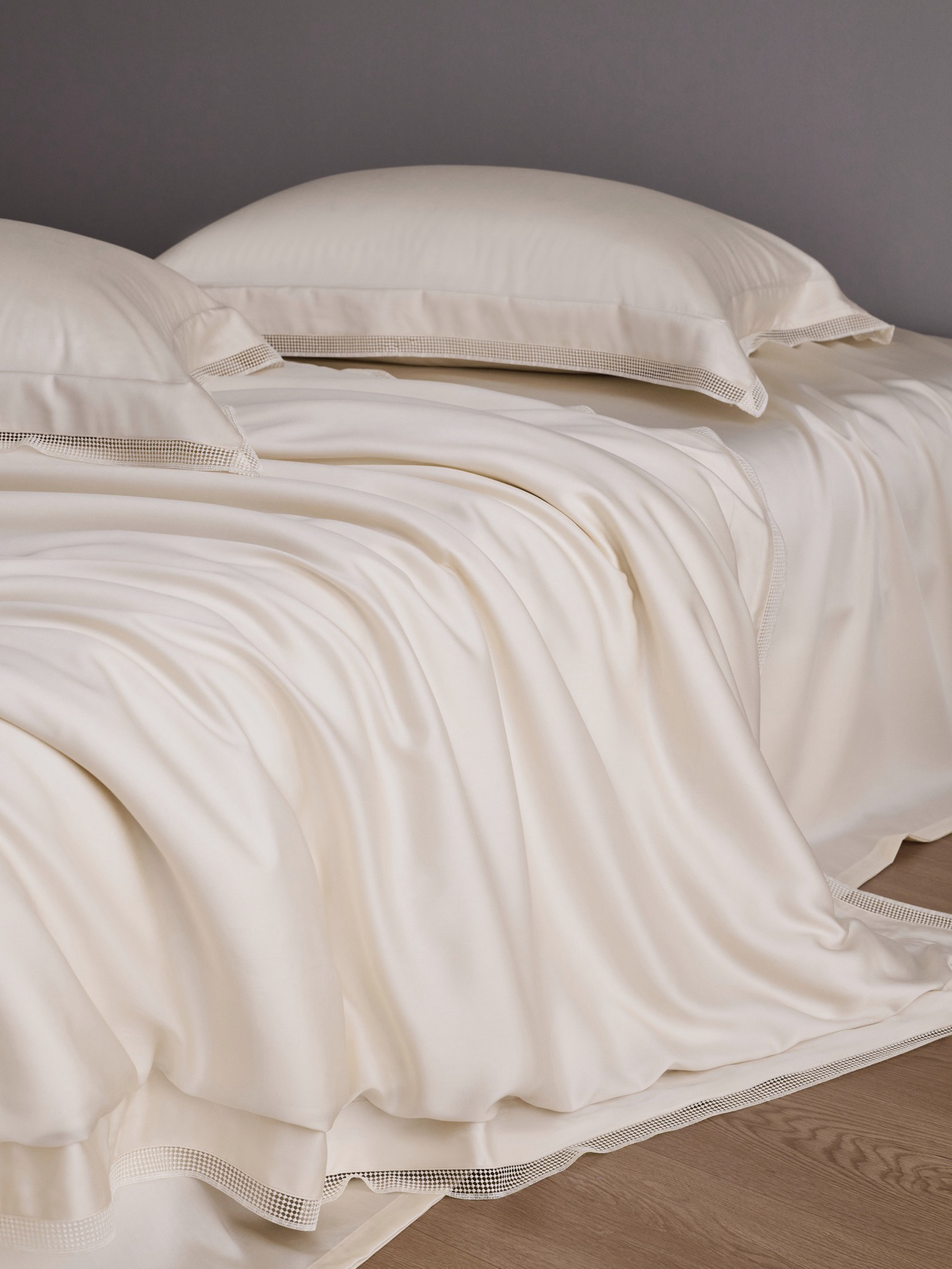蕾丝、象征优雅、精致与浪漫,它不仅是法式宫廷的奢华印记,更是现代高级美学的缩影,从凡尔赛宫的宫廷礼服,到巴黎高定秀场上的流动雕塑,蕾丝一直是优雅品味的代名词。汲取欧洲经典镂空蕾丝艺术,以极致工艺诠释居室的轻奢风范,细节之上,皆是高定,赋予睡眠以仪式感,让奢华成为日常。