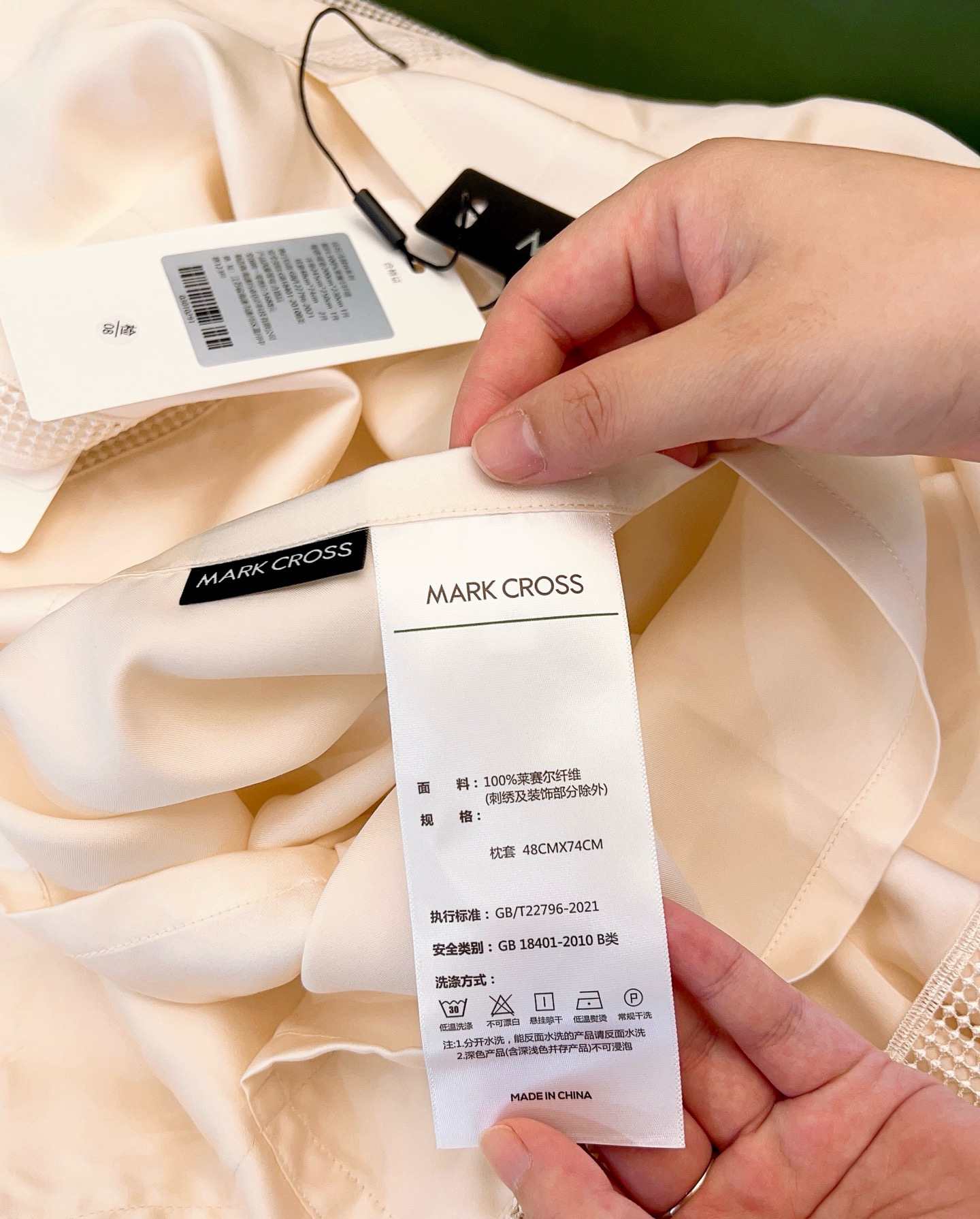 工艺:枕套被套镂空宽边工艺,圆角贴边!