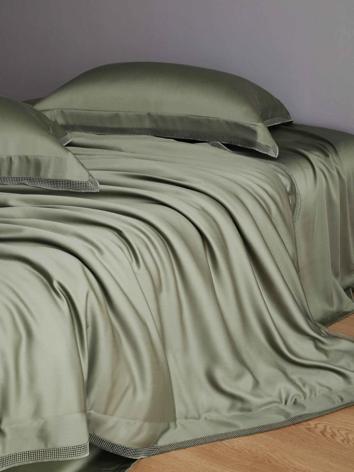 实体专柜品牌系列!吊牌3000+100S超细冷凝丝四件套 硫酸纸+防尘收纳袋 进口YKK拉链 配品牌高端礼盒拎袋