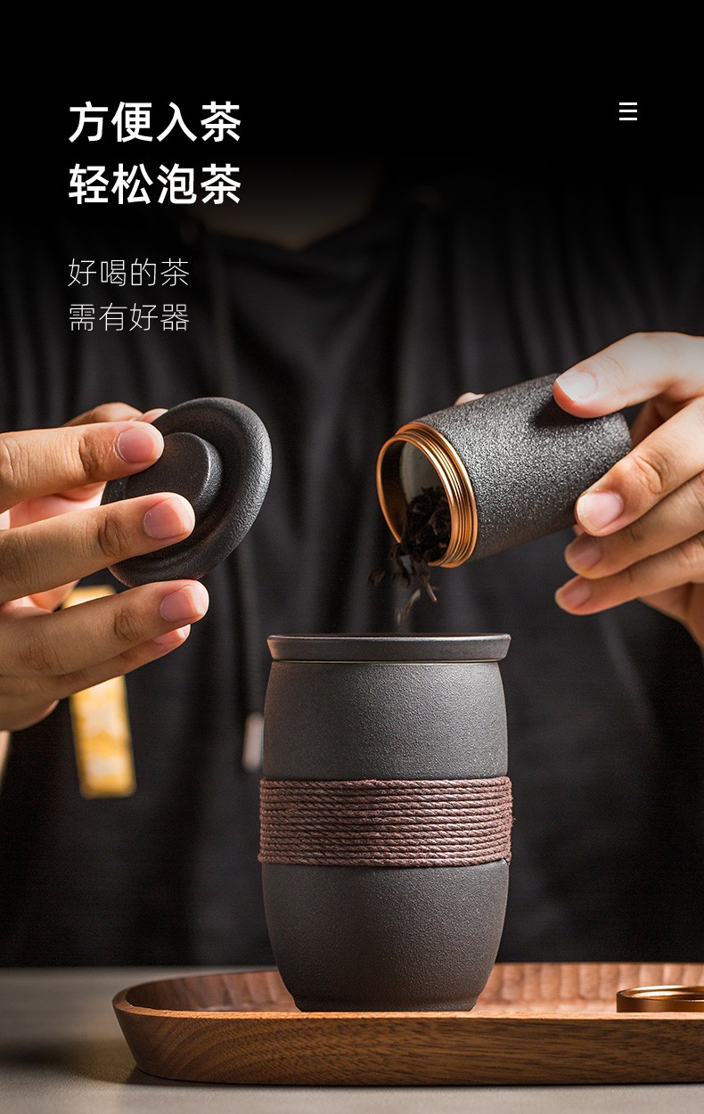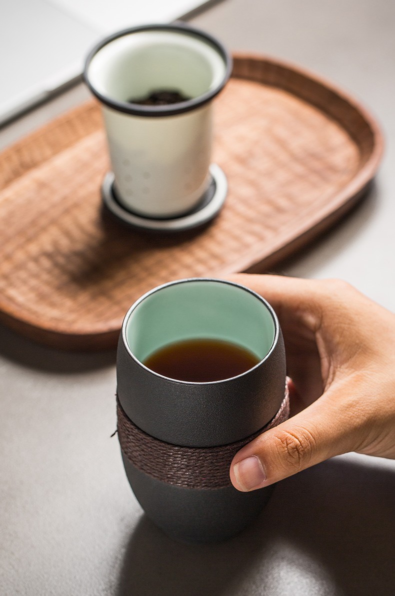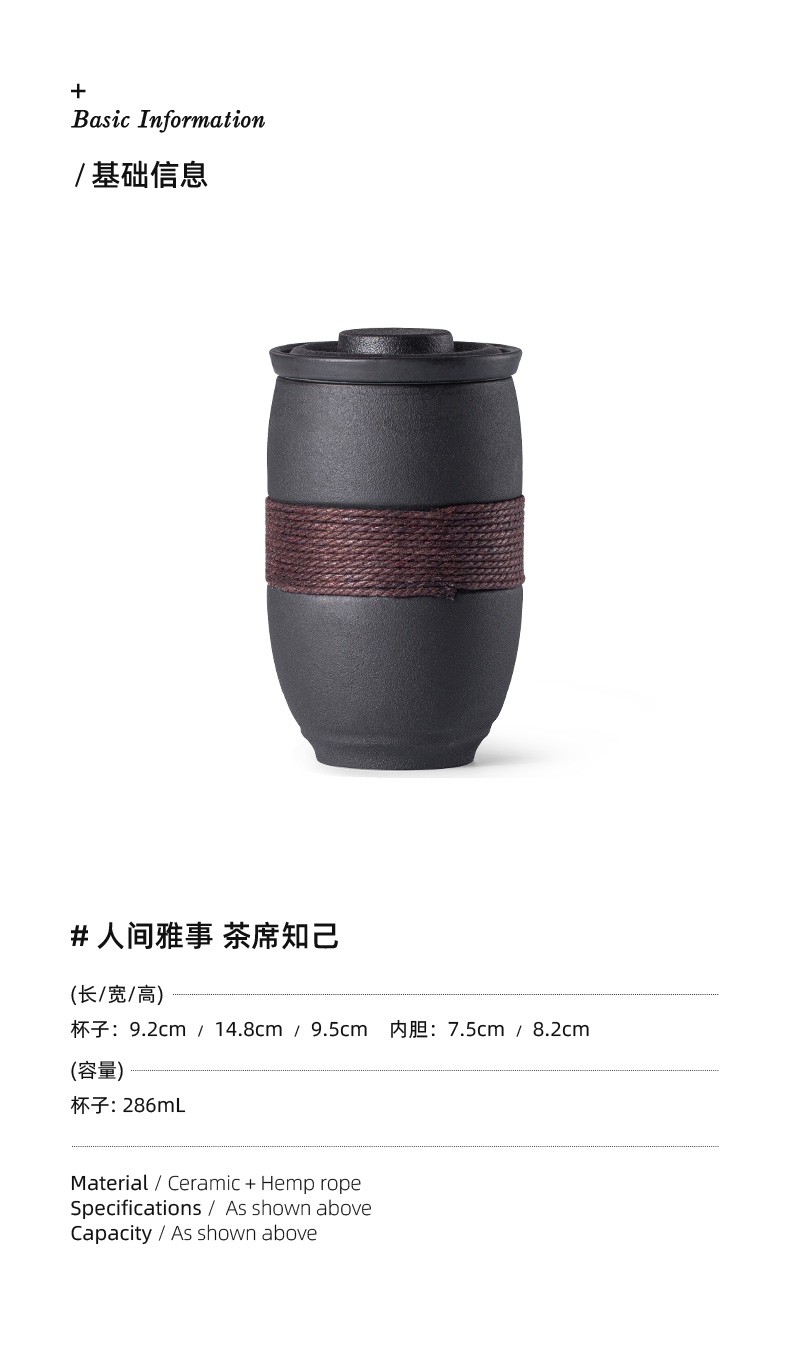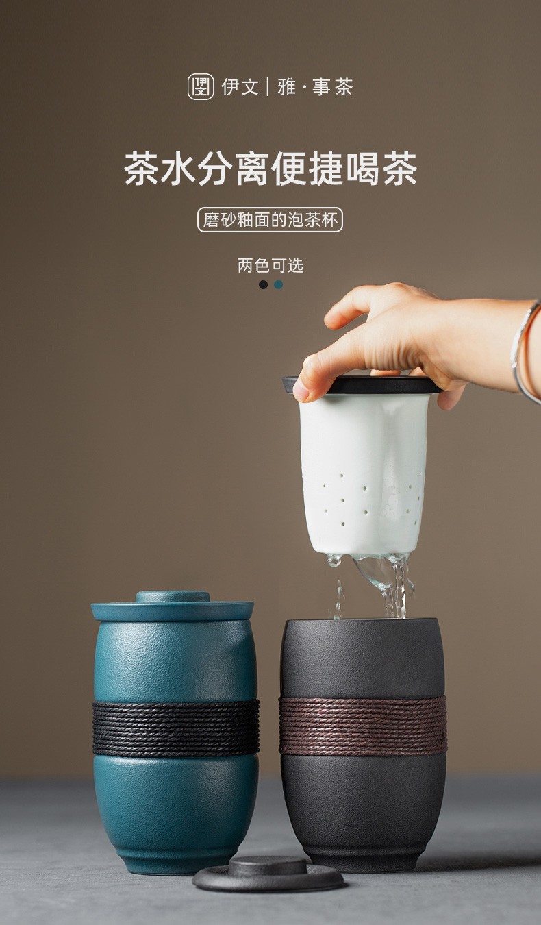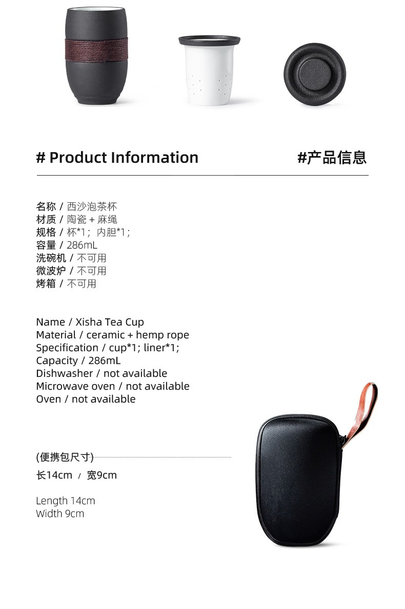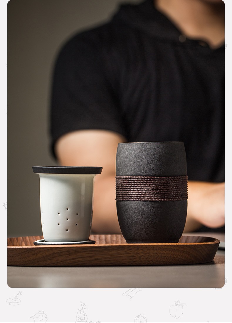 陶瓷西沙马克杯带盖办公室喝水杯陶瓷过滤泡茶杯茶水分离杯子 西沙黑A2a(英调)
