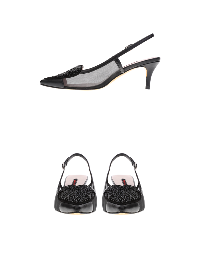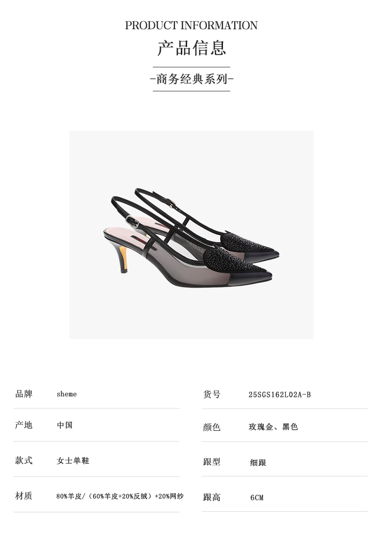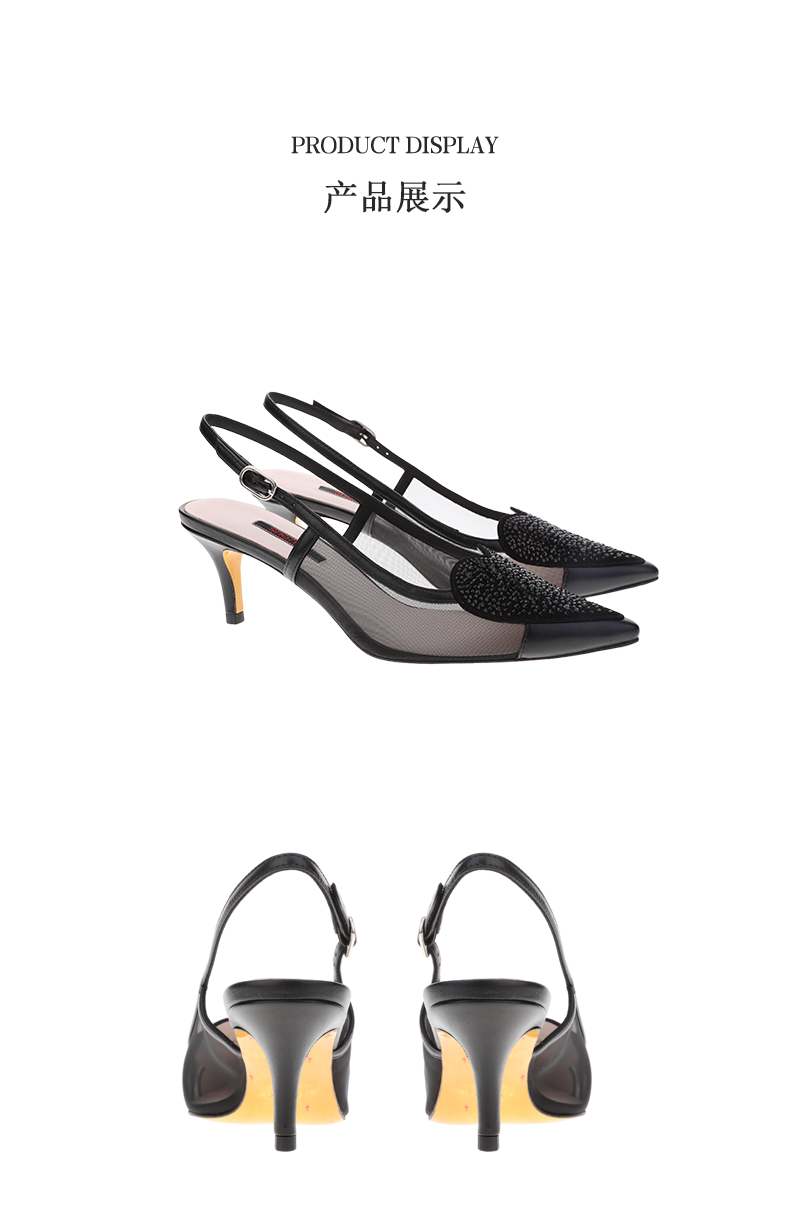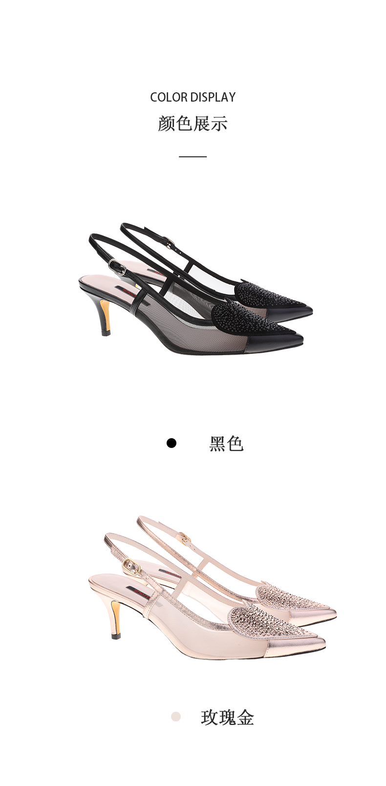 sheme心型水晶点缀透气网纱时尚性感女士中跟凉鞋可定制