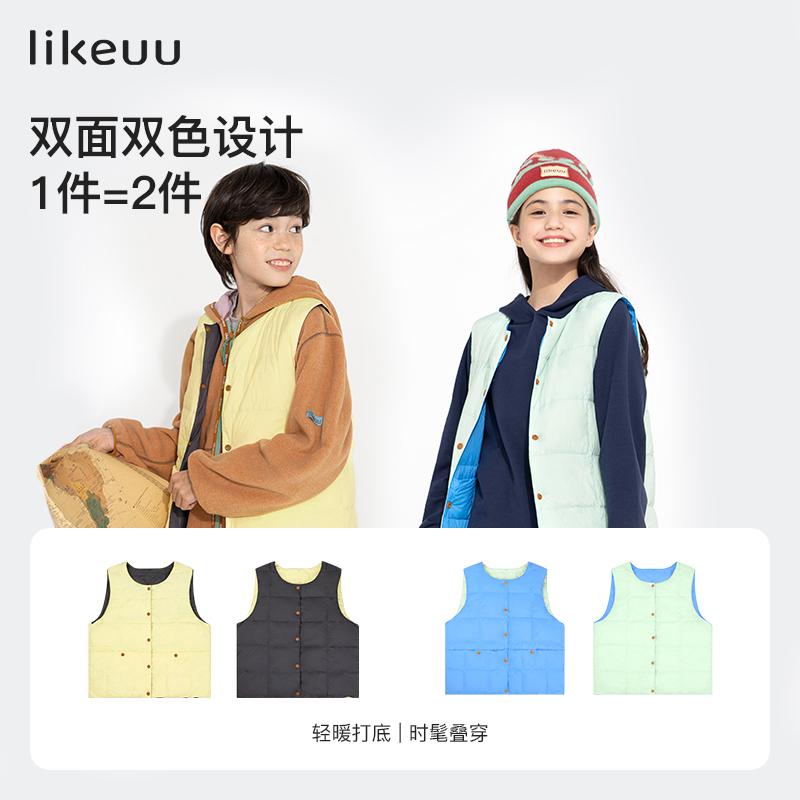 (11.11)ubras旗下likeuu儿童羽绒服男女大童探索系列轻羽绒马甲薄款秋冬