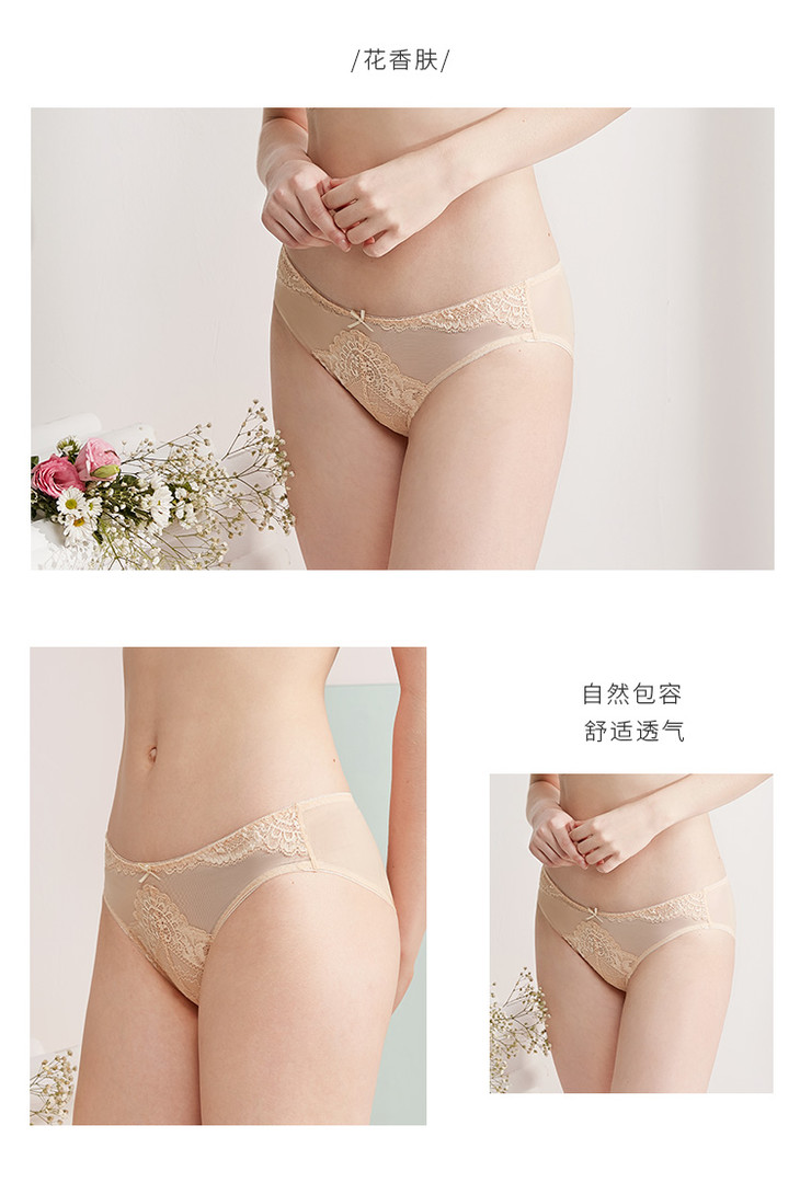 奶糖派花颜蕾丝内裤女士三角小裤轻薄清爽透气速干
