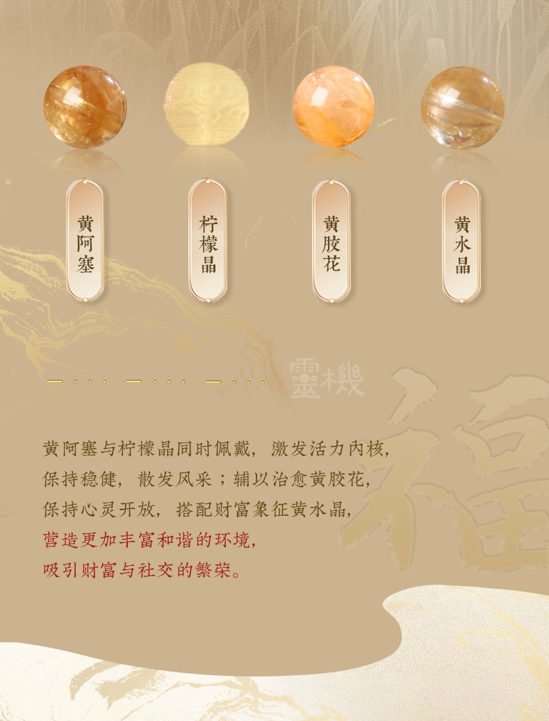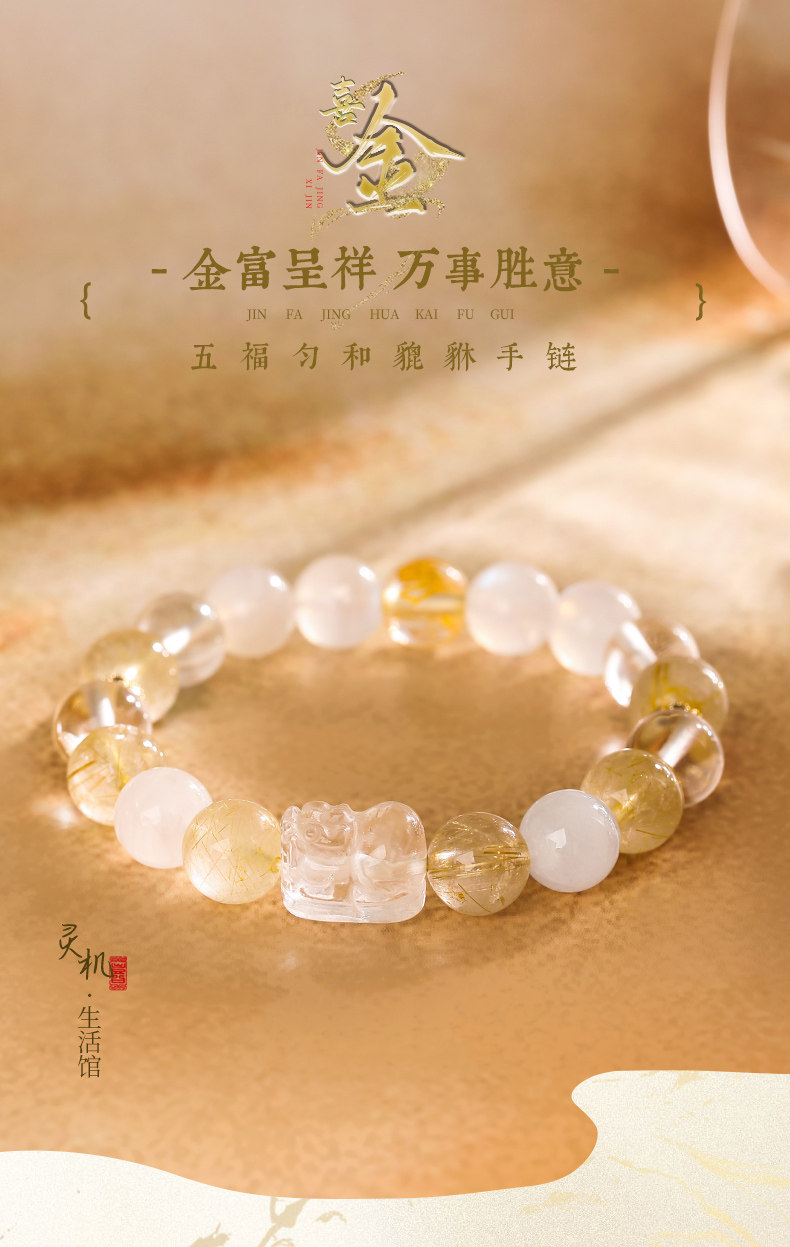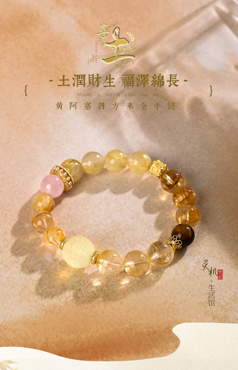 【祈愿吉品】财神手链金黄水晶金发晶钱母手串水晶高级感手饰