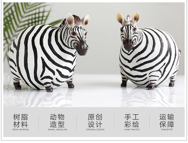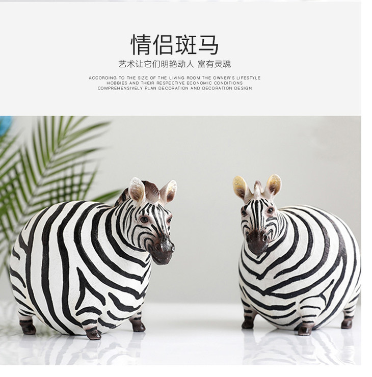 【家居摆件】*北欧树脂工艺品情侣胖斑马 家居装饰品客厅书桌摆件