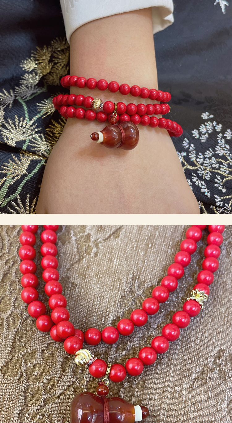 朱砂红玛瑙三圈扩香手串/项链 新年 九运红火设计