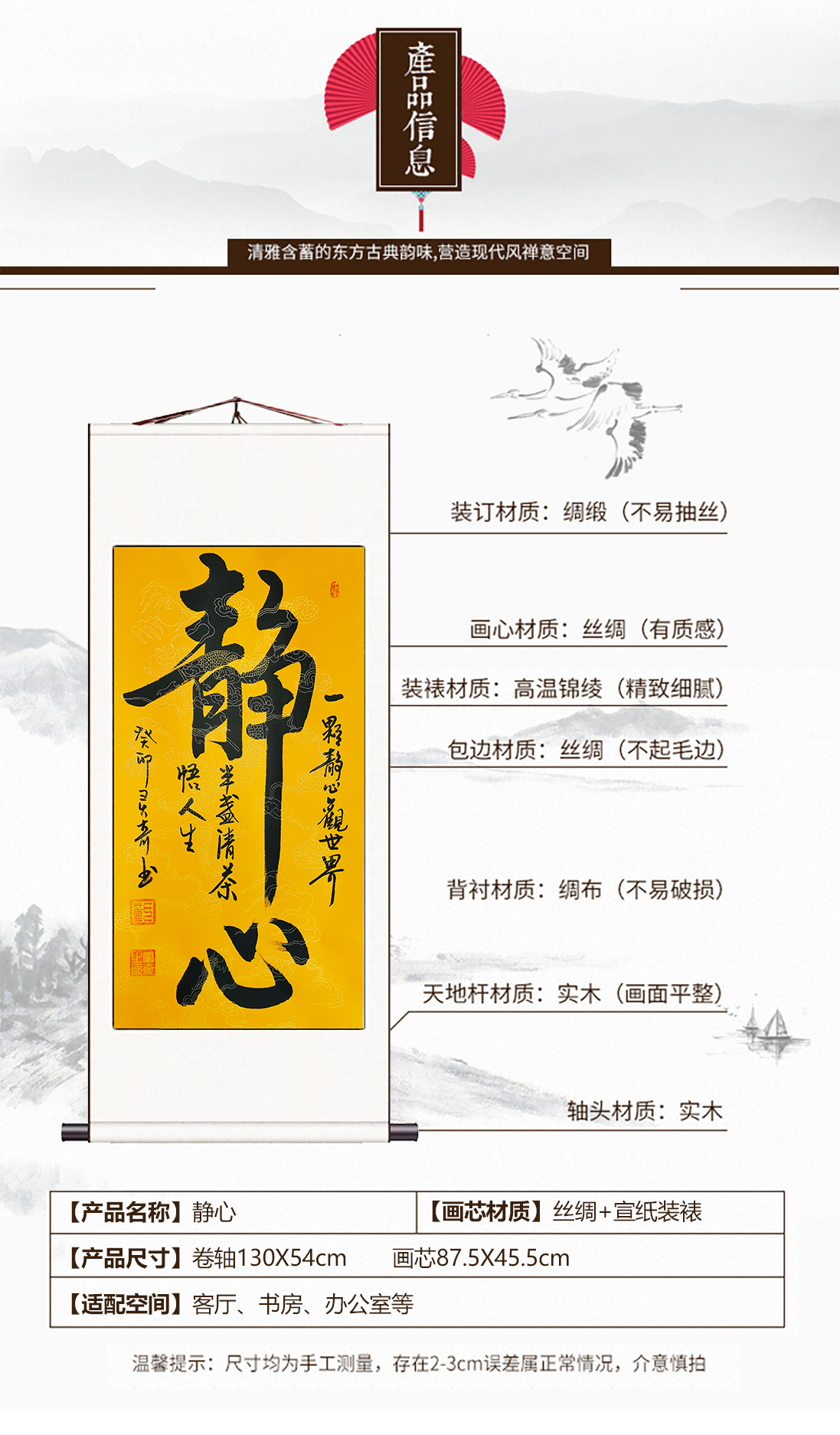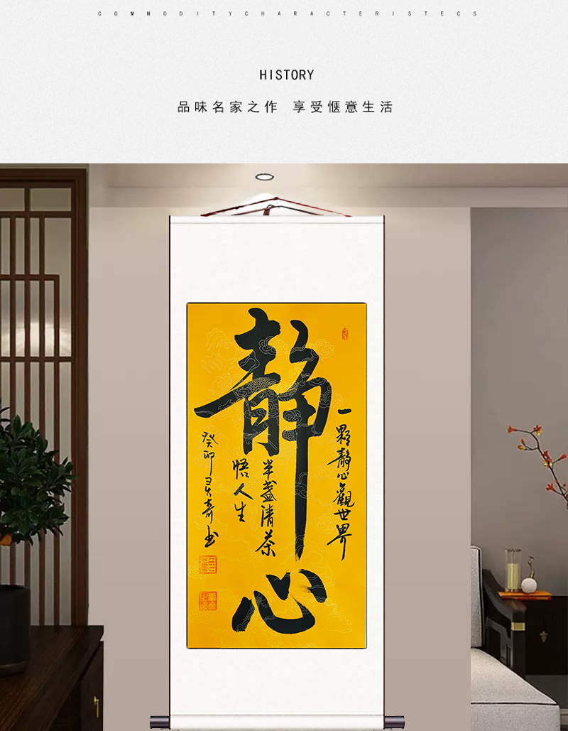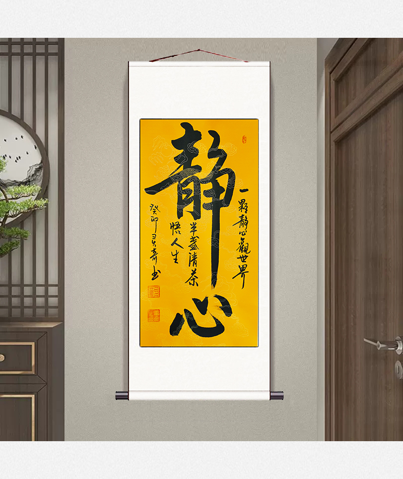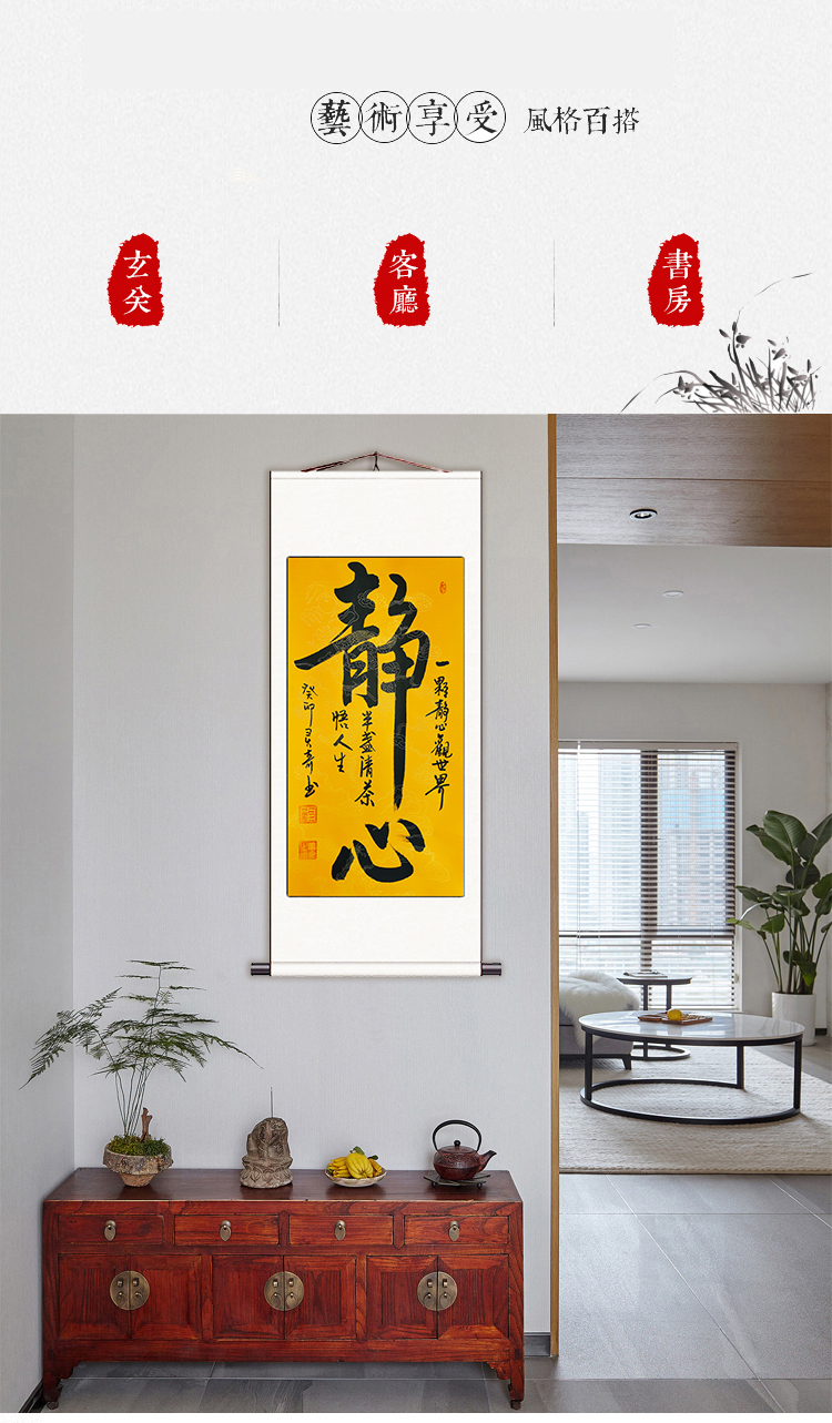 静心字画毛笔字挂画书画挂轴办公室装饰手写卷轴作品书法定制装裱