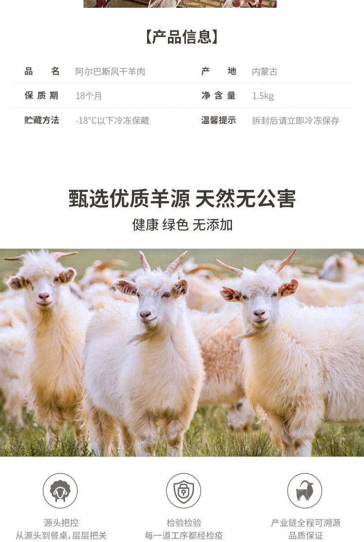 吉羊鲜礼阿尔巴斯风干羊肉 内蒙古风干羊肉礼包 内蒙古特产生鲜