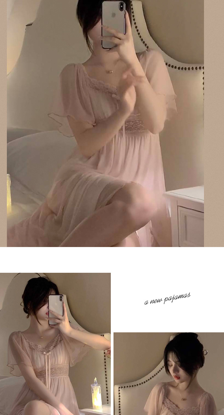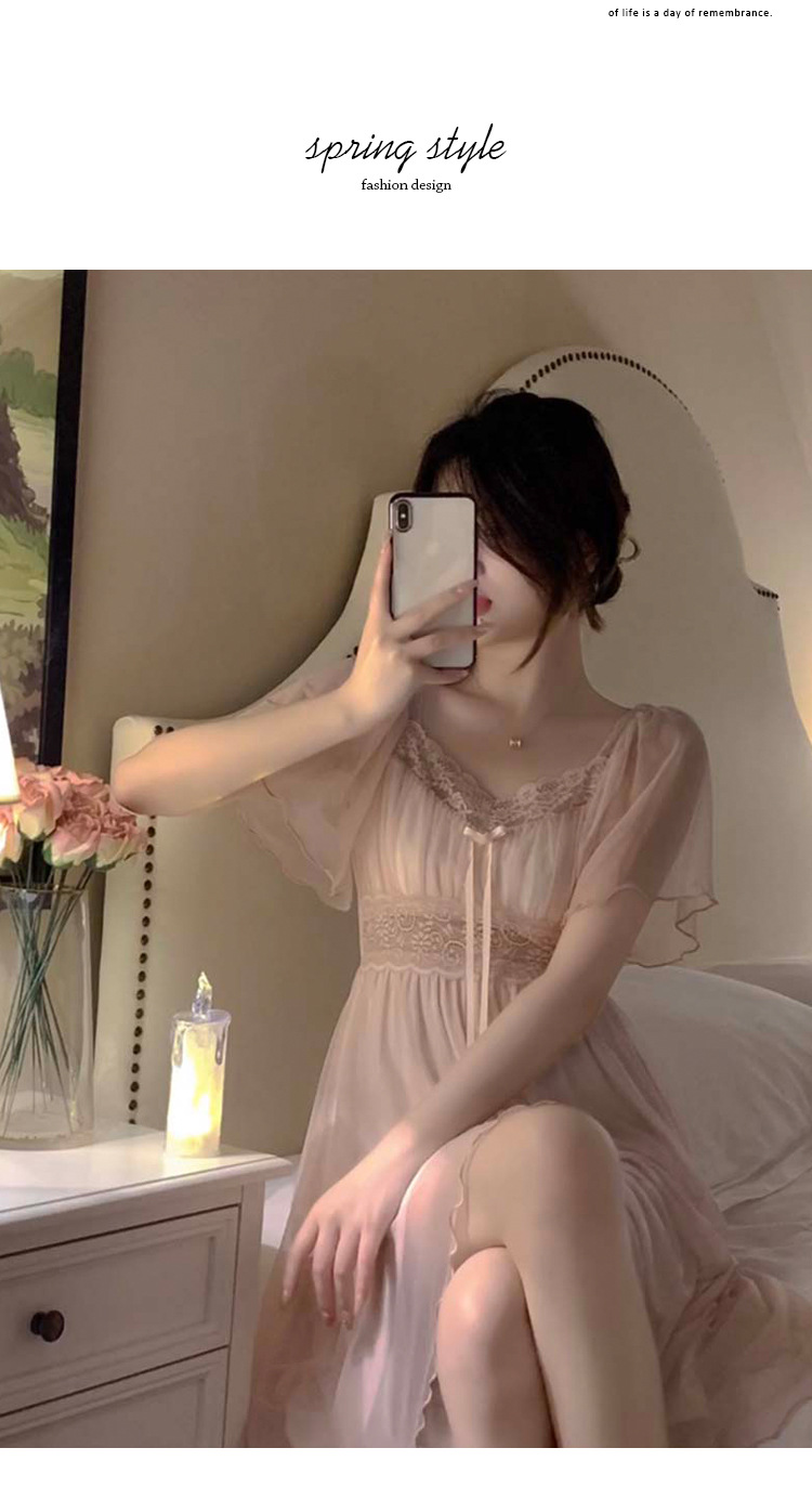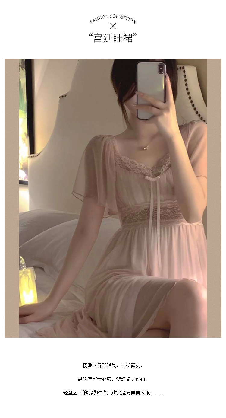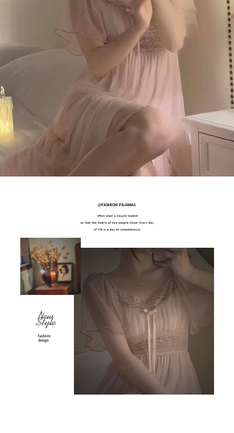 【甜美蝴蝶结宫廷睡裙】夏甜美绑带蕾丝花边睡裙,蕾丝网纱,仙女温柔蝴蝶结带胸垫可外穿纯欲风网纱睡裙