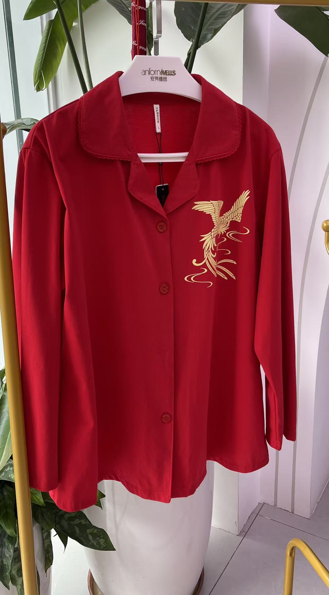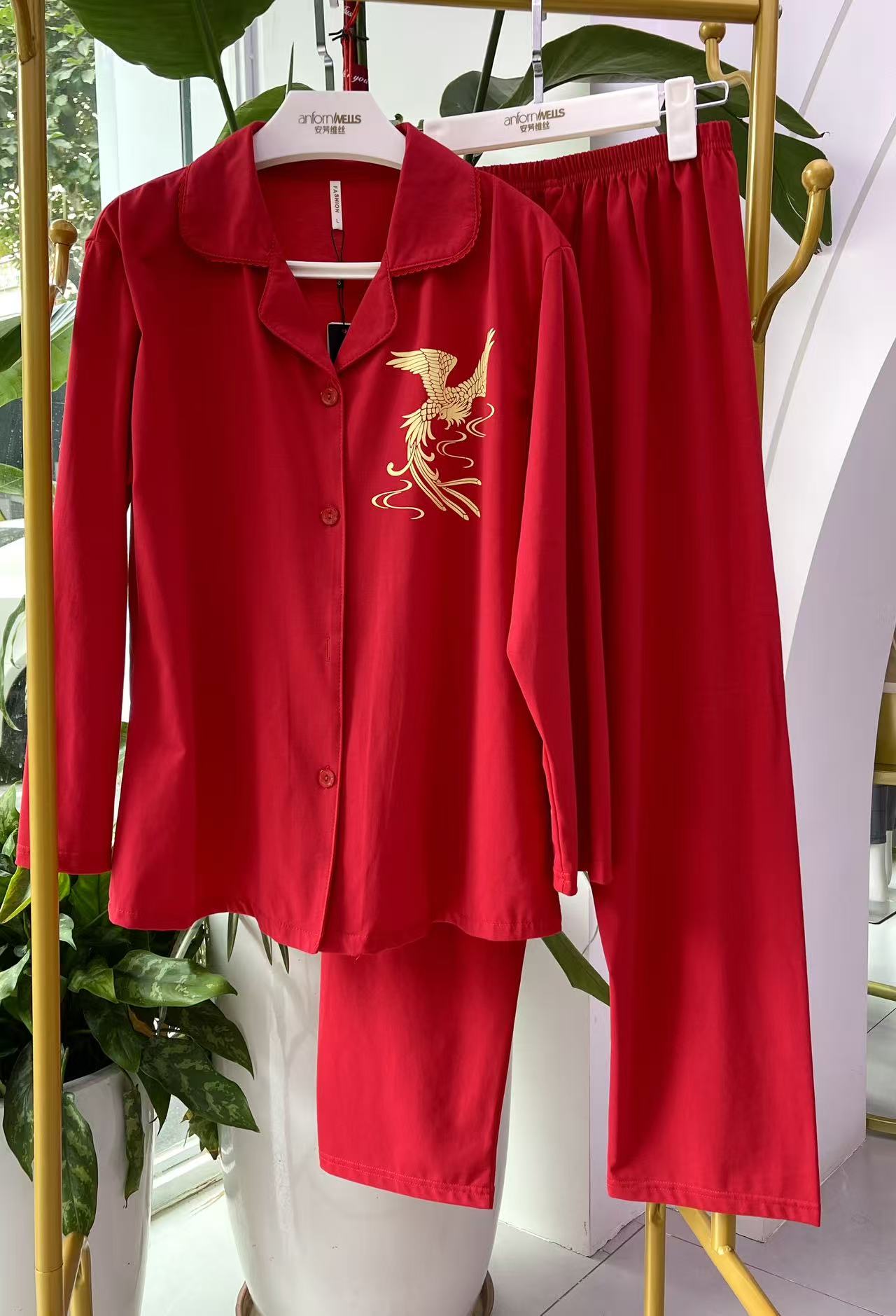 发财大红色翻领丝光棉套装女款睡衣舒适透气1415340