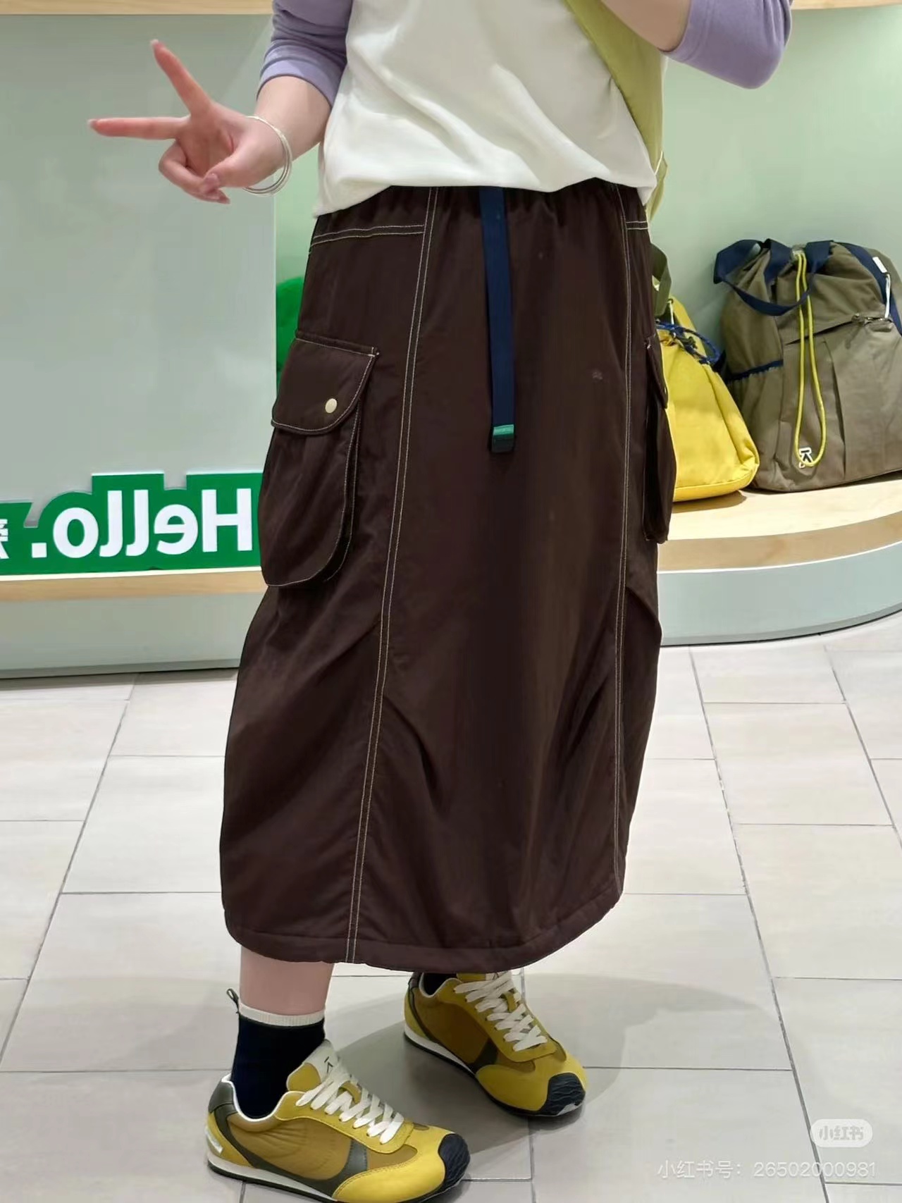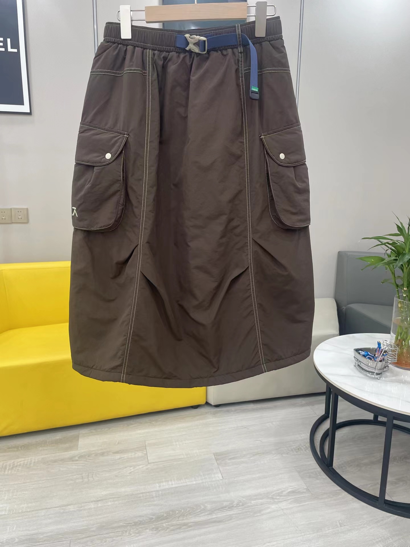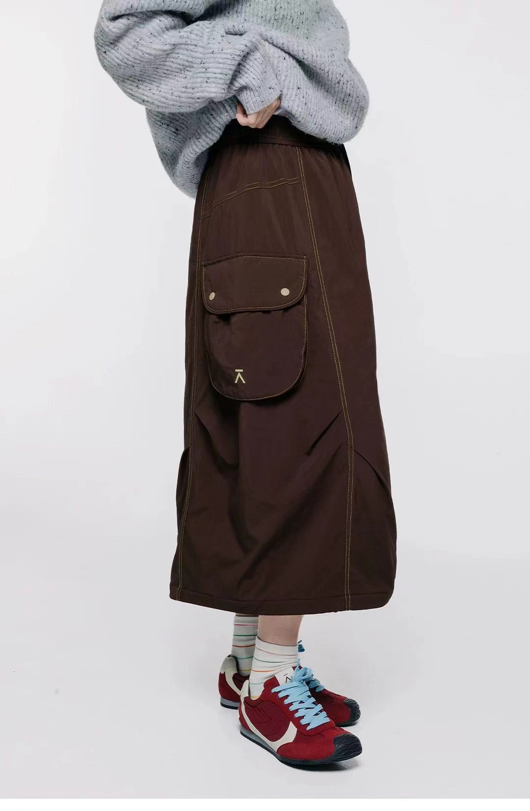 D122412秋冬防泼水明线夹棉长裙保暖厚款宽松半身裙