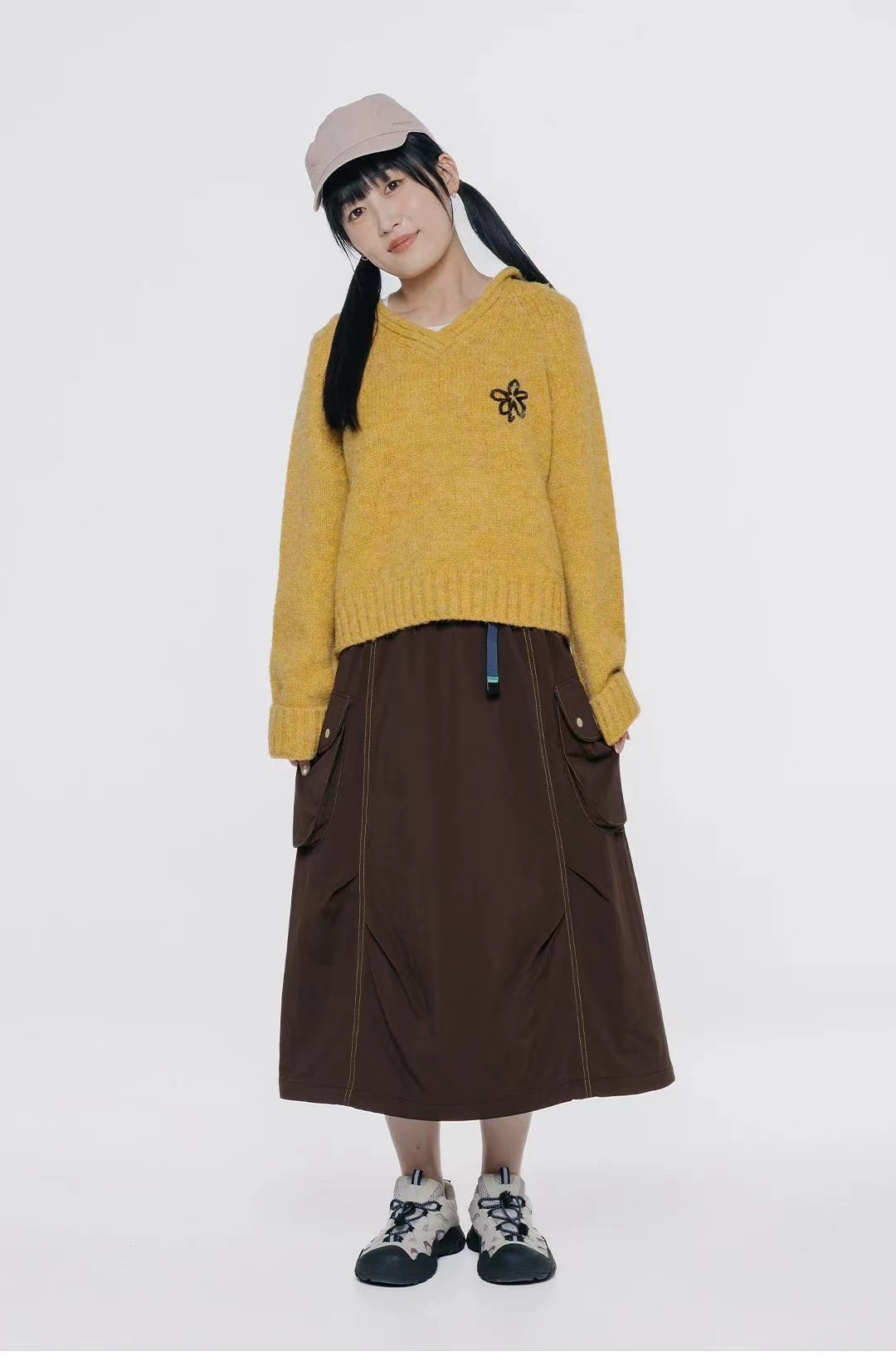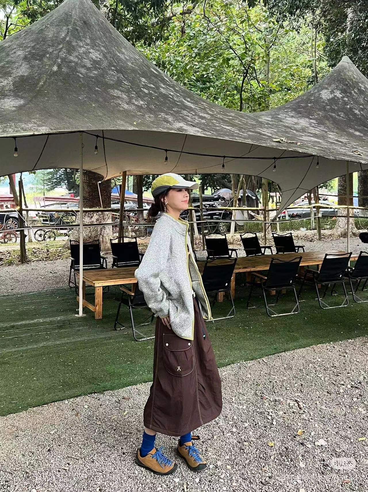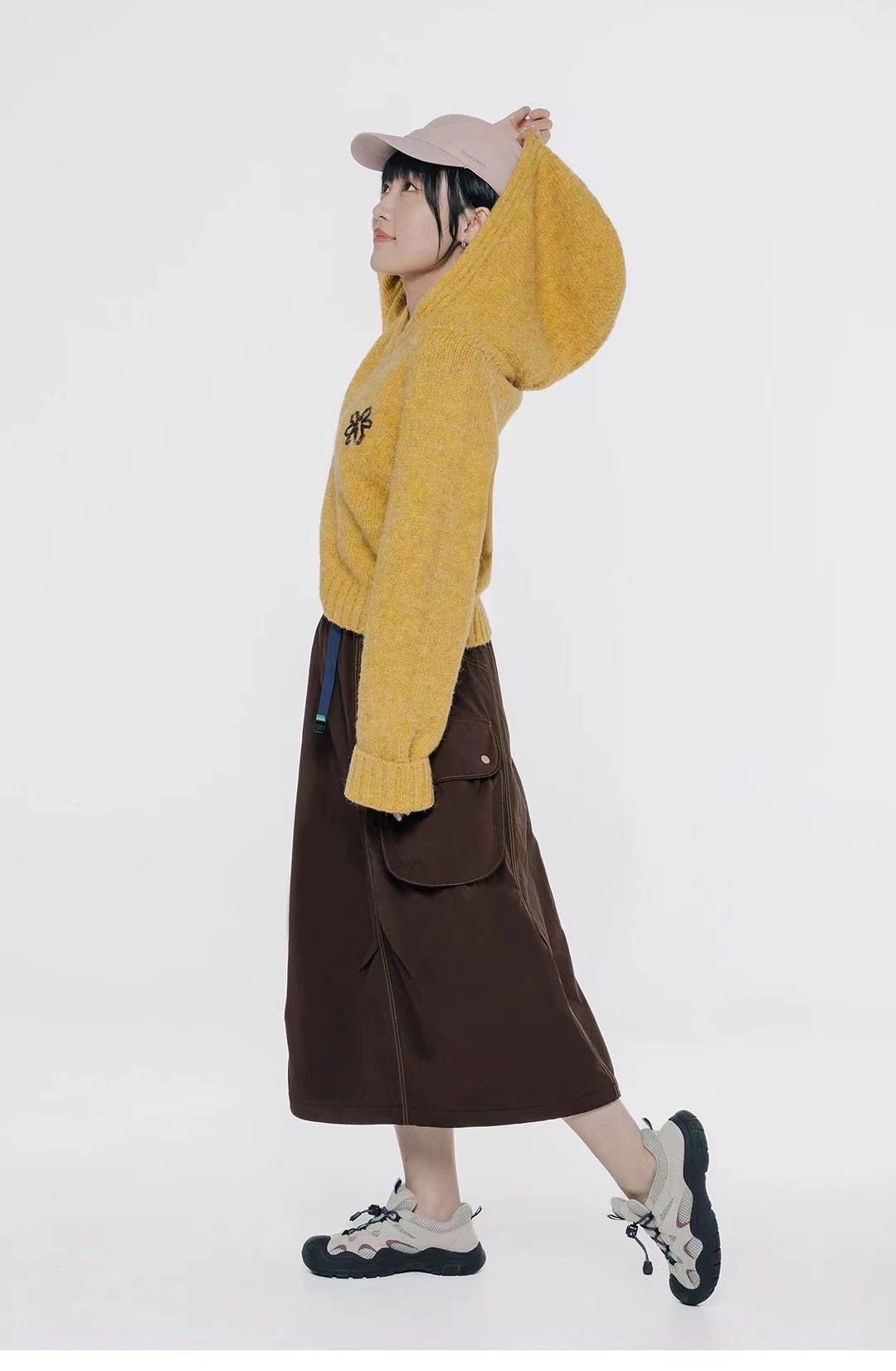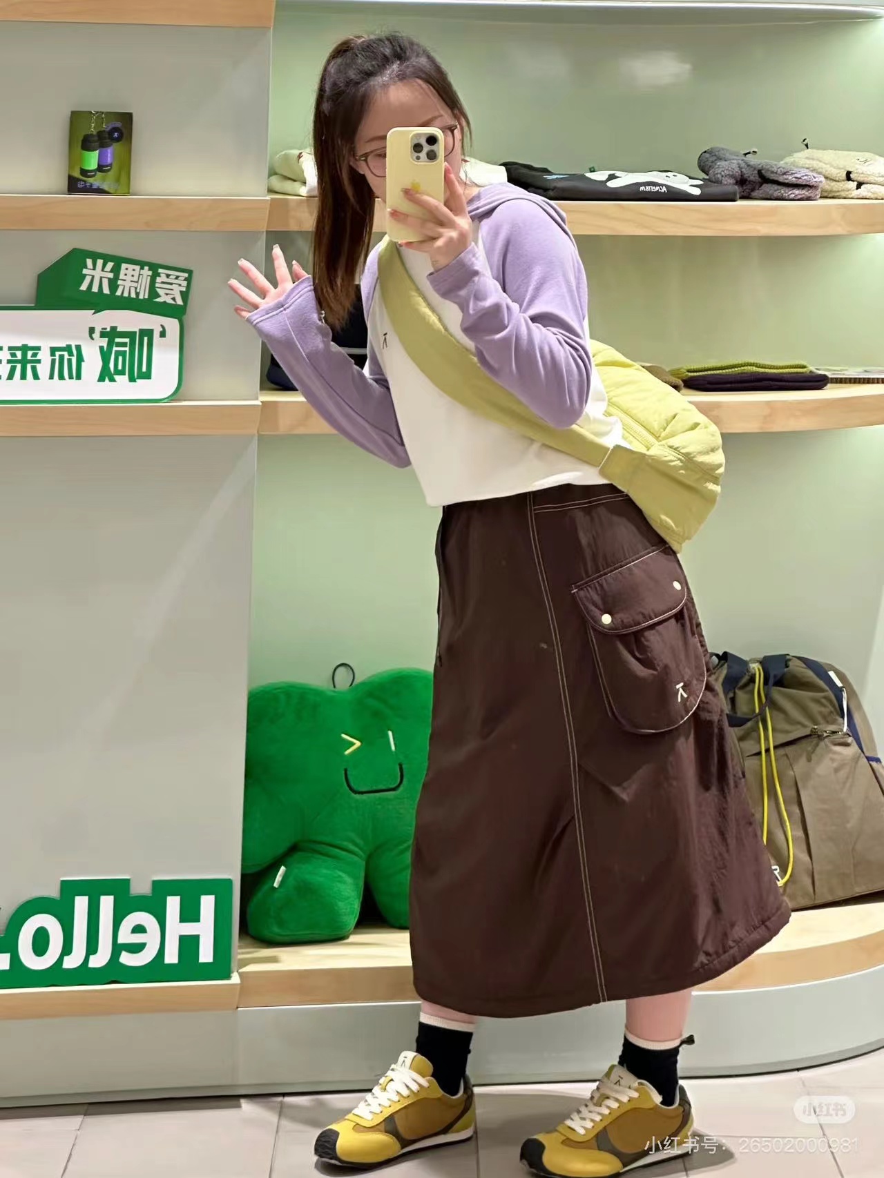 D122412秋冬防泼水明线夹棉长裙保暖厚款宽松半身裙