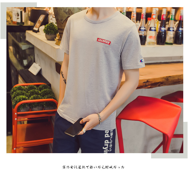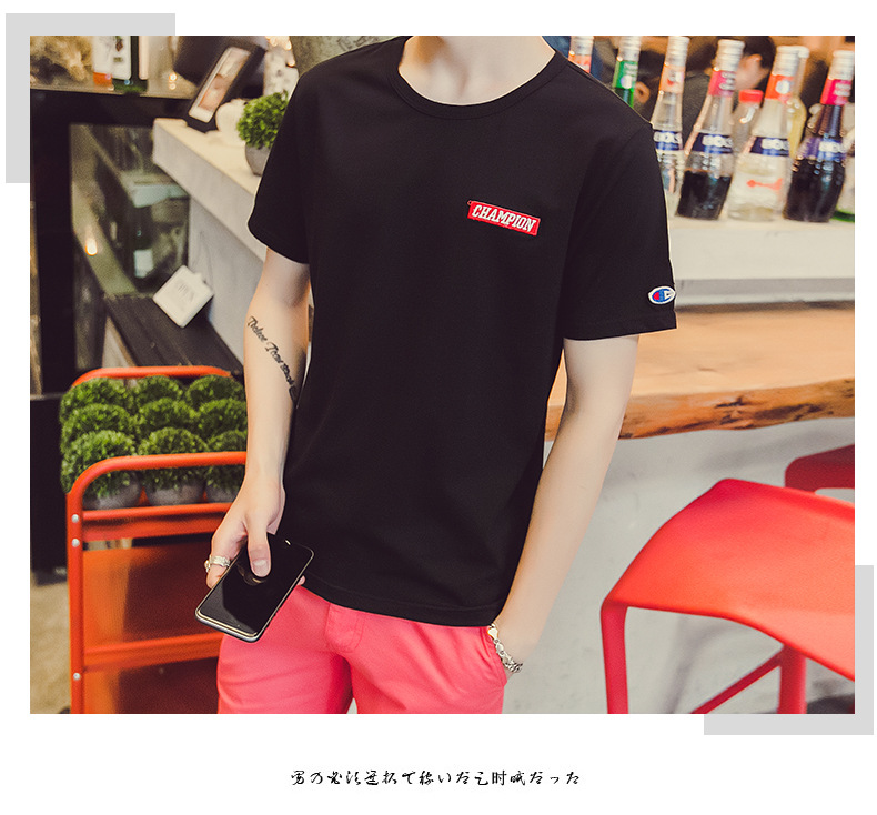 【服饰鞋包】。短袖T恤男 年男士圆领纯棉男t恤韩版修身纯色上衣 男式t恤