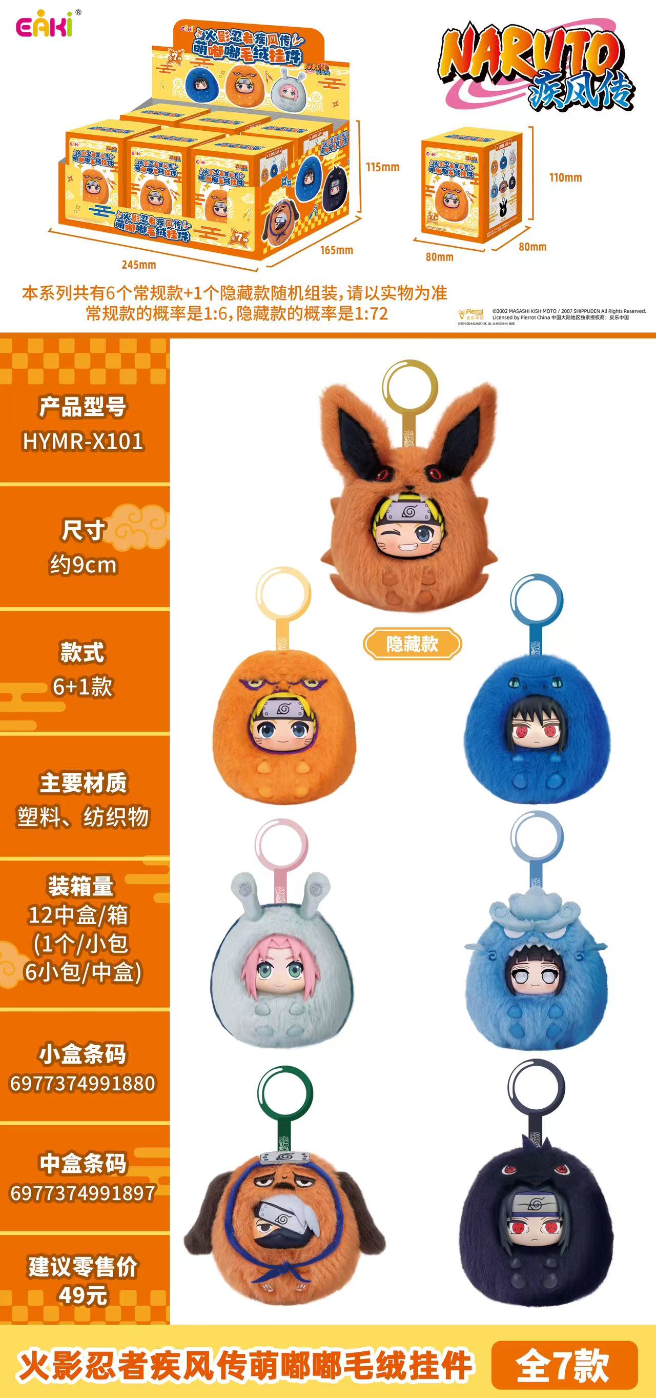 亿奇 火影忍者疾风传 萌嘟嘟 毛绒挂件 全7种 6只/盒 盲盒