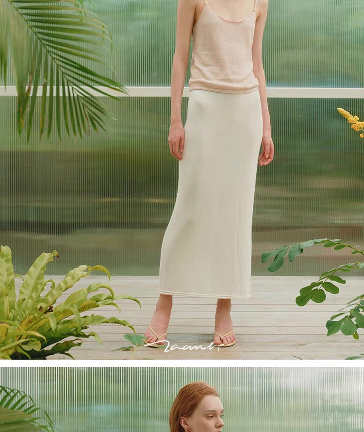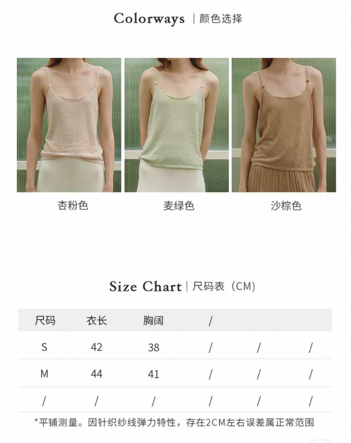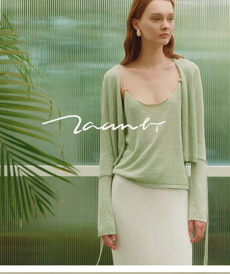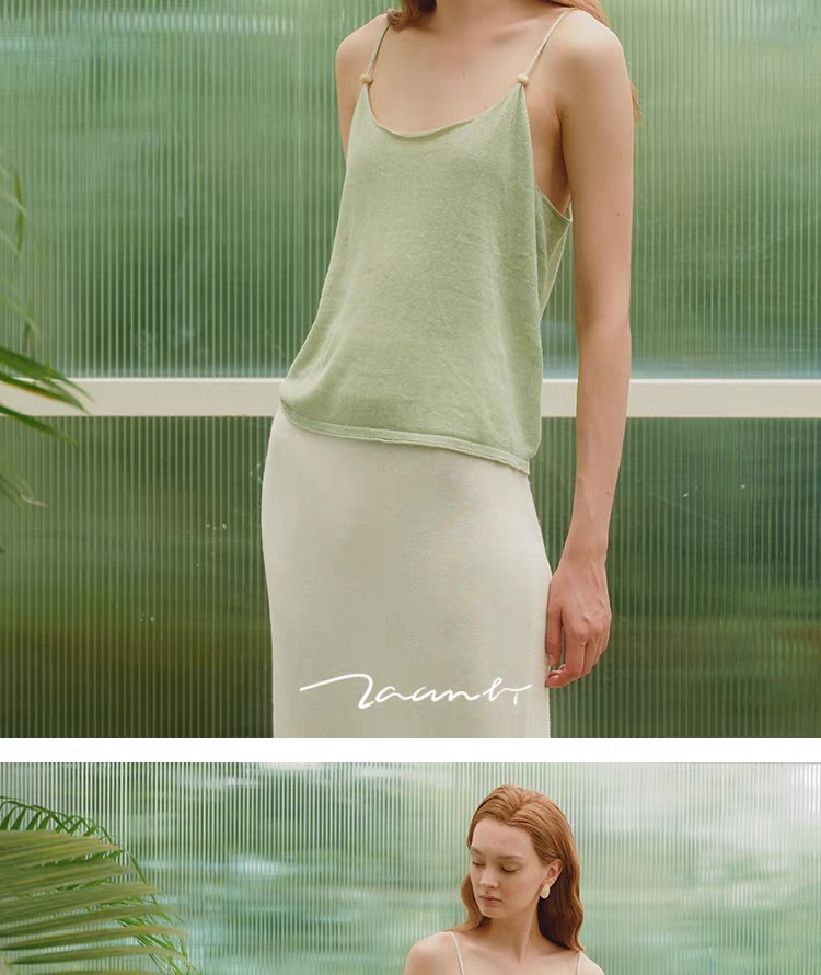 ZAANLI|ZNSS25022 汉麻天丝卷边吊带针织背心 [ 绿 / 杏 / 棕 ]
