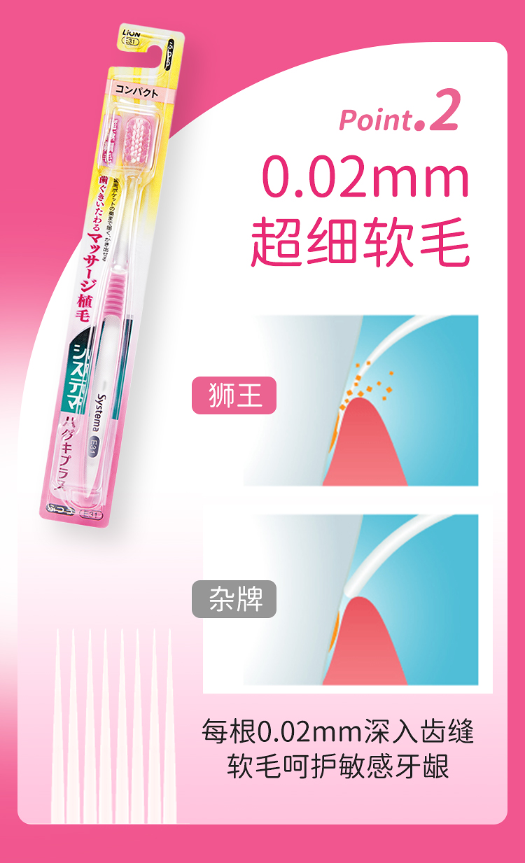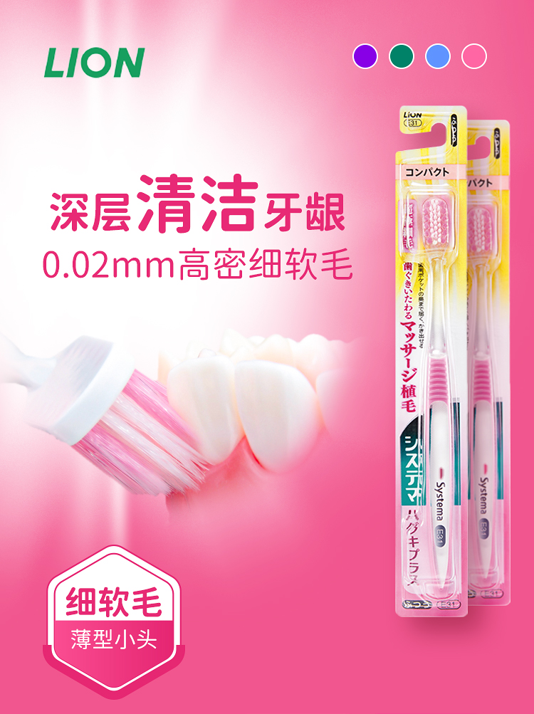 【品牌直发】包邮!日本进口狮王细齿洁牙龈护理高密度超细毛牙刷(小头/超小头)