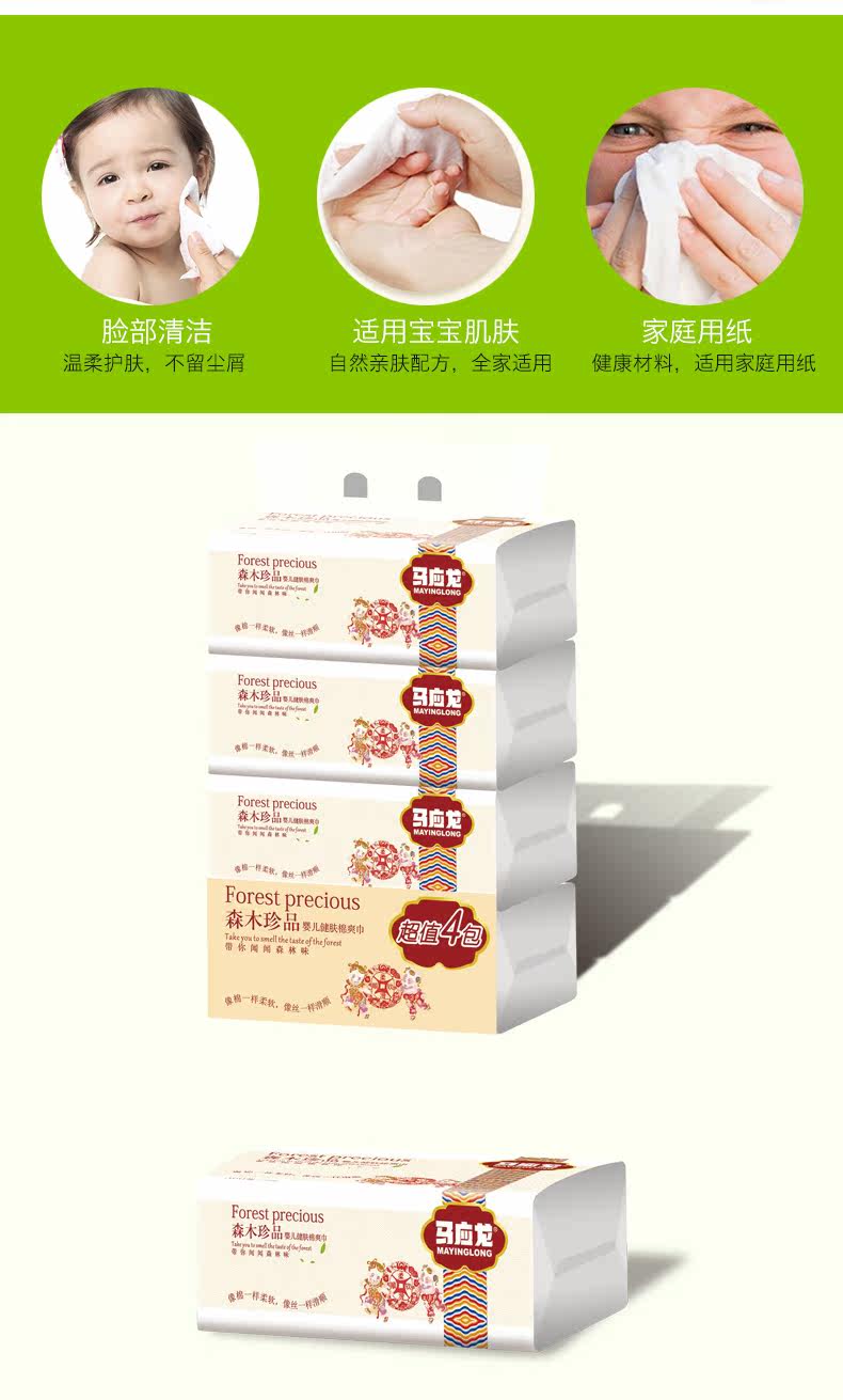 (整箱自提)【马应龙护理】马应龙婴儿健肤棉爽纸巾(每包120抽)