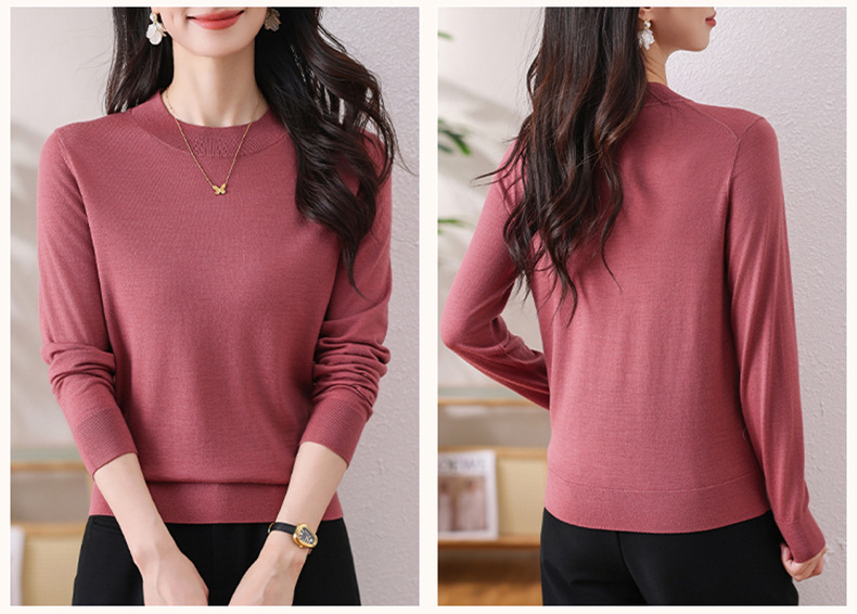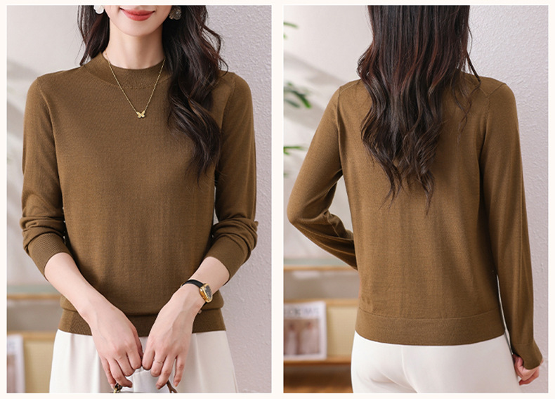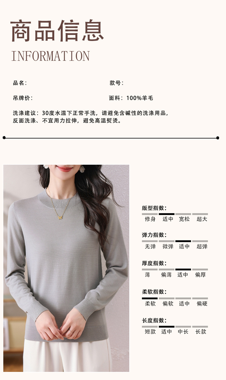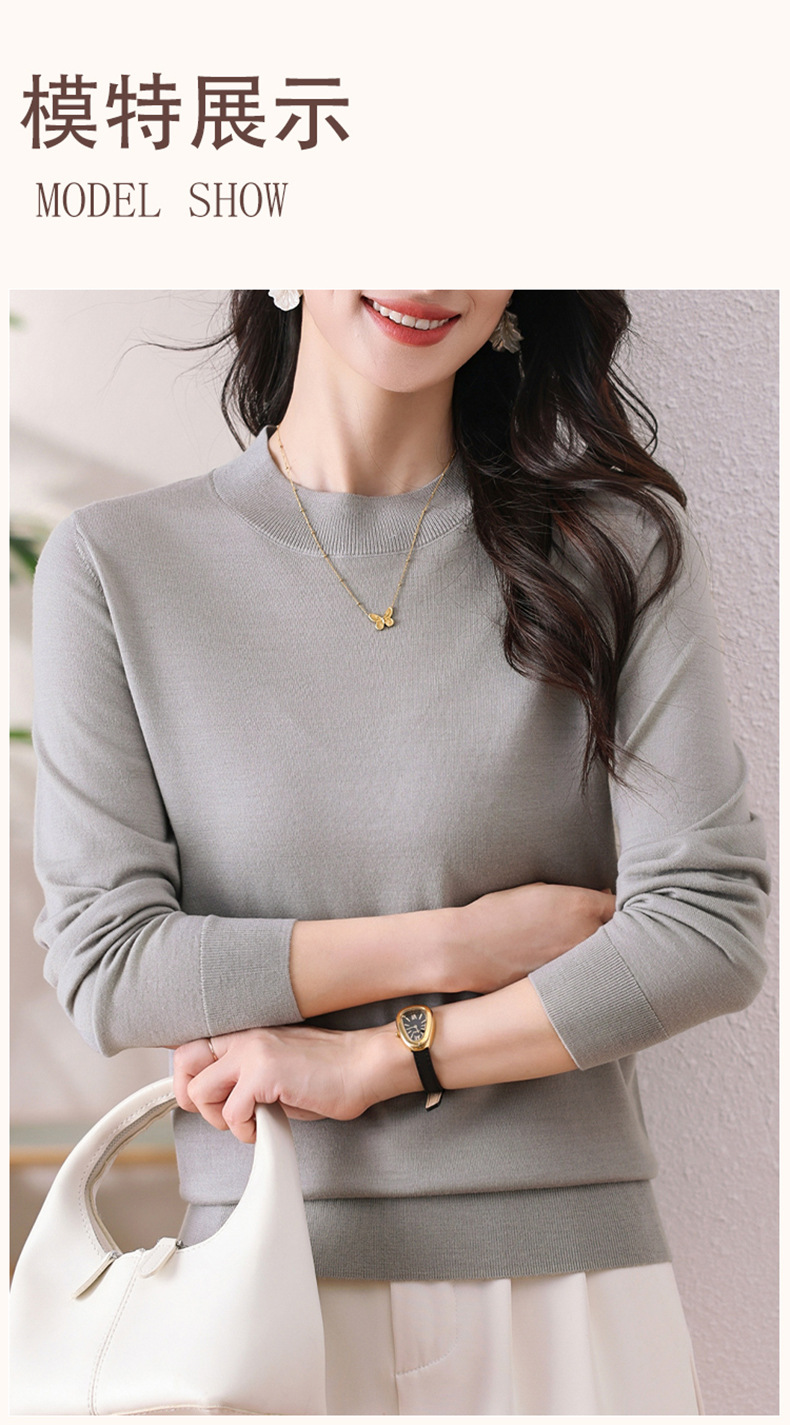 48针精纺超细纯羊毛可机洗羊毛衫女薄款时尚半高领套头长袖毛衣 商品图4
