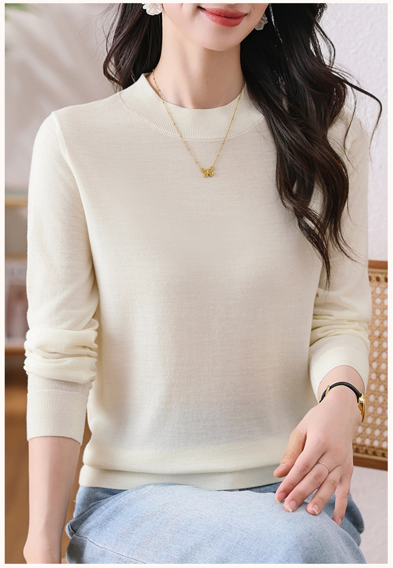 48针精纺超细纯羊毛可机洗羊毛衫女薄款时尚半高领套头长袖毛衣 商品图1