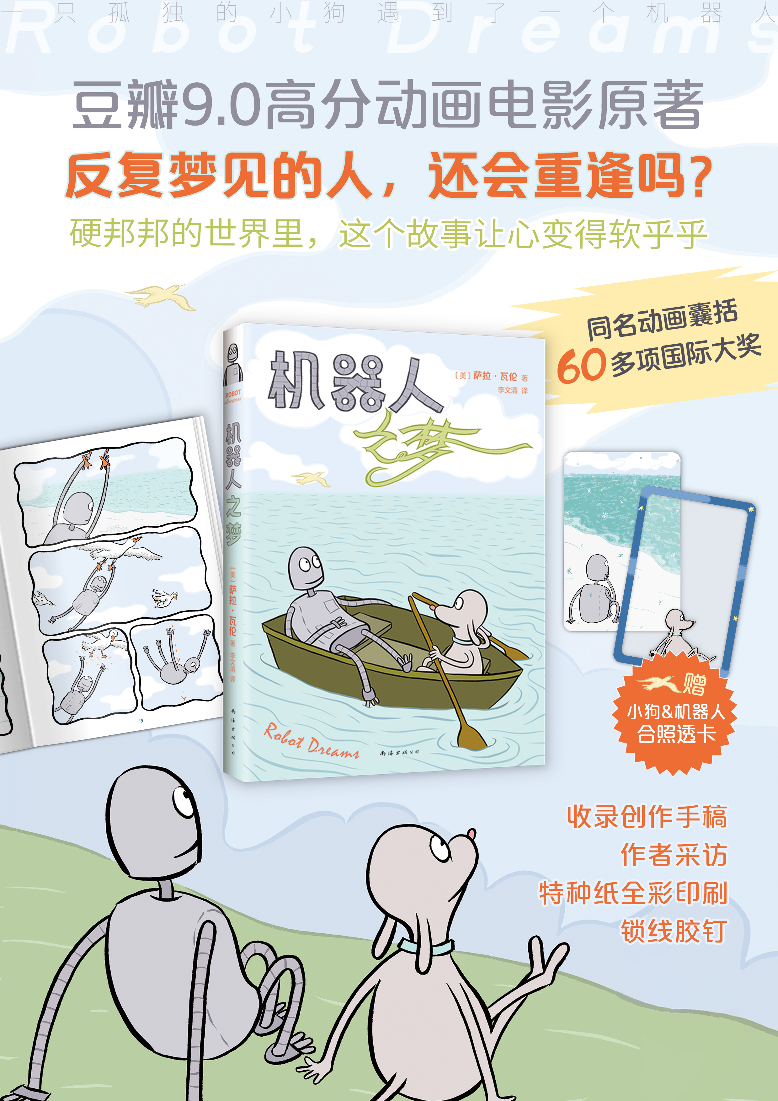 《机器人之梦》漫画原作一经面世,便被《出版人周刊》等多家媒体评为年度蕞佳图书,同名动画电影获安妮奖等60余项国际大奖及提名。全书没有一句对白,却让无数人暴哭。在硬邦邦的世界里,这个故事让心变得软乎乎。