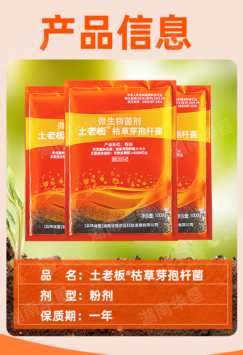 土老板枯草芽孢杆菌农用种植肥料预防根腐黑腐茎腐病绿色有机养花1000克/包