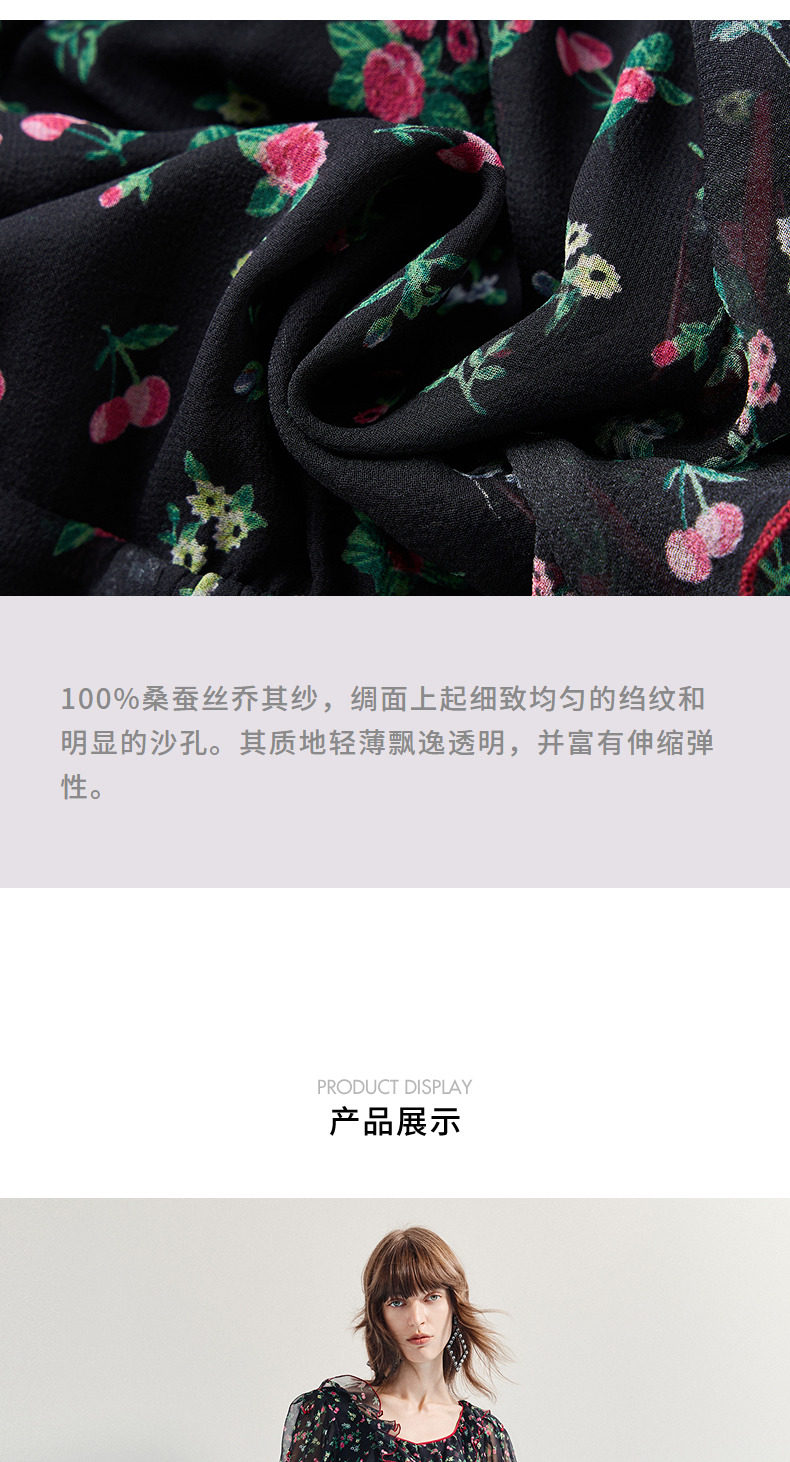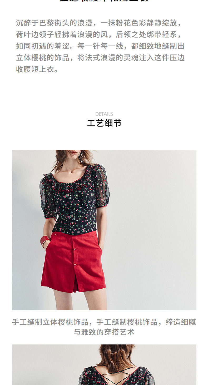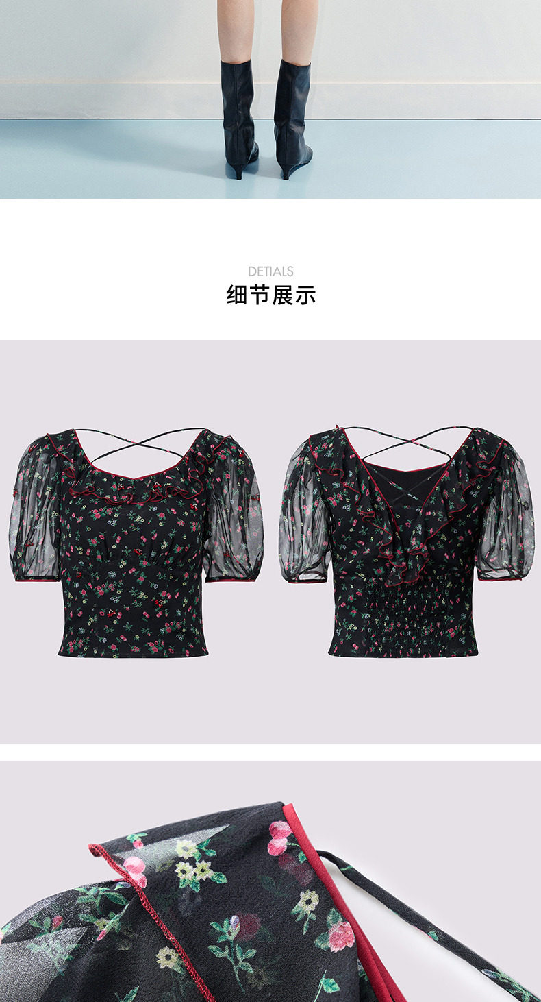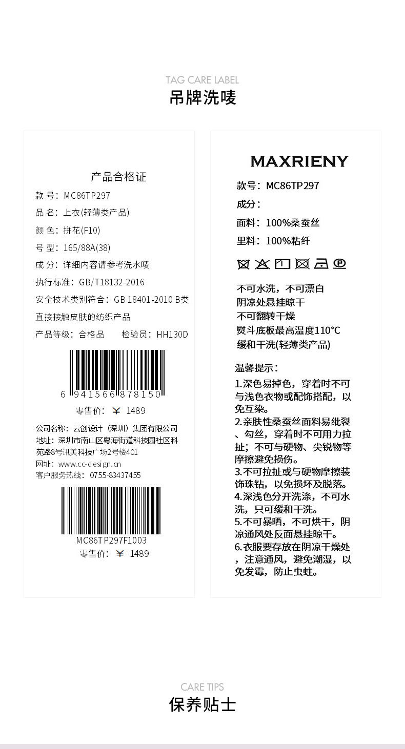 【商场同款】MAXRIENY法式浪漫压边收腰印花短上衣25夏桑蚕丝小衫(货号:MC86TP297)