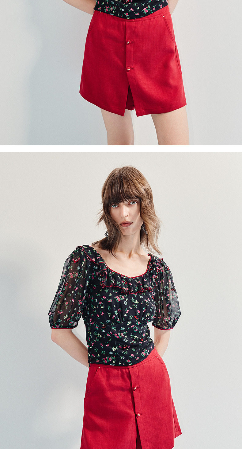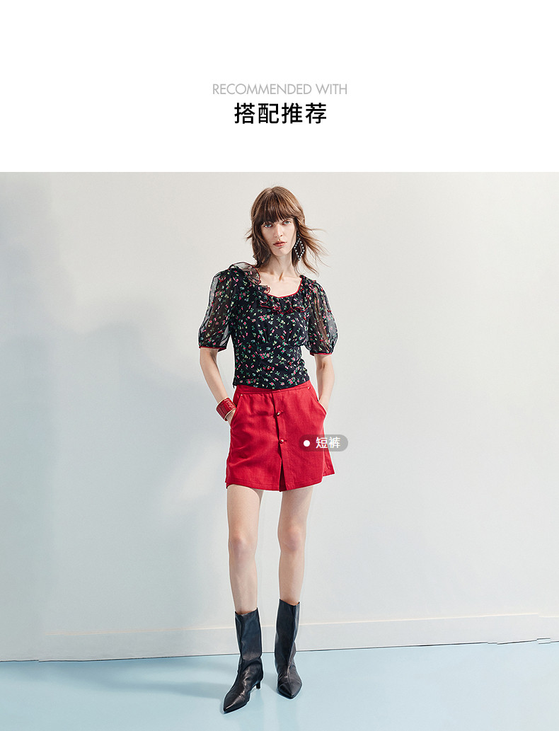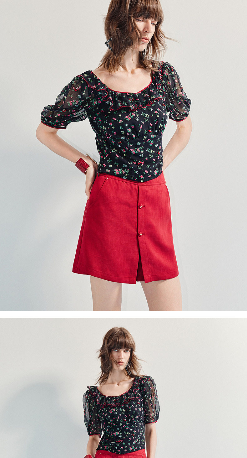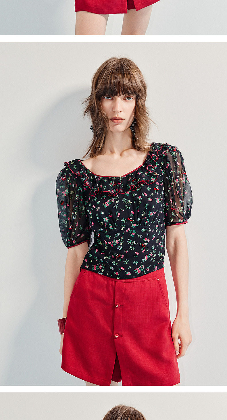 【商场同款】MAXRIENY法式浪漫压边收腰印花短上衣25夏桑蚕丝小衫(货号:MC86TP297)