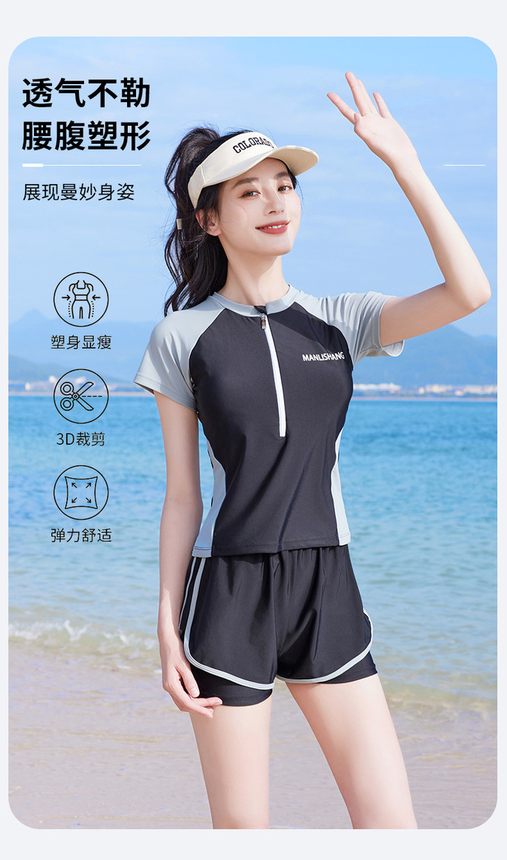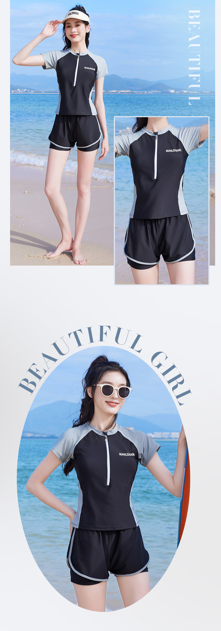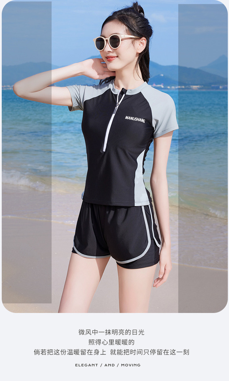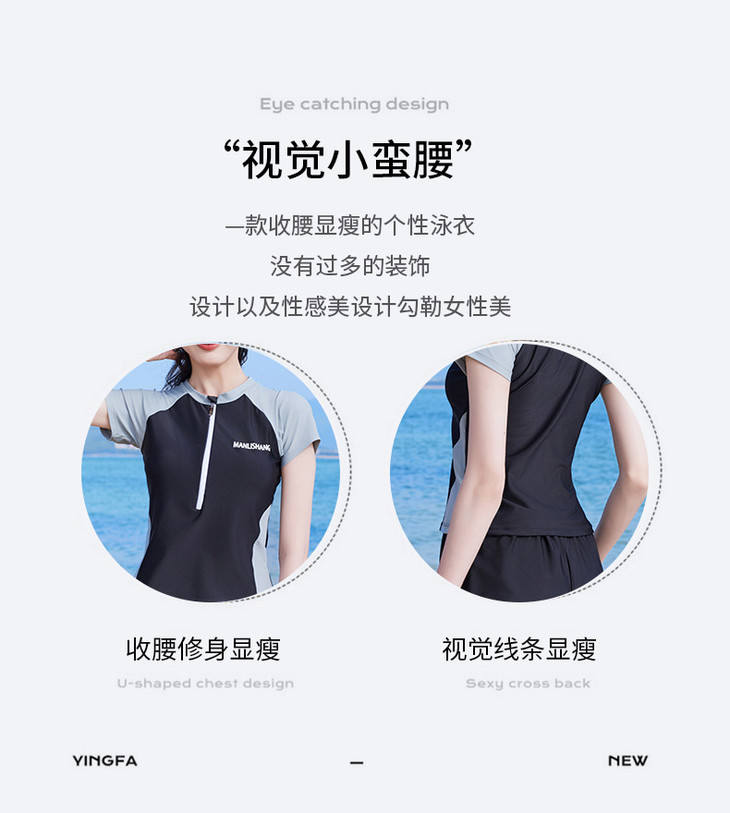 保守遮肉显瘦微胖女孩温泉泳衣,海边度假分体泳装GF-8893
