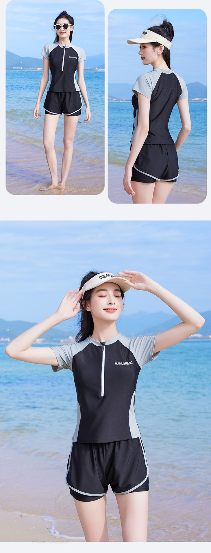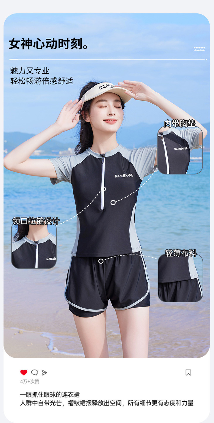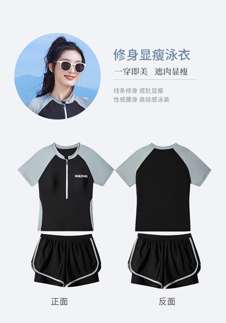 保守遮肉显瘦微胖女孩温泉泳衣,海边度假分体泳装GF-8893