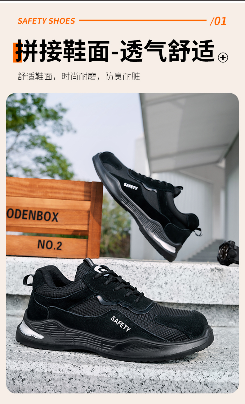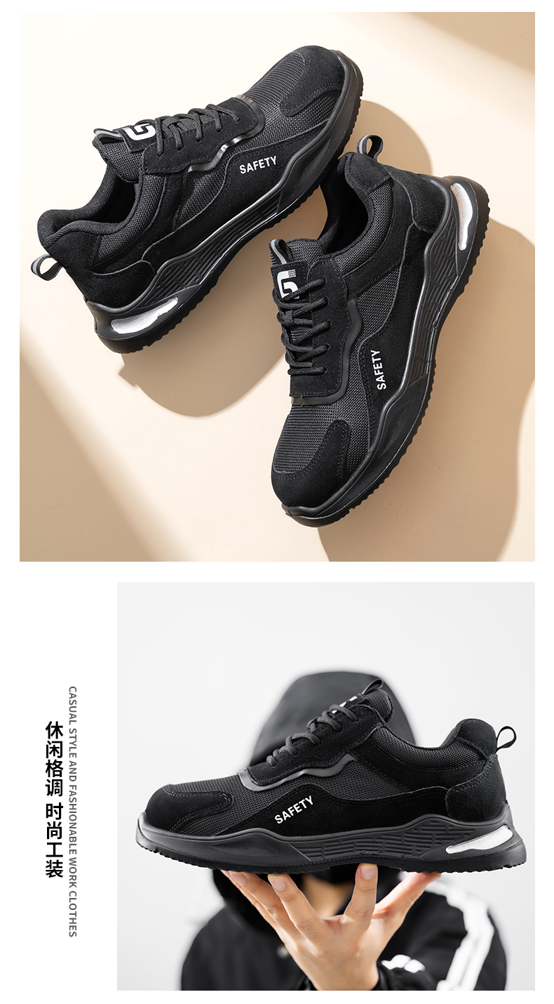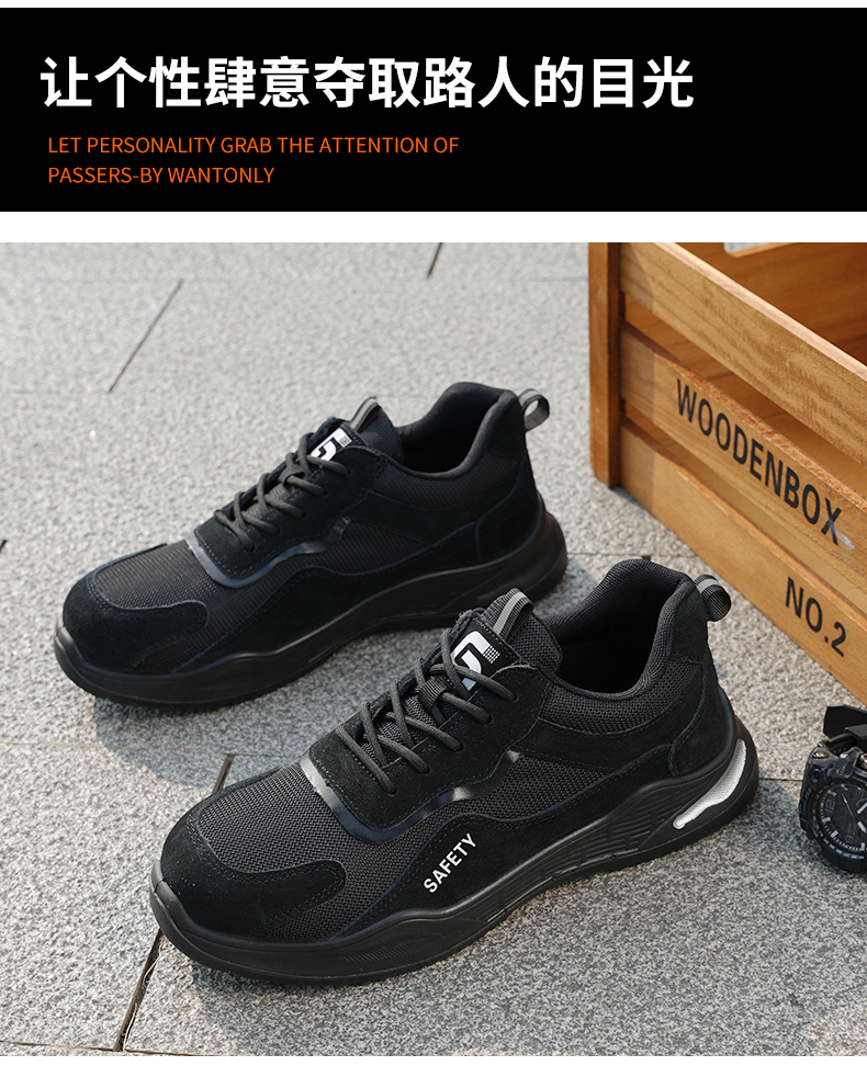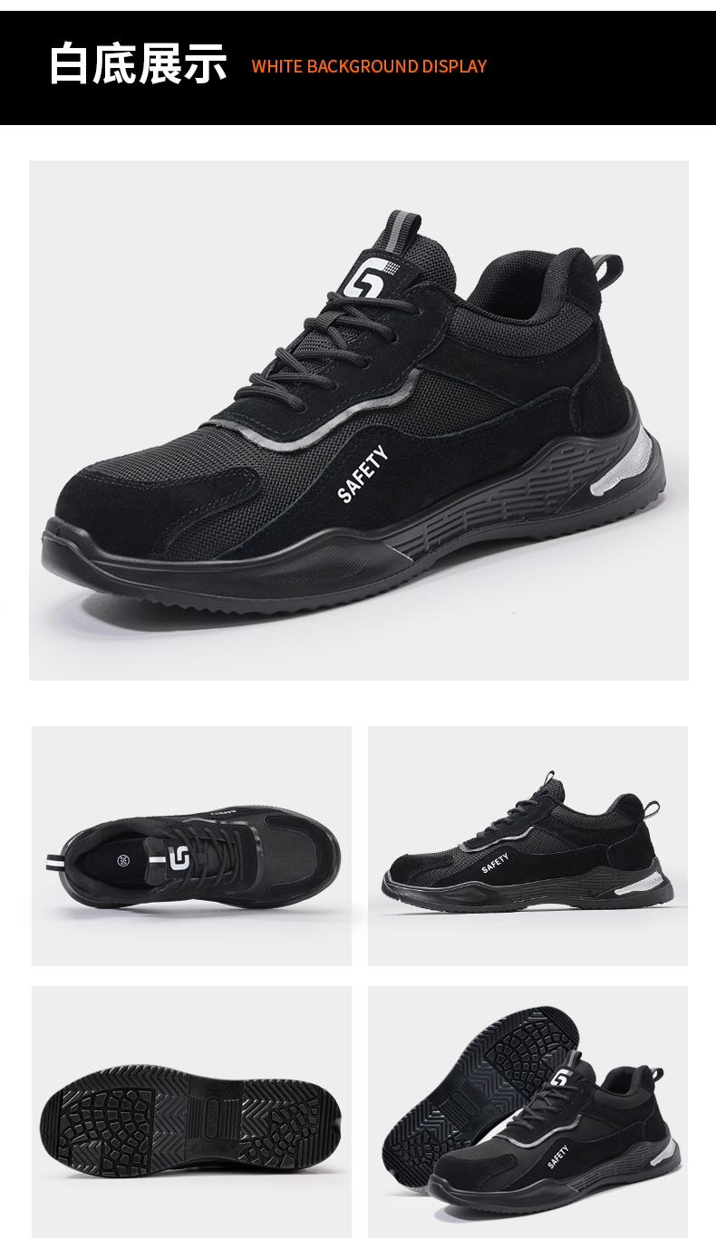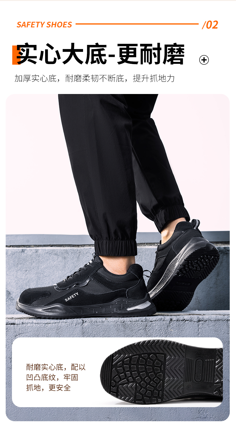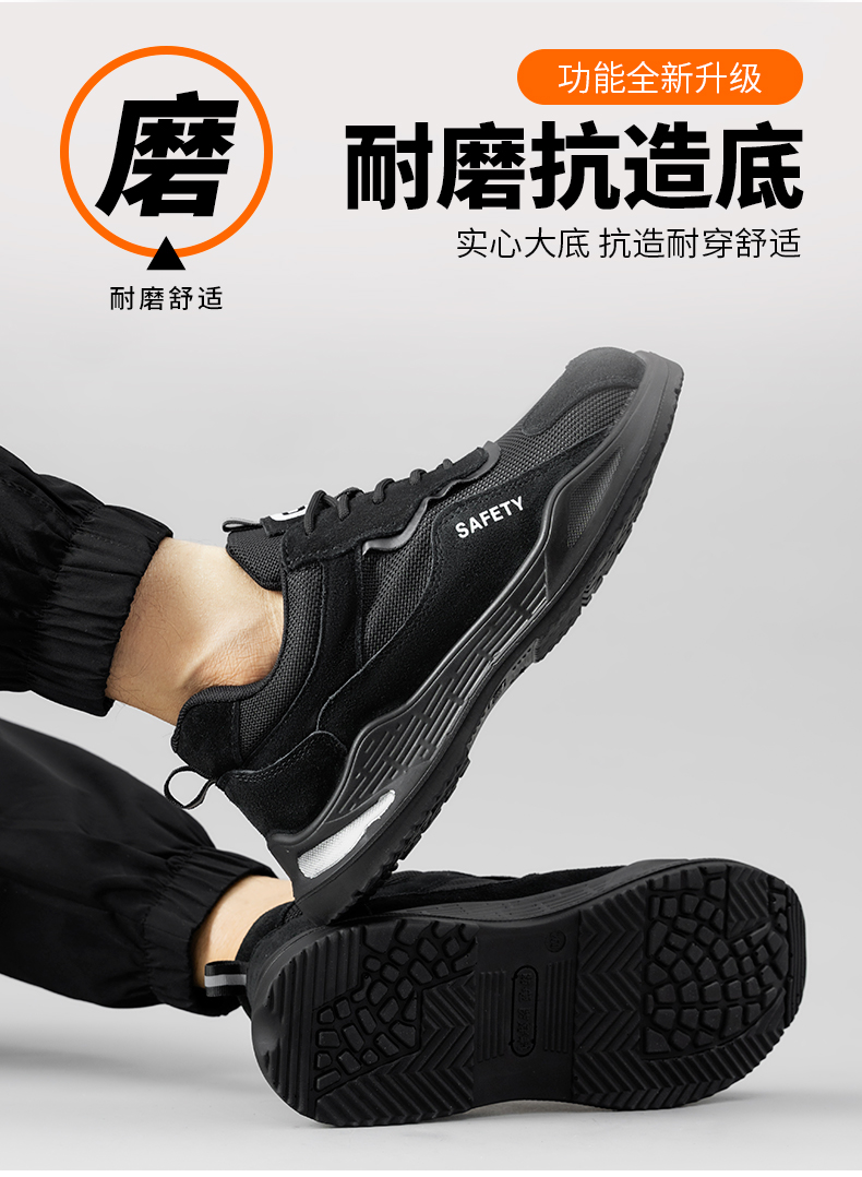劳保鞋防砸防刺穿欧标钢包头凯夫拉底实心底反绒皮黑色四季款低帮安全鞋