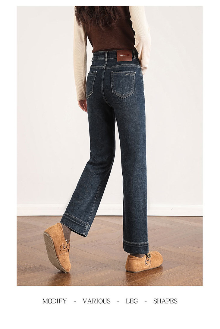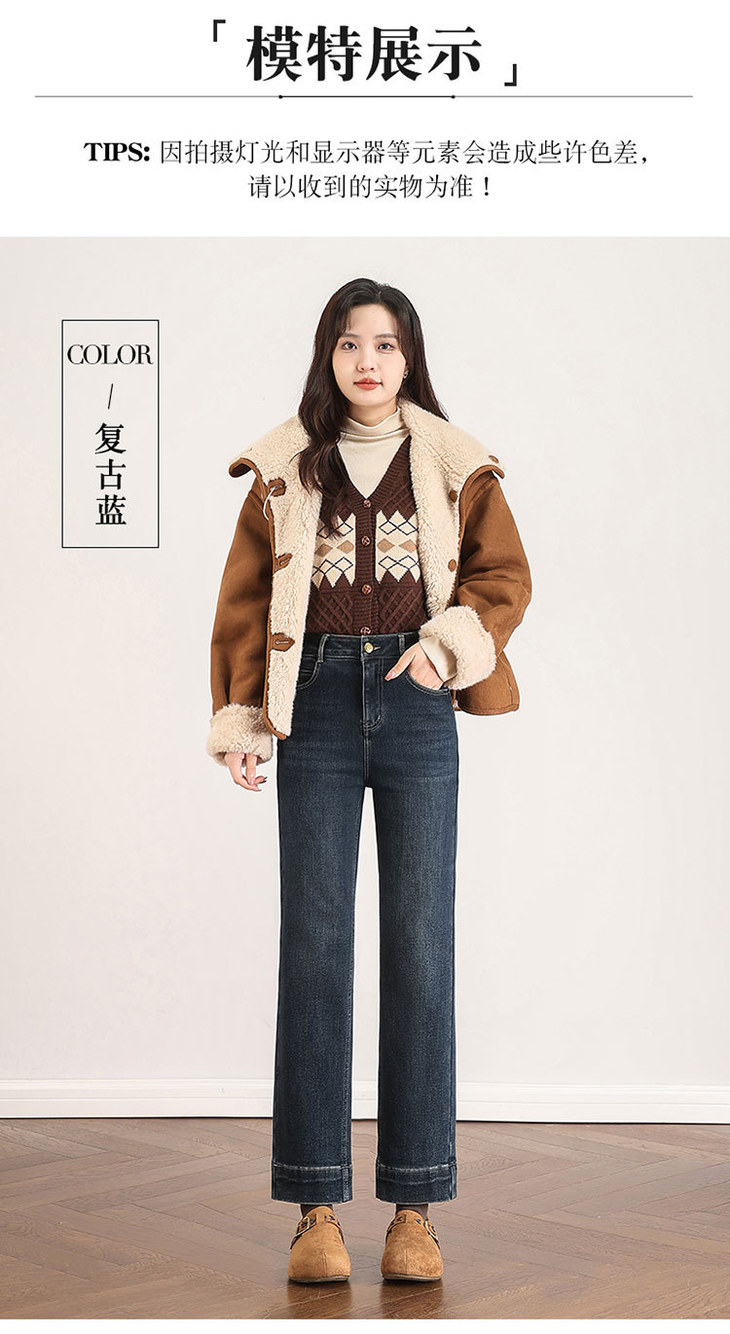 加绒牛仔九分裤复古蓝洋气小直筒裤,显瘦高腰时尚烟管裤MYX-OZY-25271-L