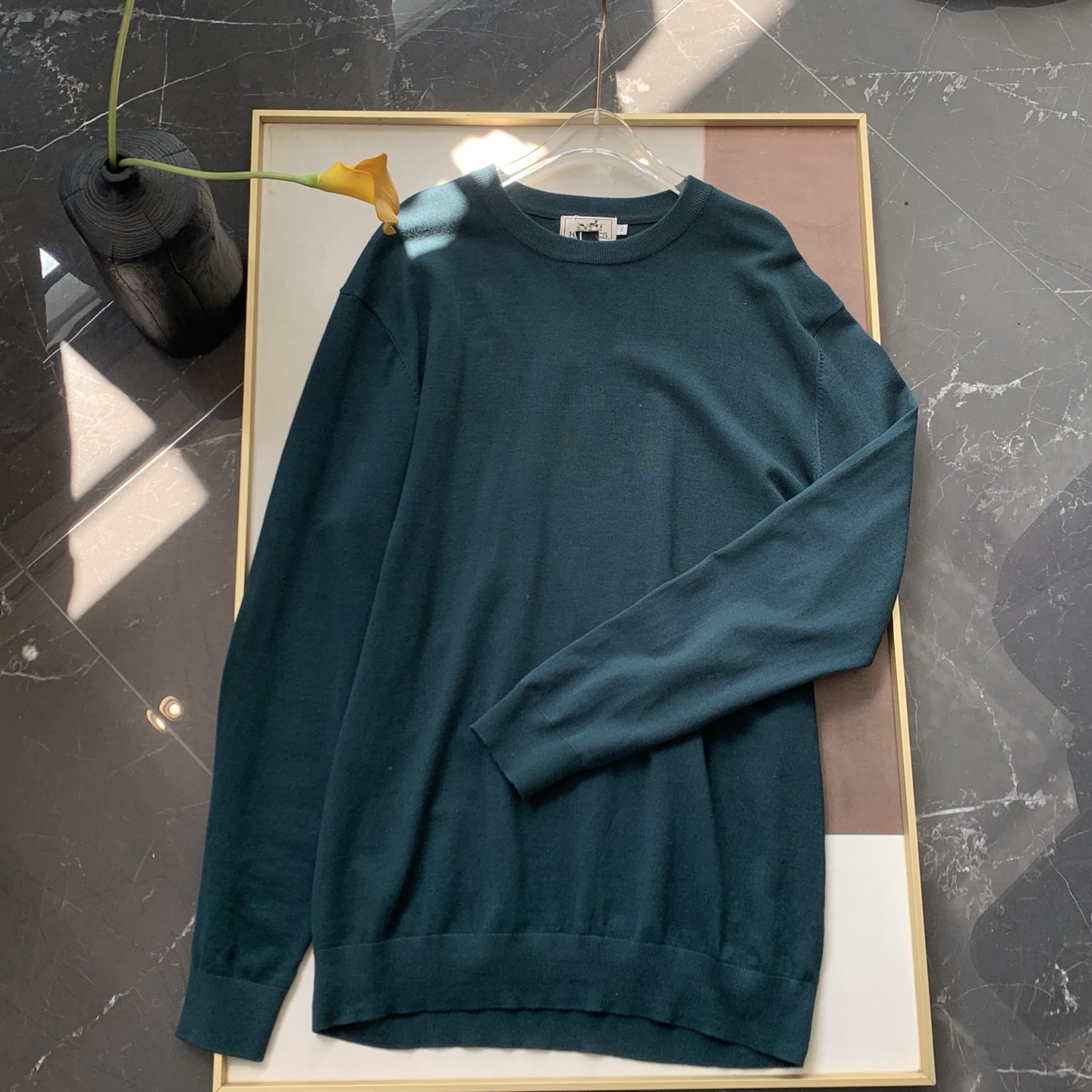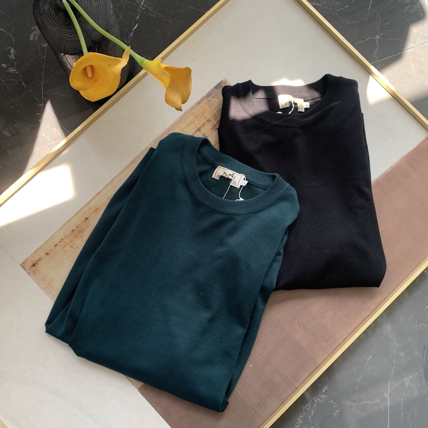 顶级货白菜价🥬!‼️爱ma仕 纯色圆领毛织套头针织衫 黑 绿色 男女同款 爱马仕的这件圆领针织衫,堪称「低调奢华」的完美诠释。