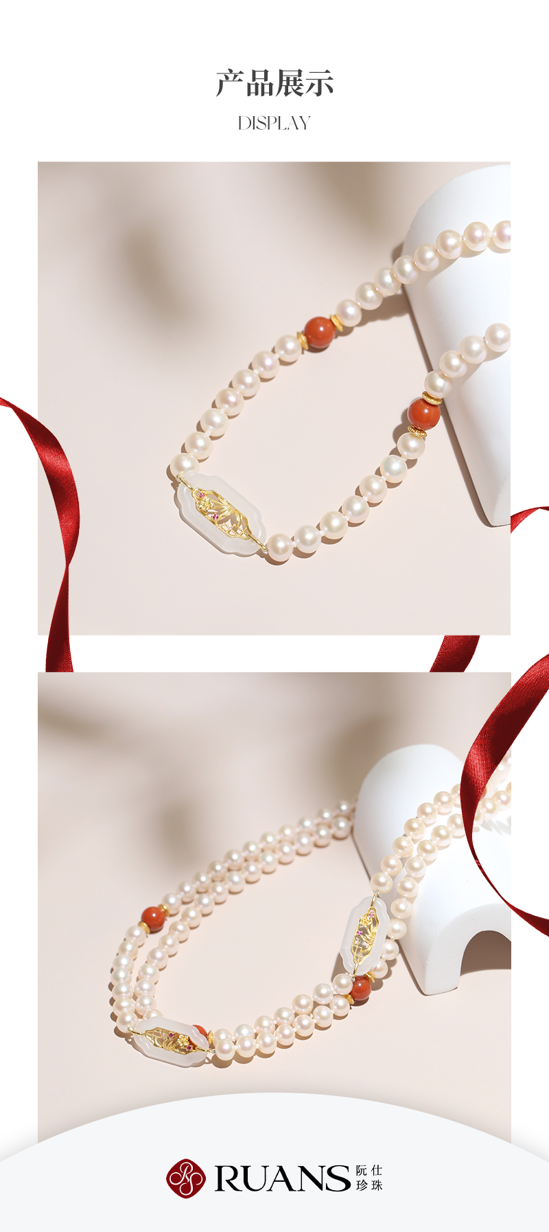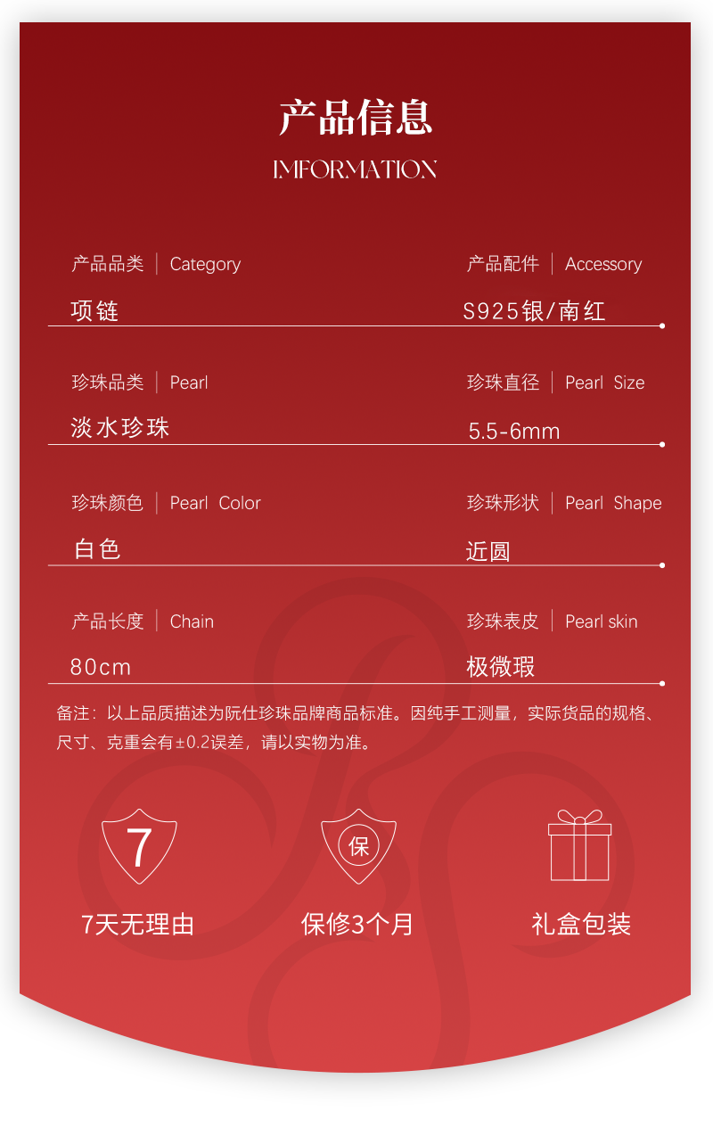 阮仕珍珠 鸿运系列S925银淡水珍珠项链 5.5-6mm 近圆 极微瑕 强光(南红,白玉,锆石)