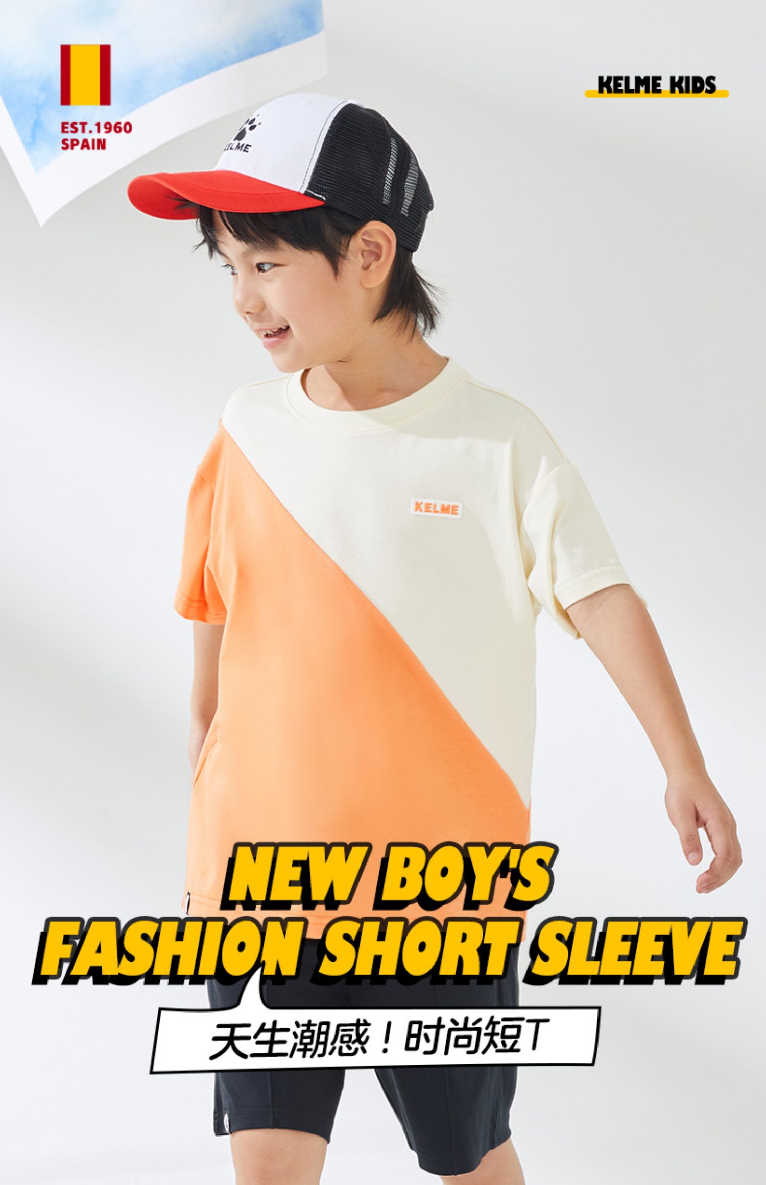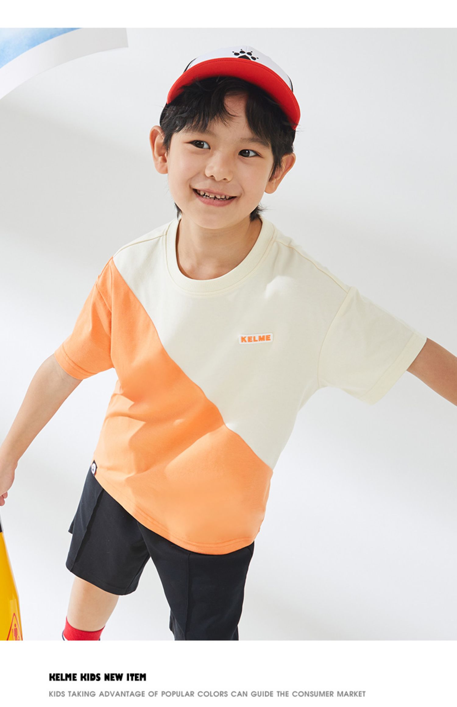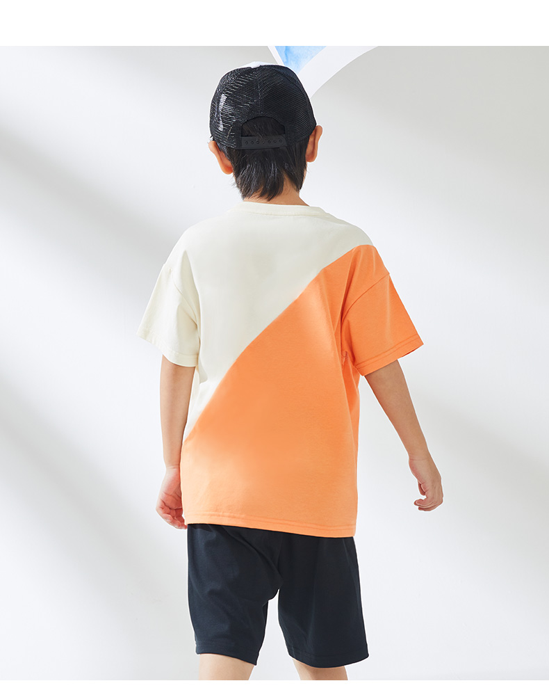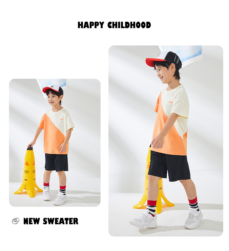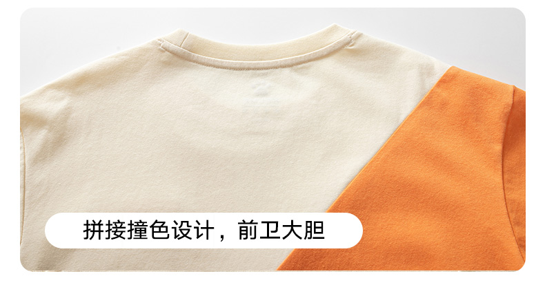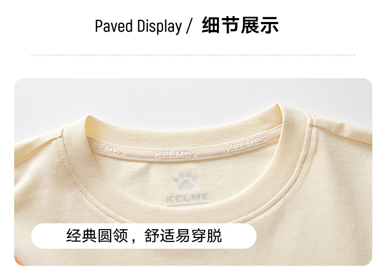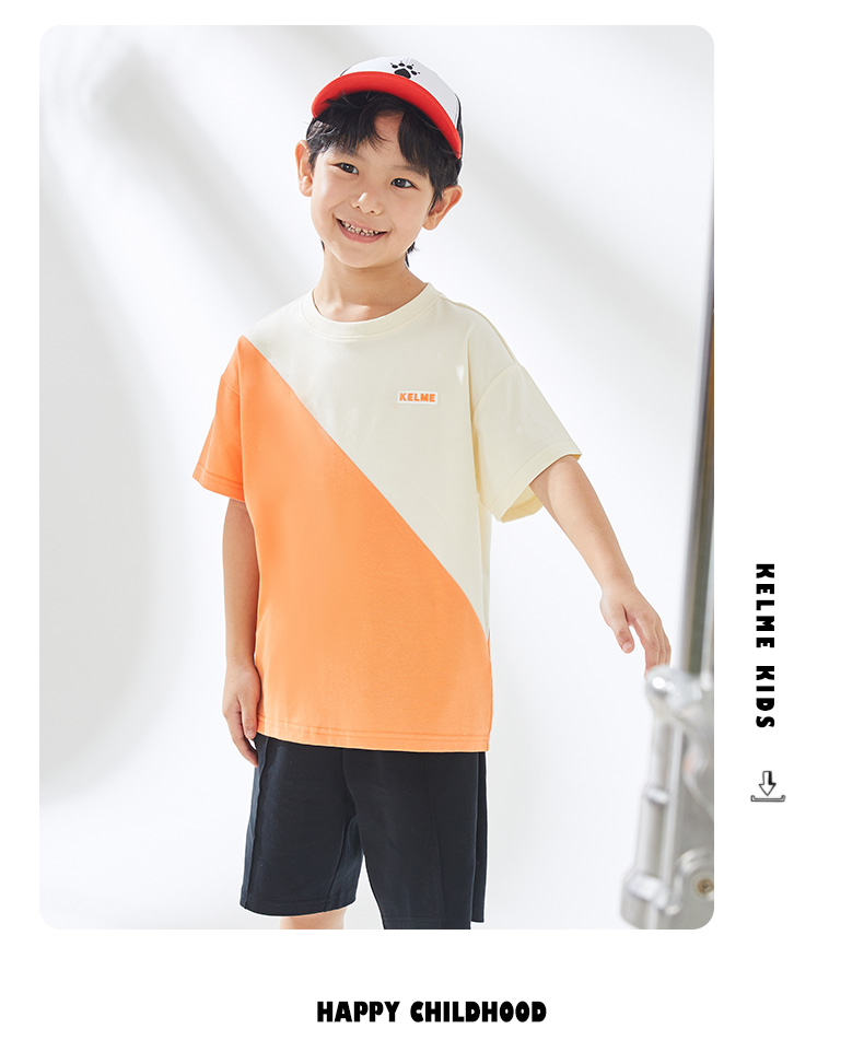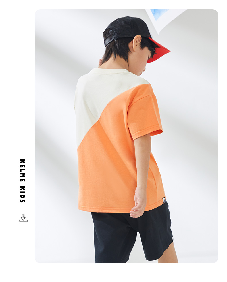 KIDS 卡尔美童装男童纯棉短袖夏季新款圆领撞色休闲T恤