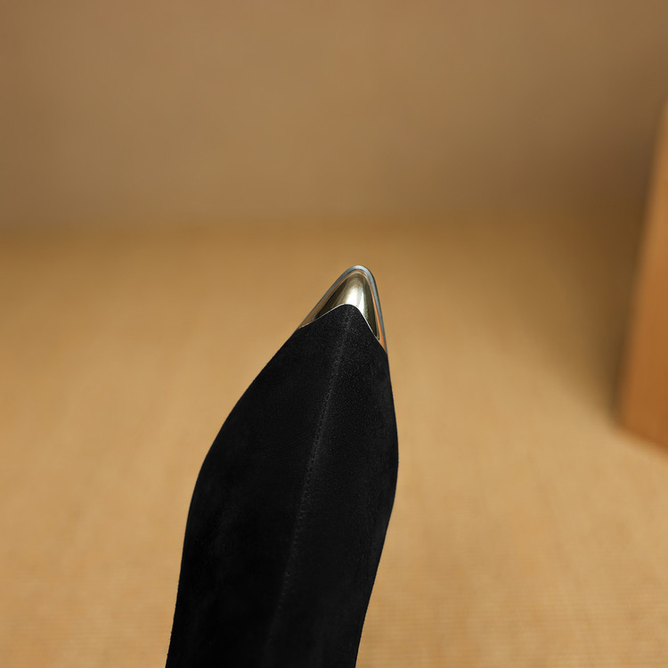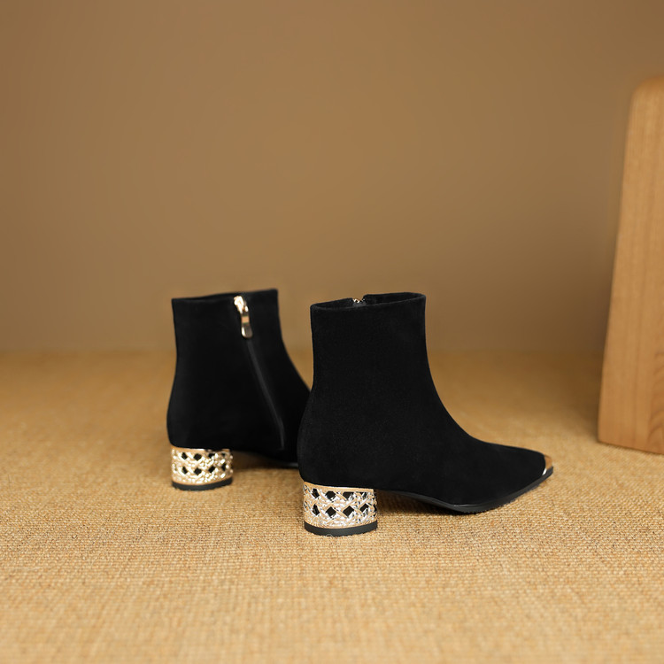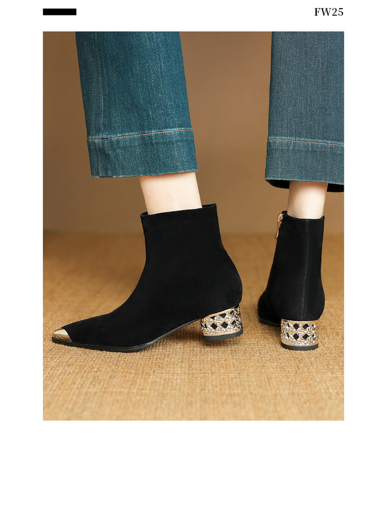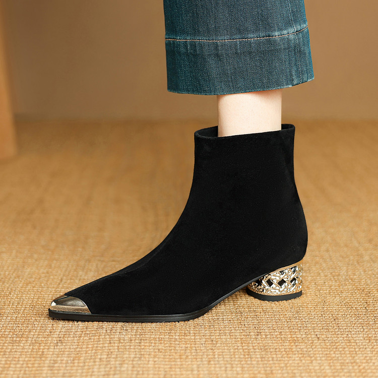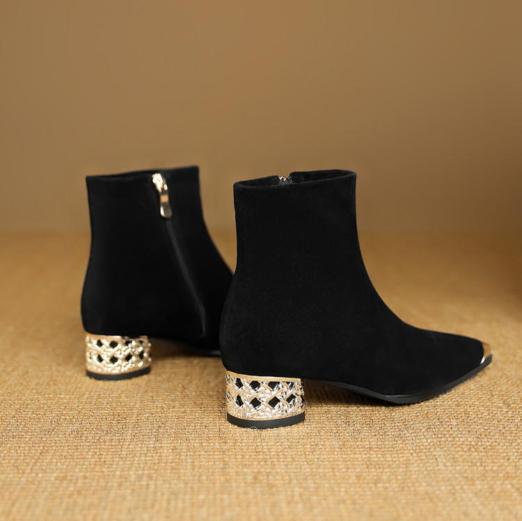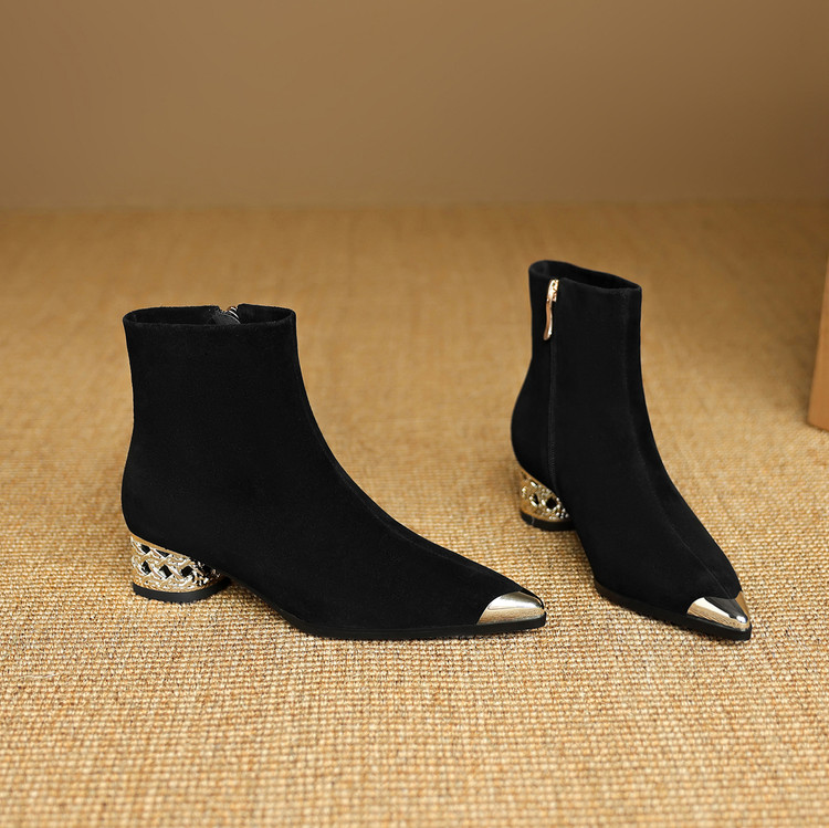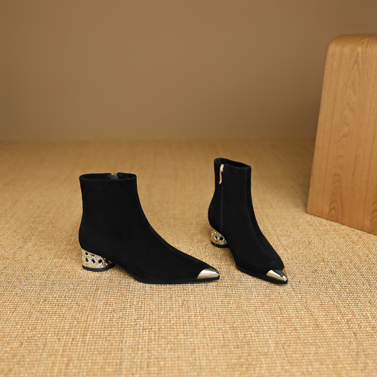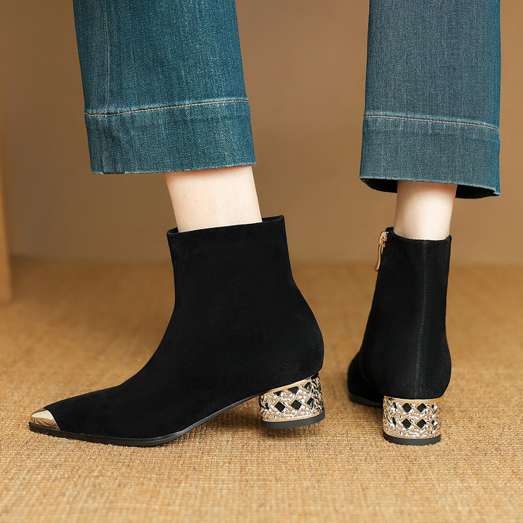 【预售5天】秋冬必备简约风羊皮米白色尖头短靴女英伦风中跟粗跟马丁靴女短筒靴子DB&M6596