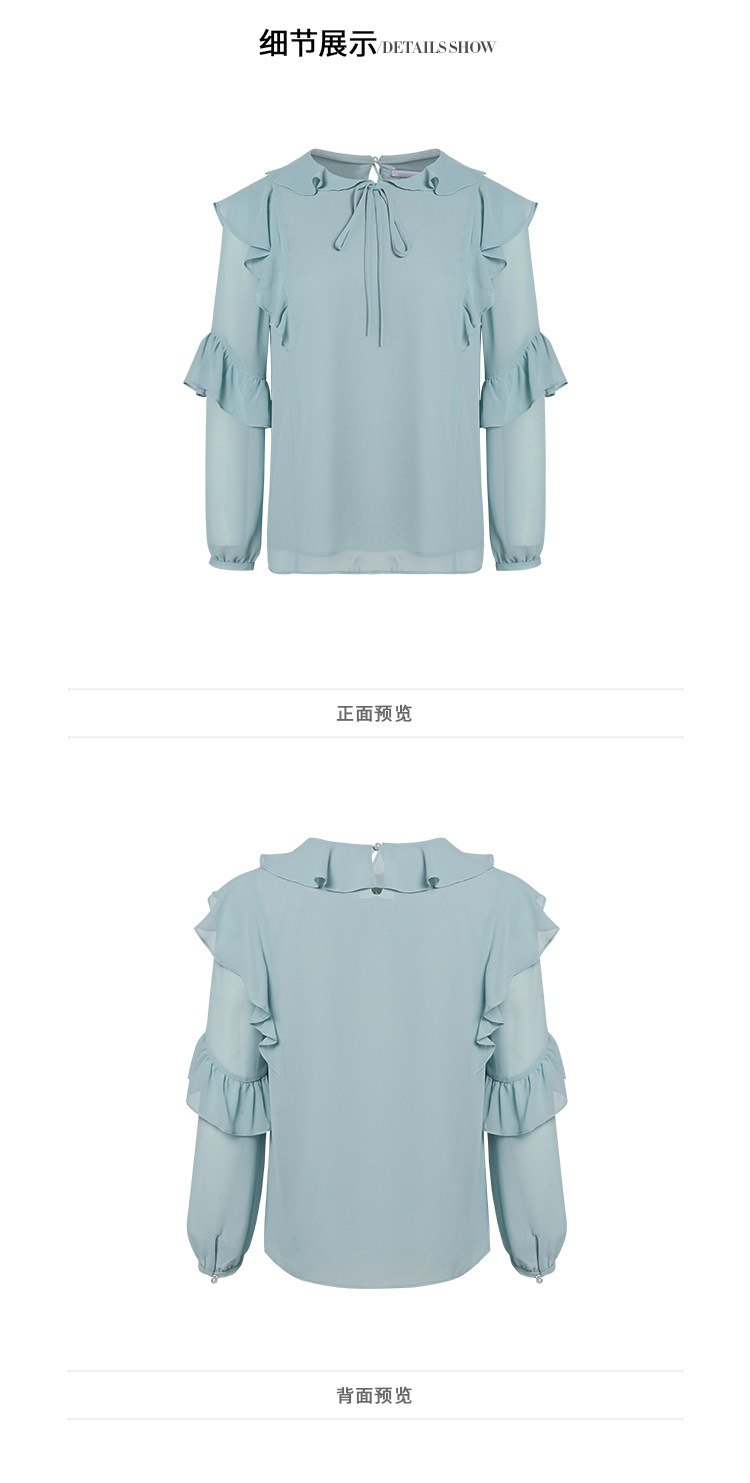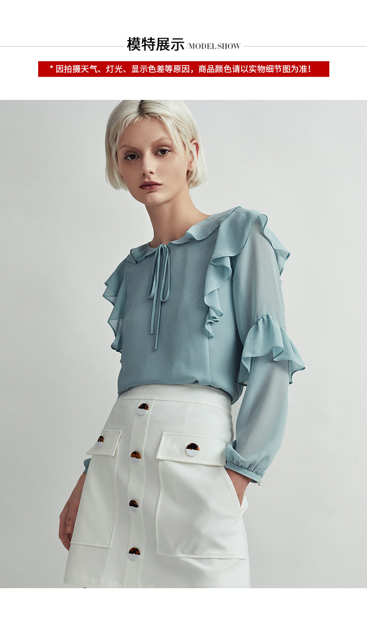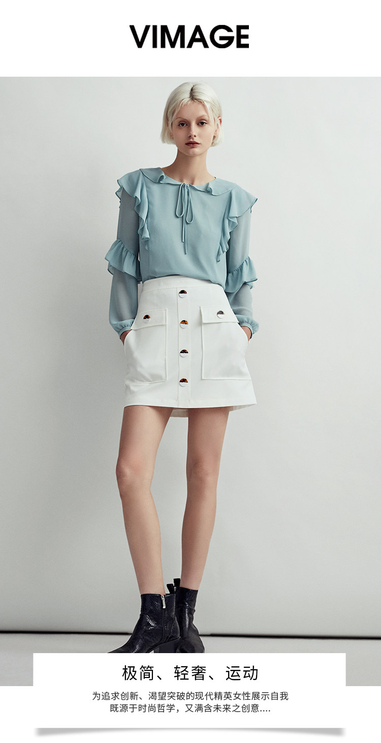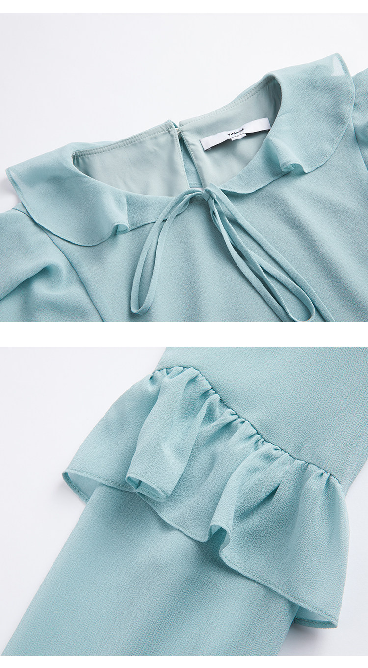 VIMAGE纬漫纪时尚洋气系带荷叶边装饰雪纺衫上衣女V1413004D