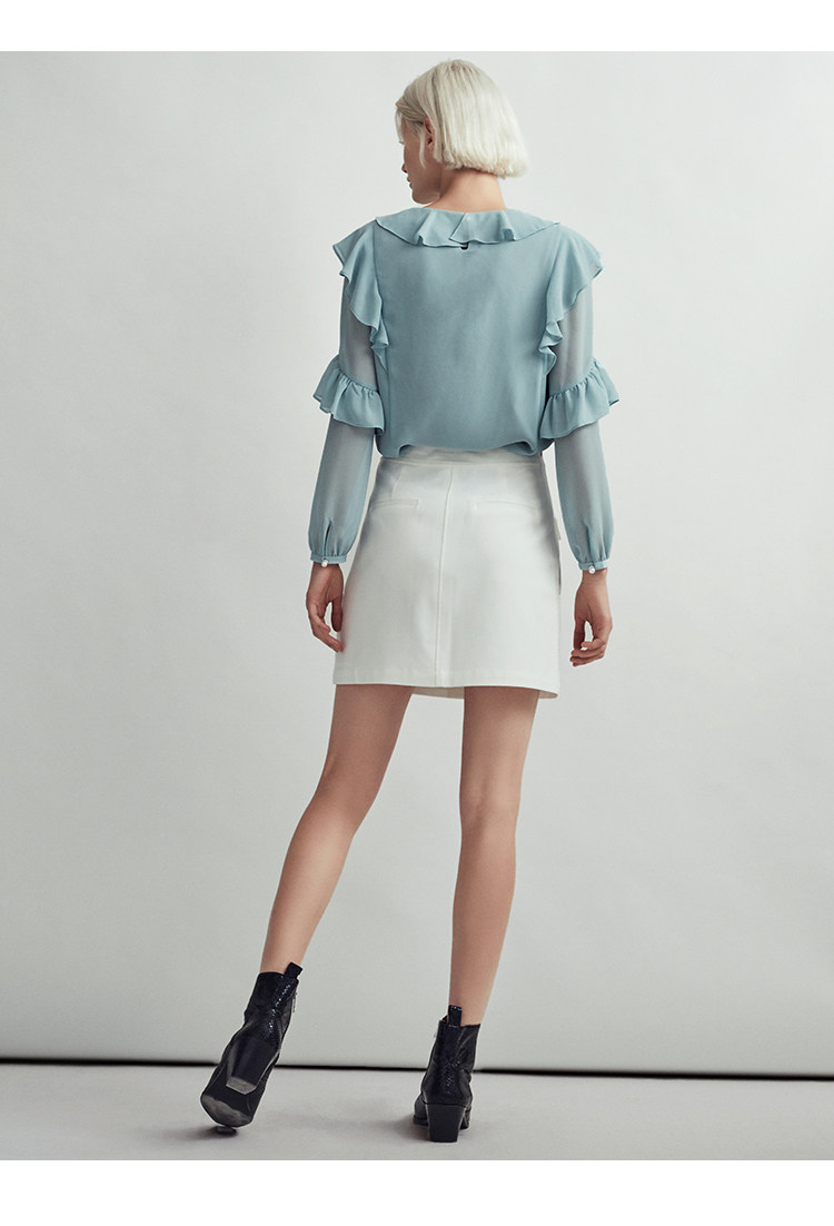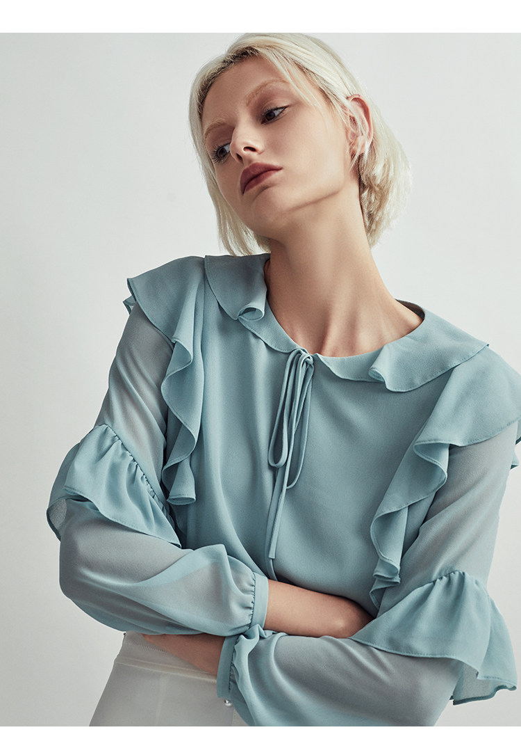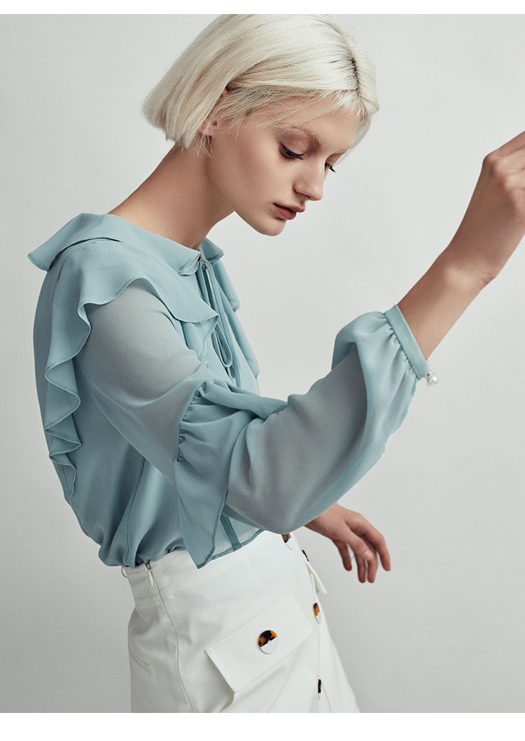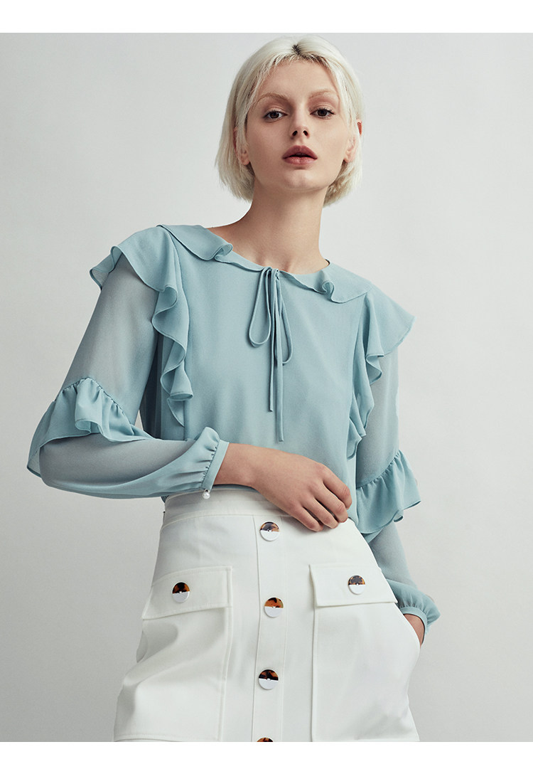 VIMAGE纬漫纪时尚洋气系带荷叶边装饰雪纺衫上衣女V1413004D